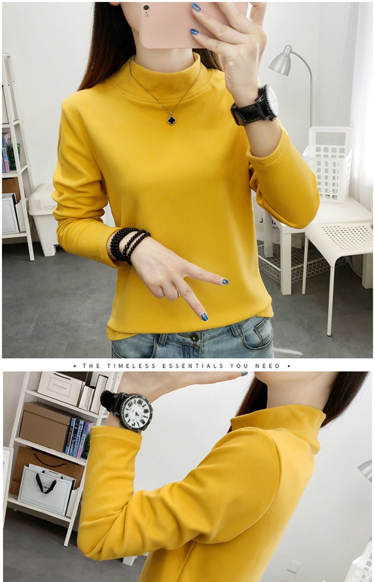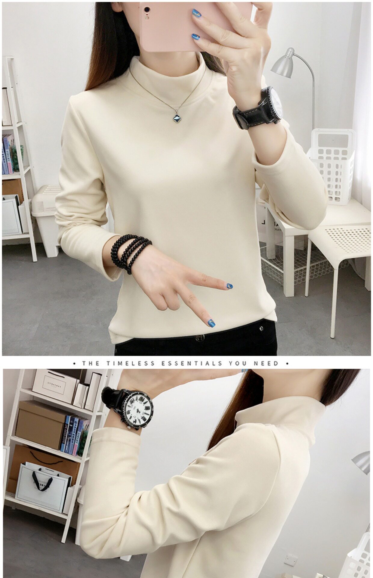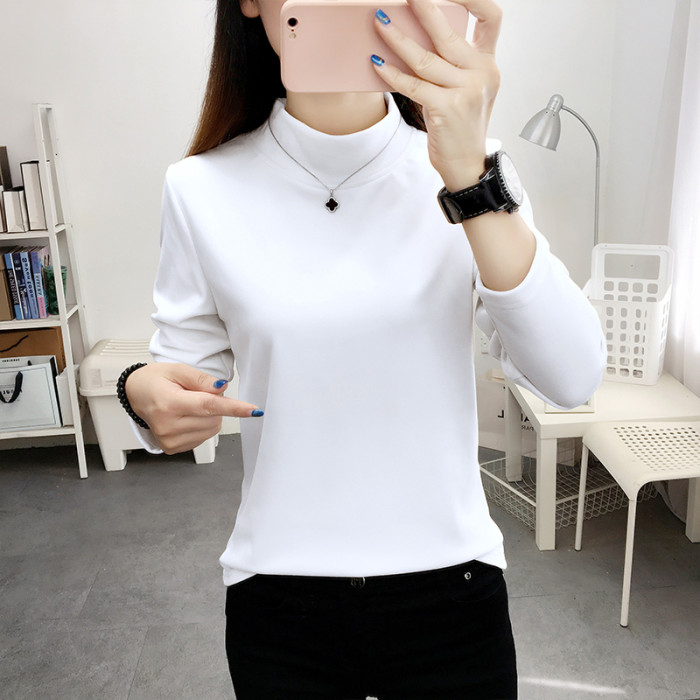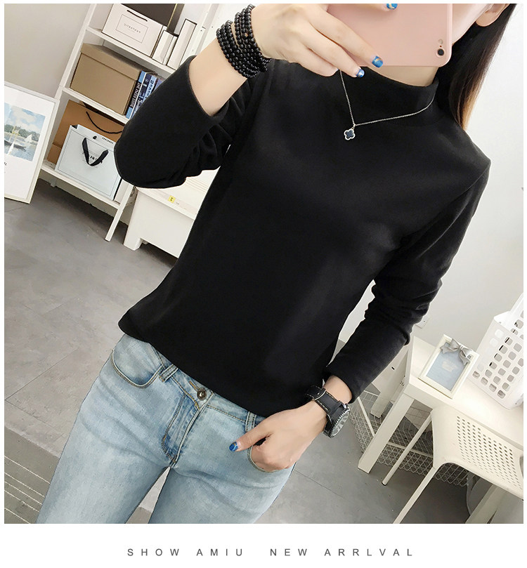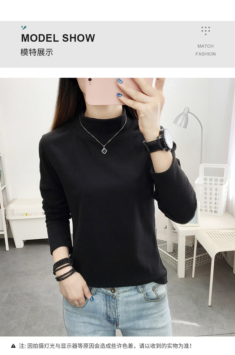 德絨高領打底衫女秋冬百搭加絨加厚保暖內搭修身媽媽純色長袖上衣