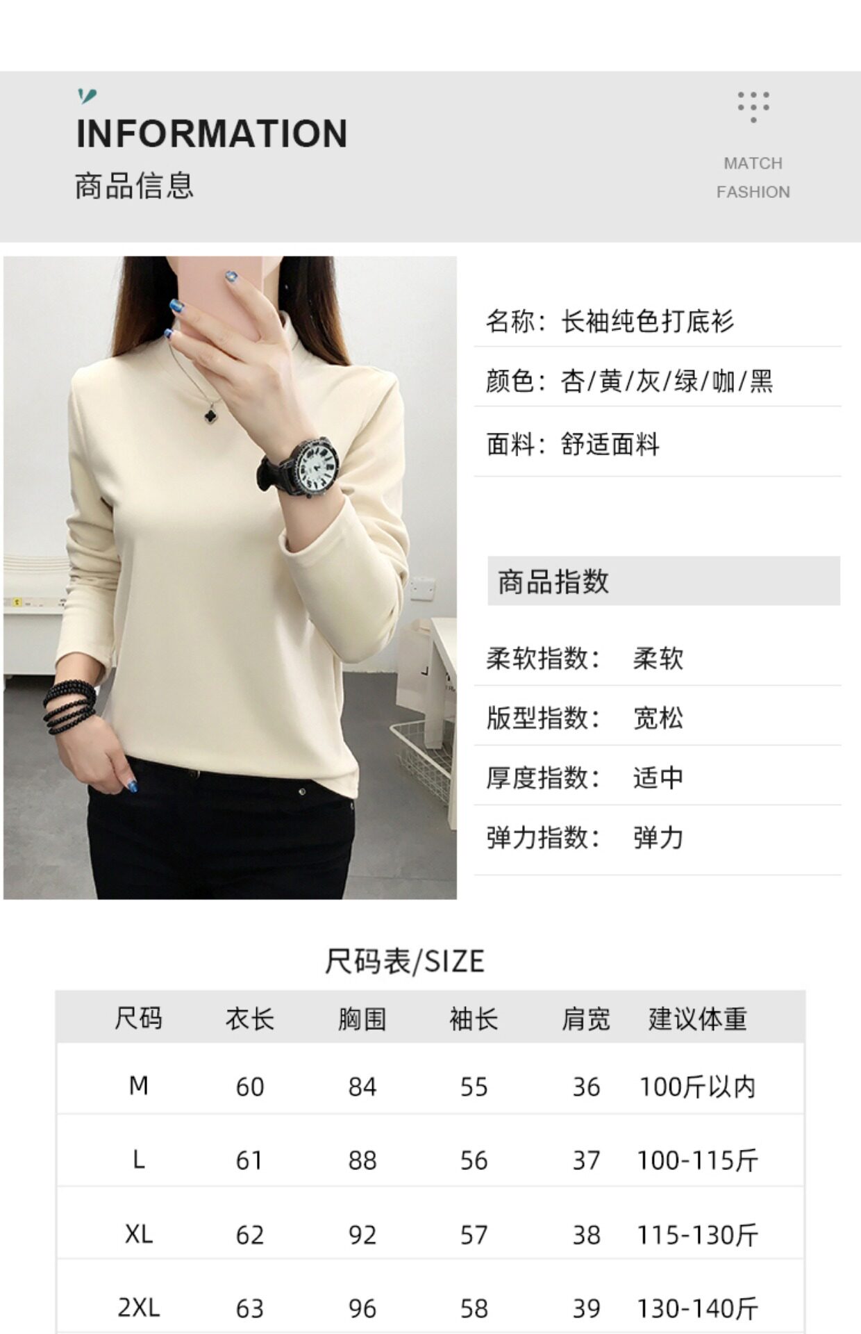 | 領型 | 半高領 |
