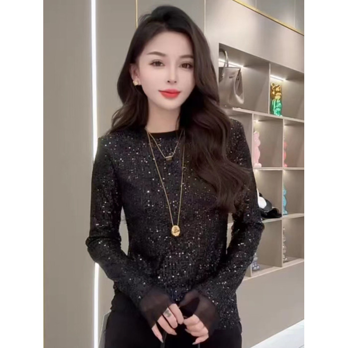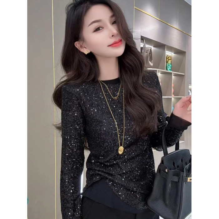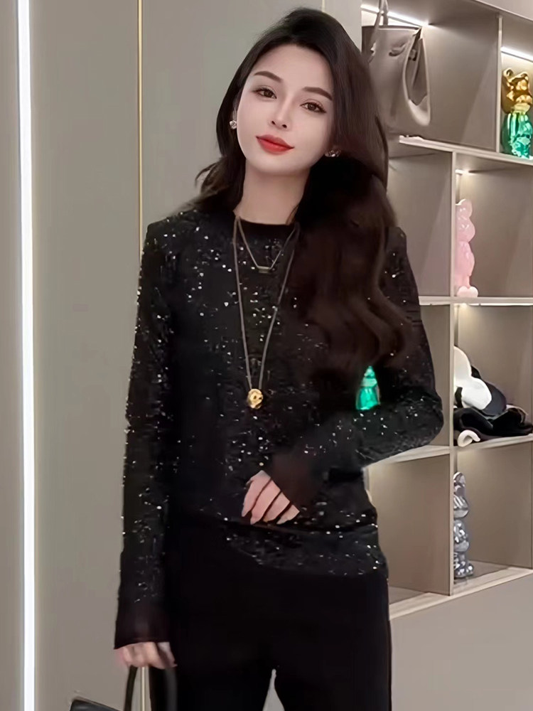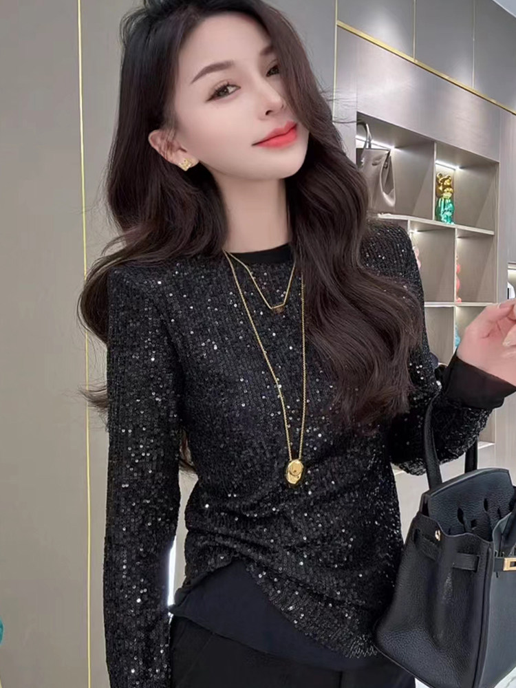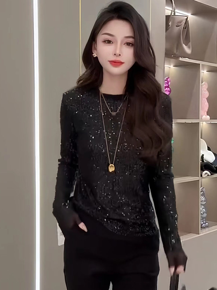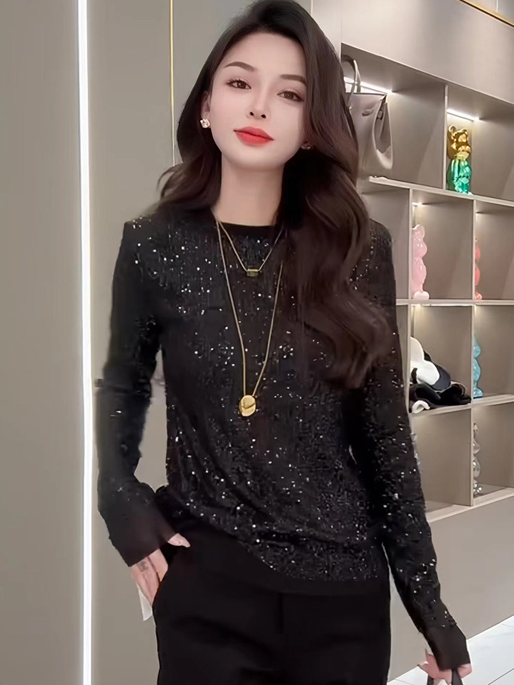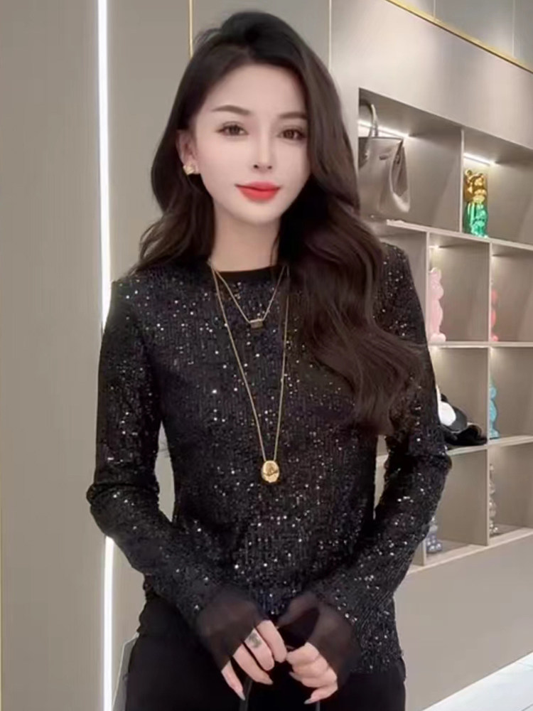 今年流行歐貨亮片輕奢長袖T恤女2025秋冬新款寬鬆顯瘦高級感上衣