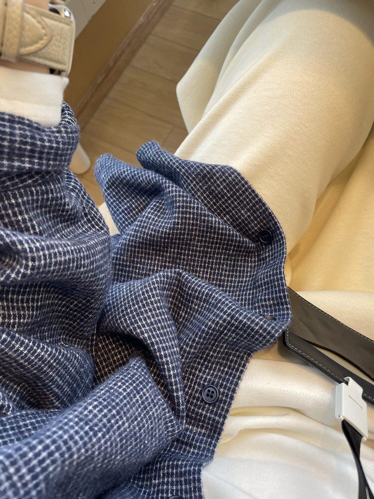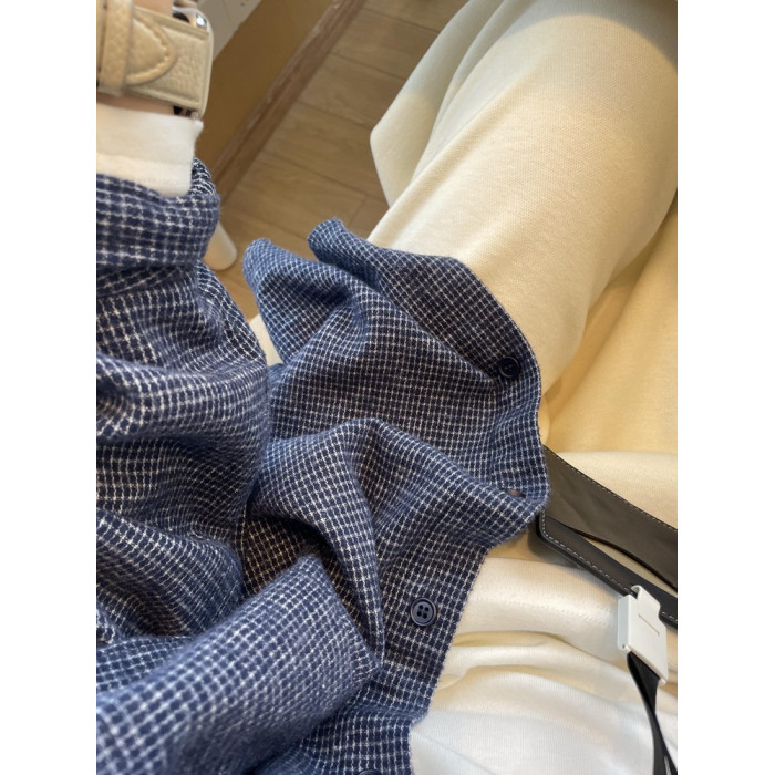 韓系藍色格子磨毛襯衫女春秋冬季新款慵懶風寬鬆百搭襯衣情侶外套