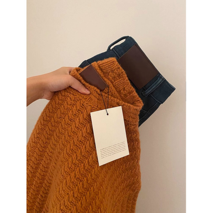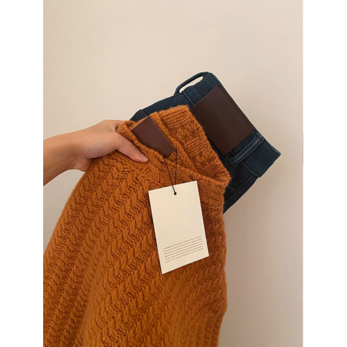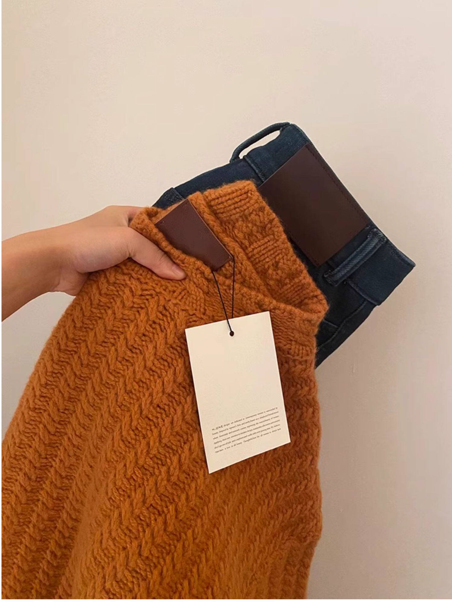 廣州十三行高品質南瓜橘色麻花套頭毛衣女秋冬軟糯溫柔風針織上衣