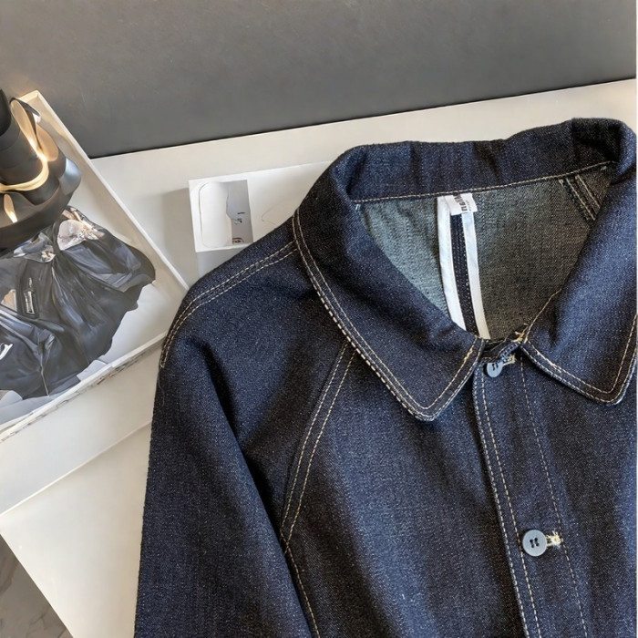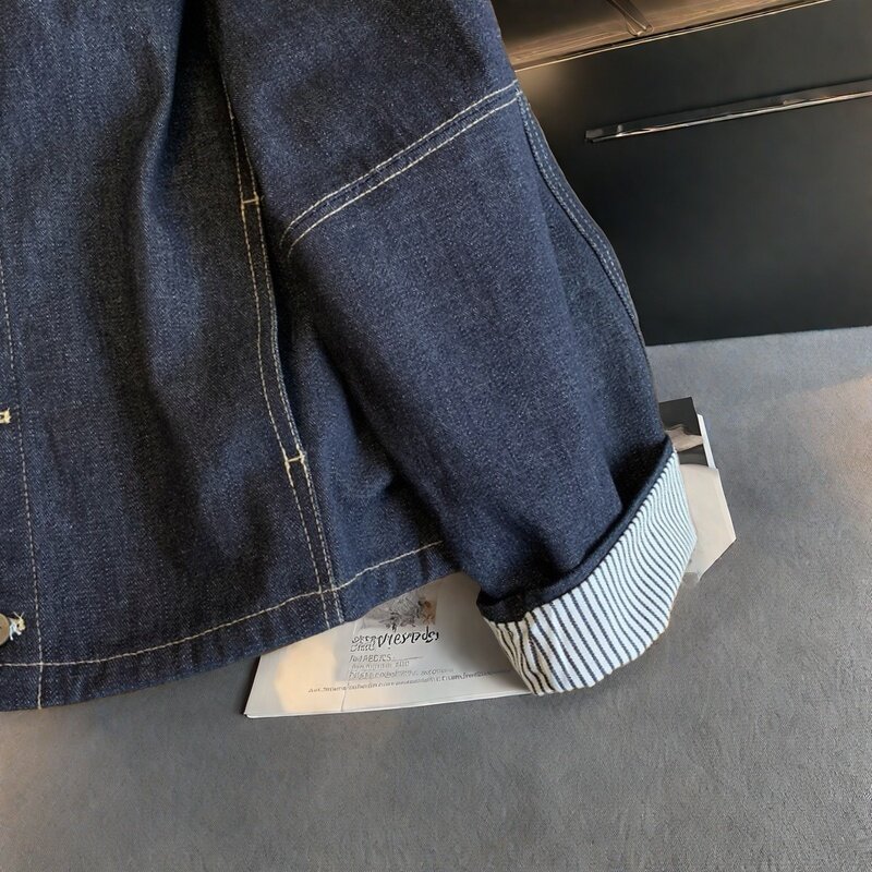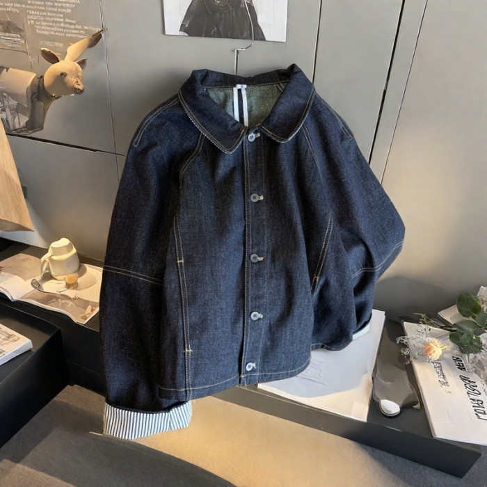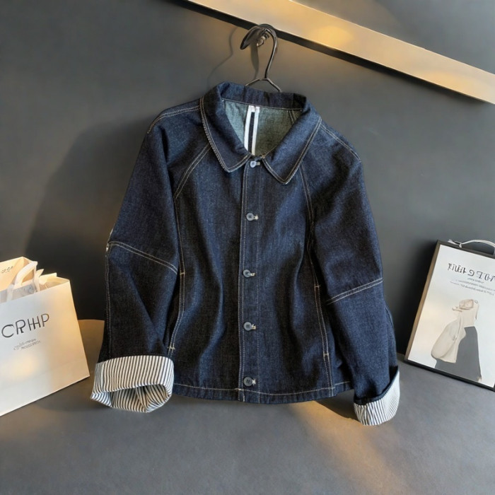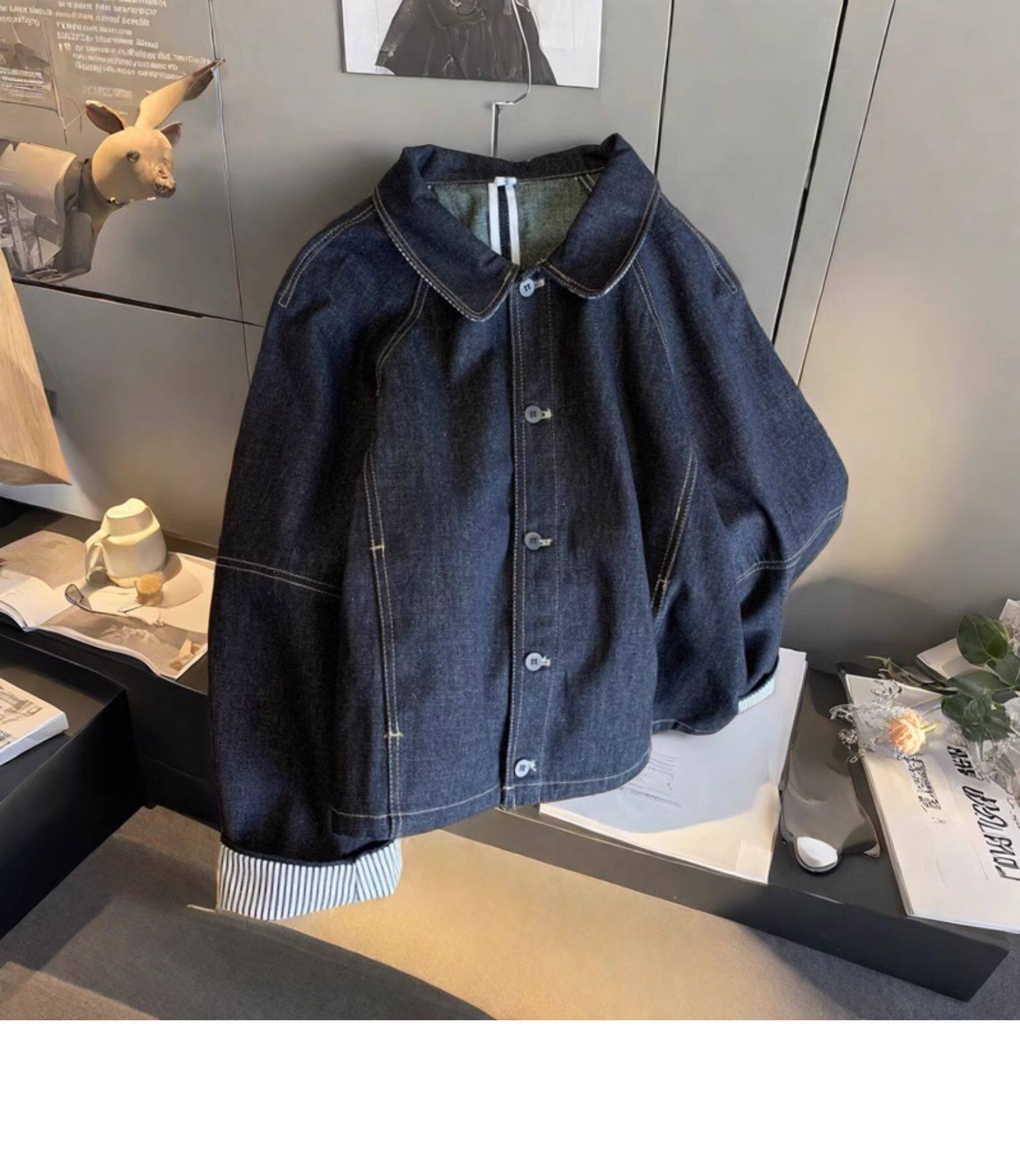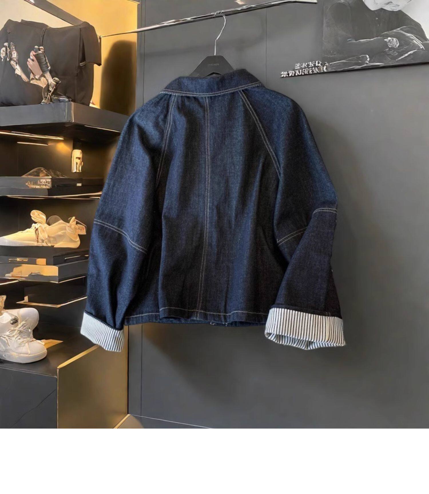 廣州十三行高貨爆款~拼接撞色明線繙領牛仔外套女春秋寬鬆小個子