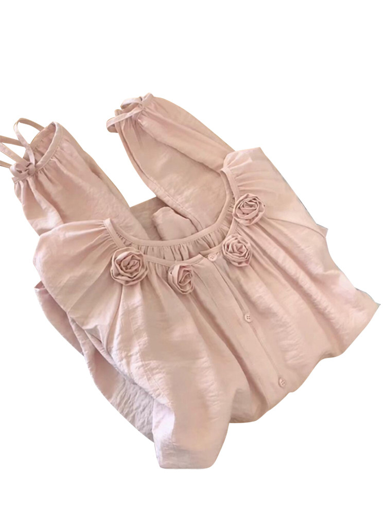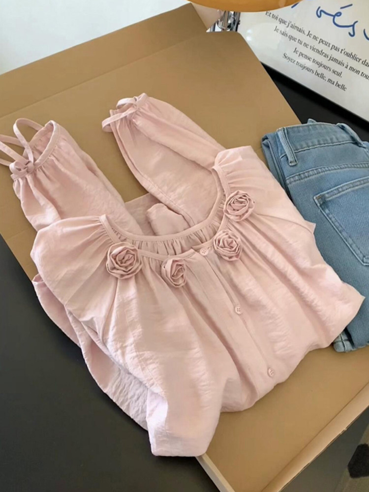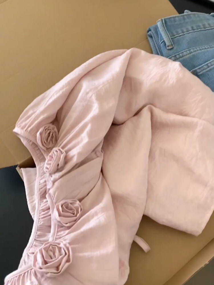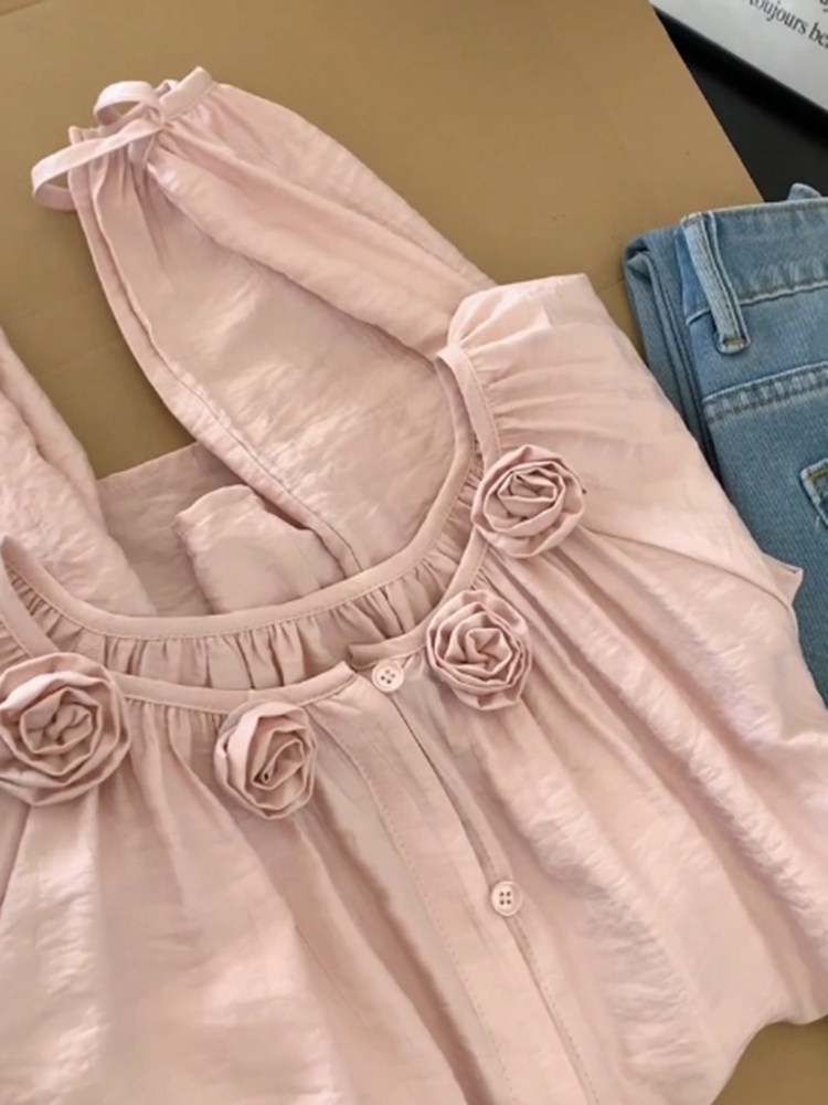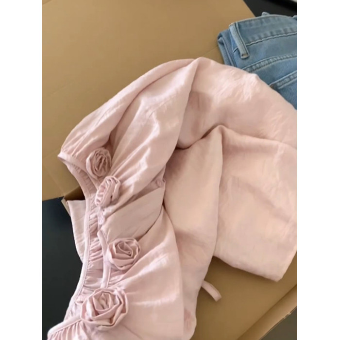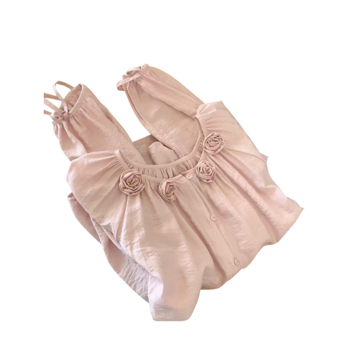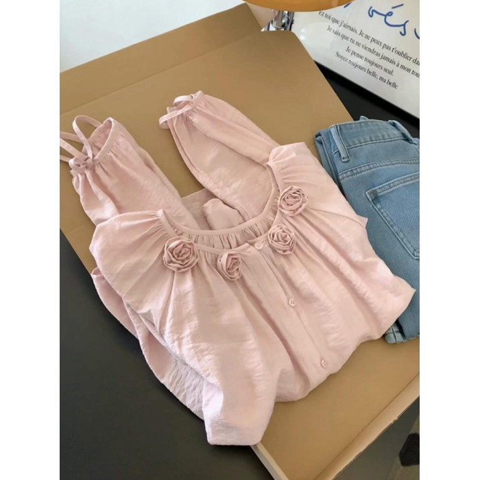 自畱款推薦~法式立體花朵長袖襯衫女2025春季新款設計感百搭上衣