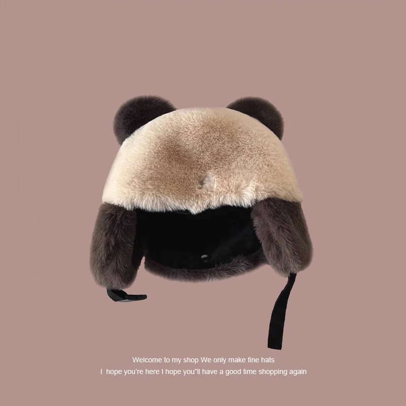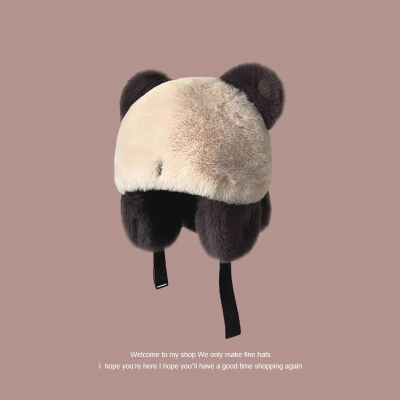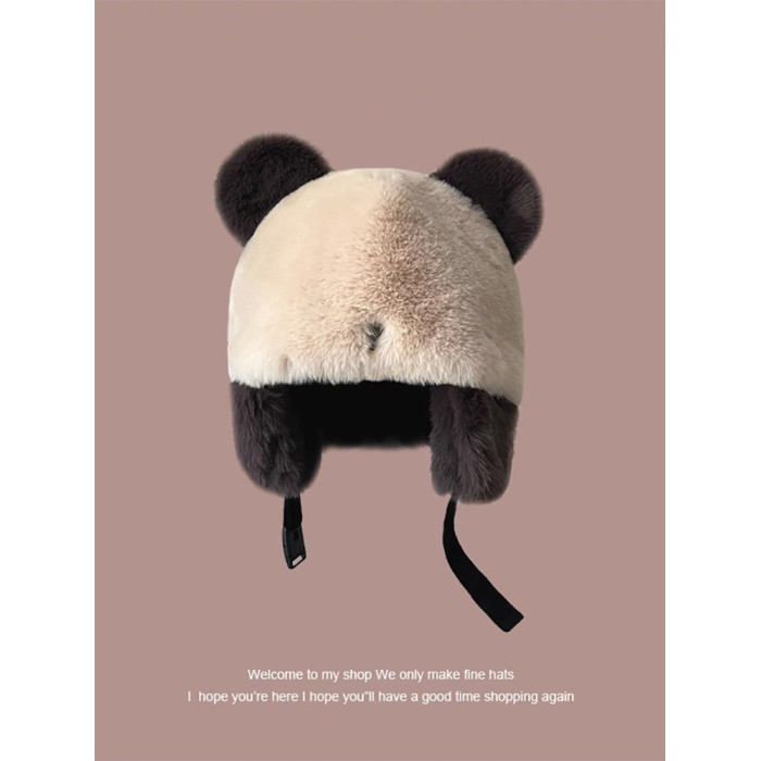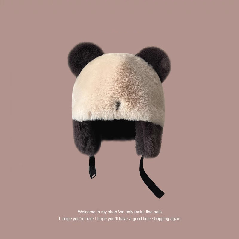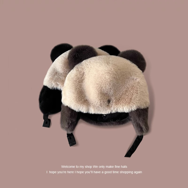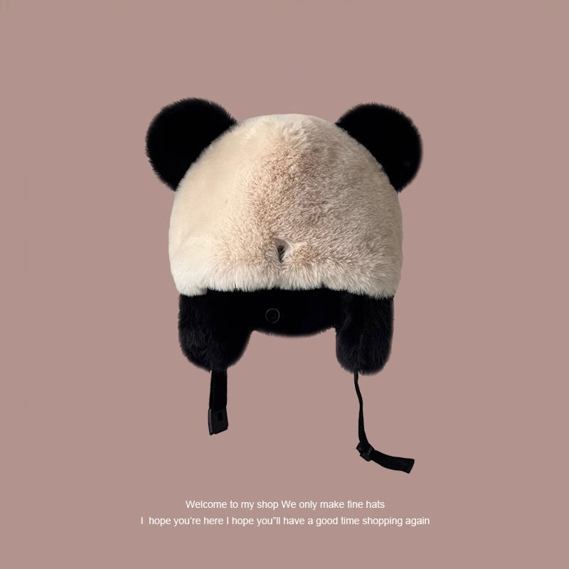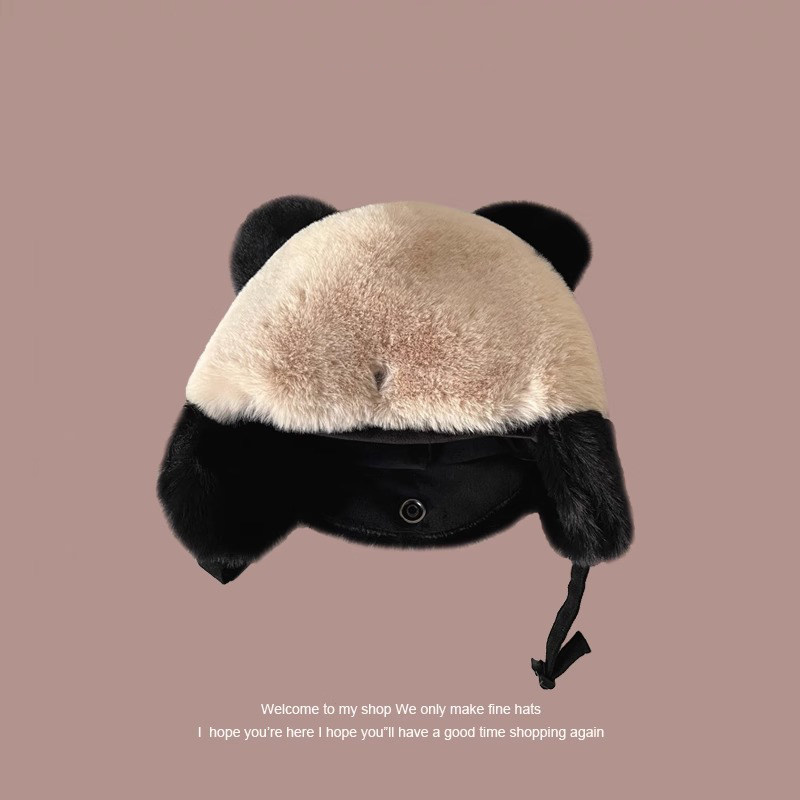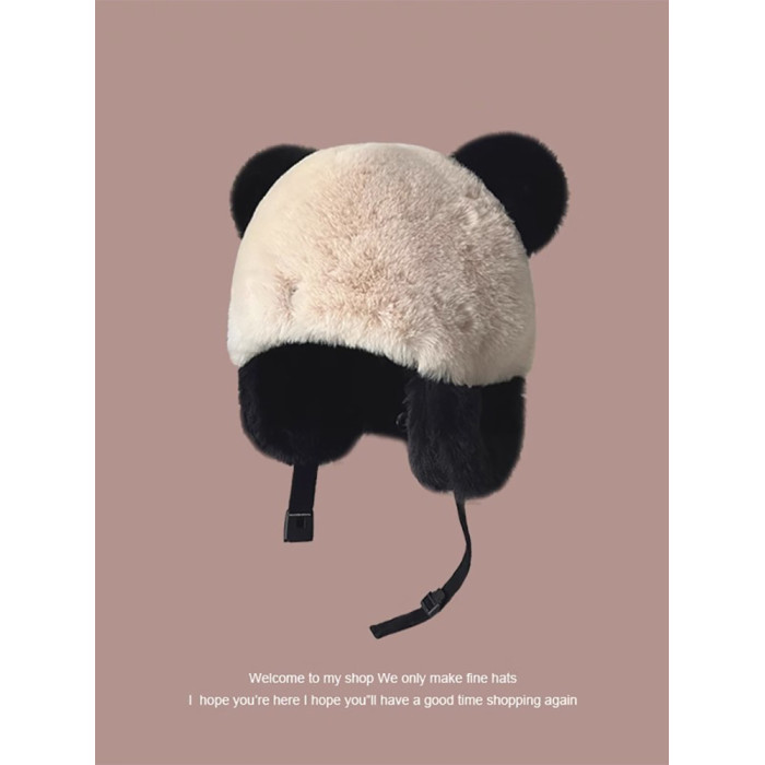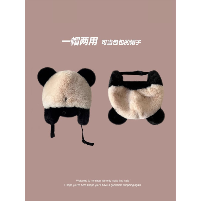 Classy key新加坡設計師聯名款可愛熊貓毛絨帽加厚護耳保暖滑雪帽