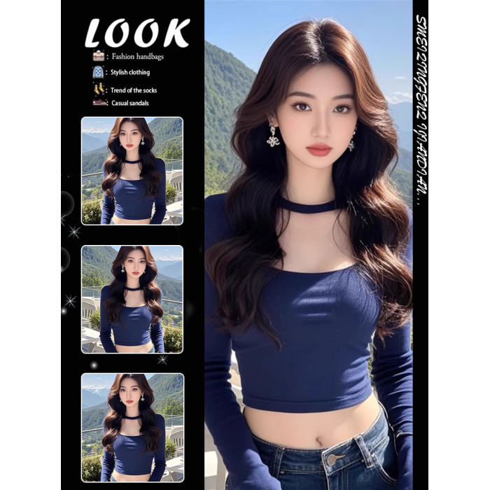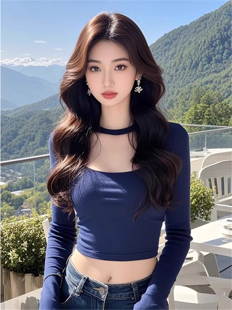 甜辣妹低領鎖骨短款打底衫女2025新款內搭設計感小衆修身長袖上衣