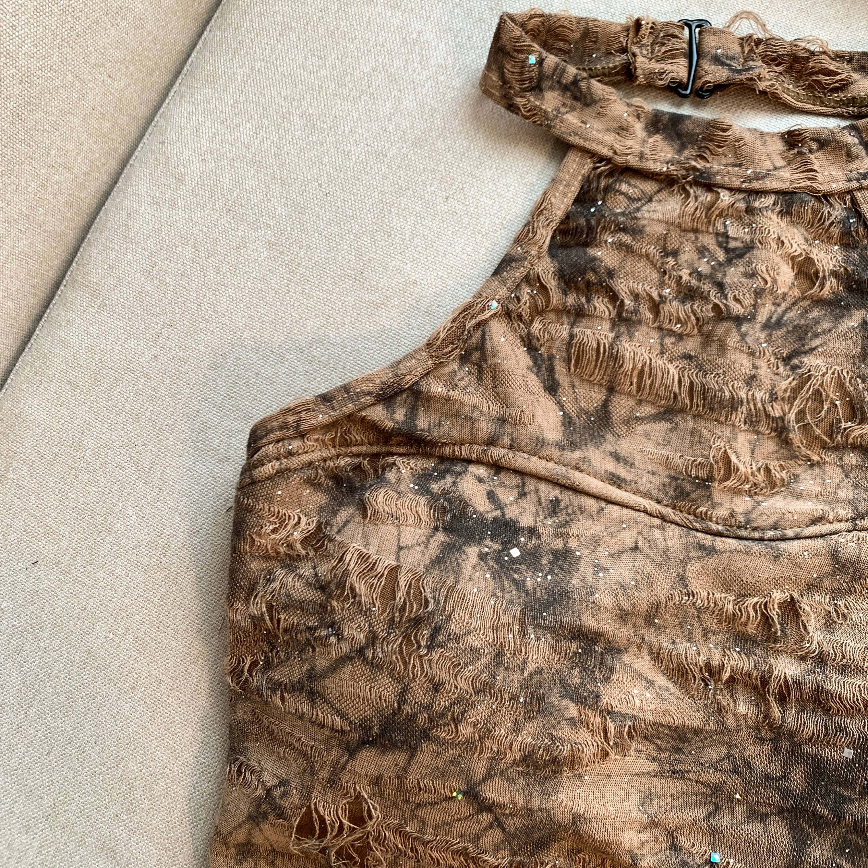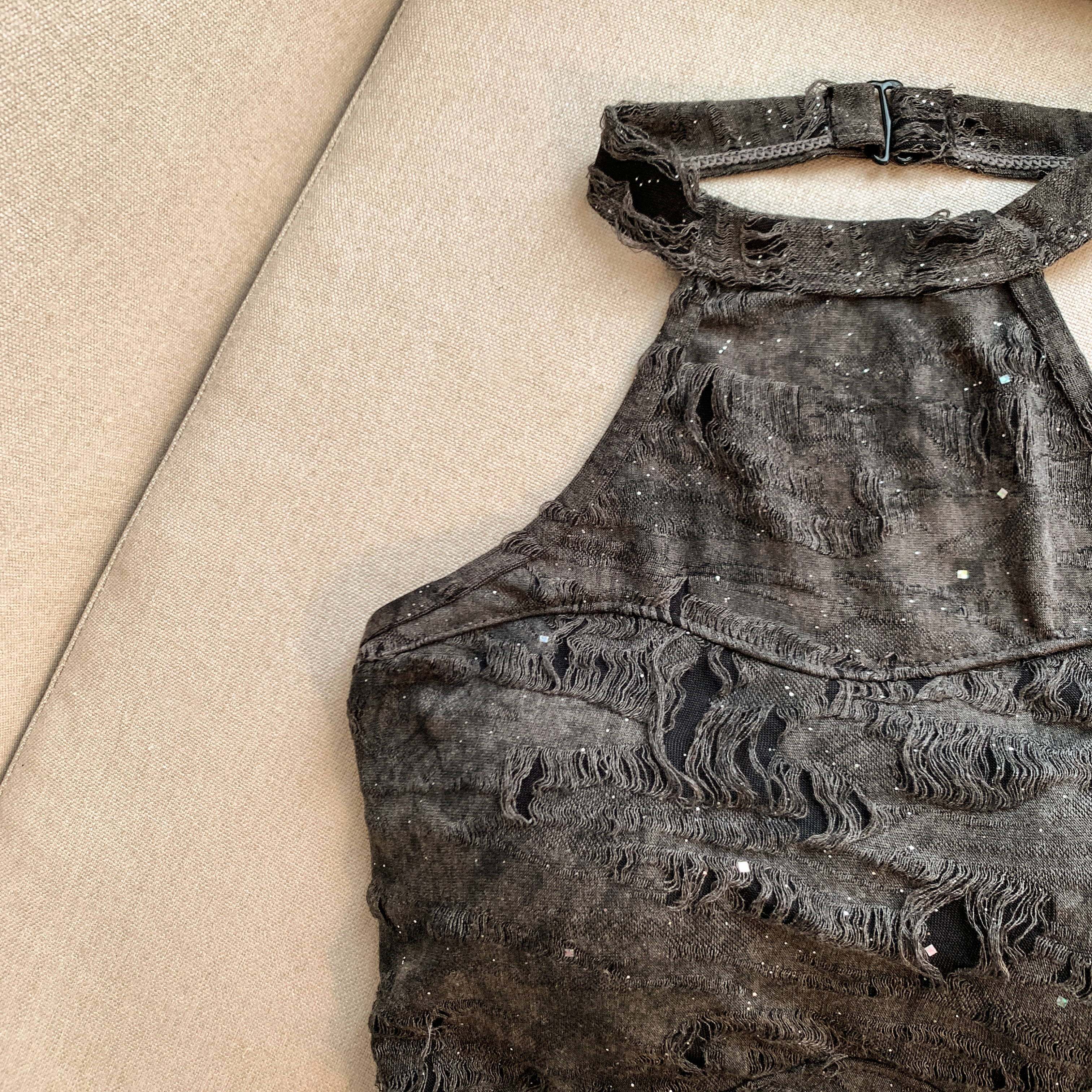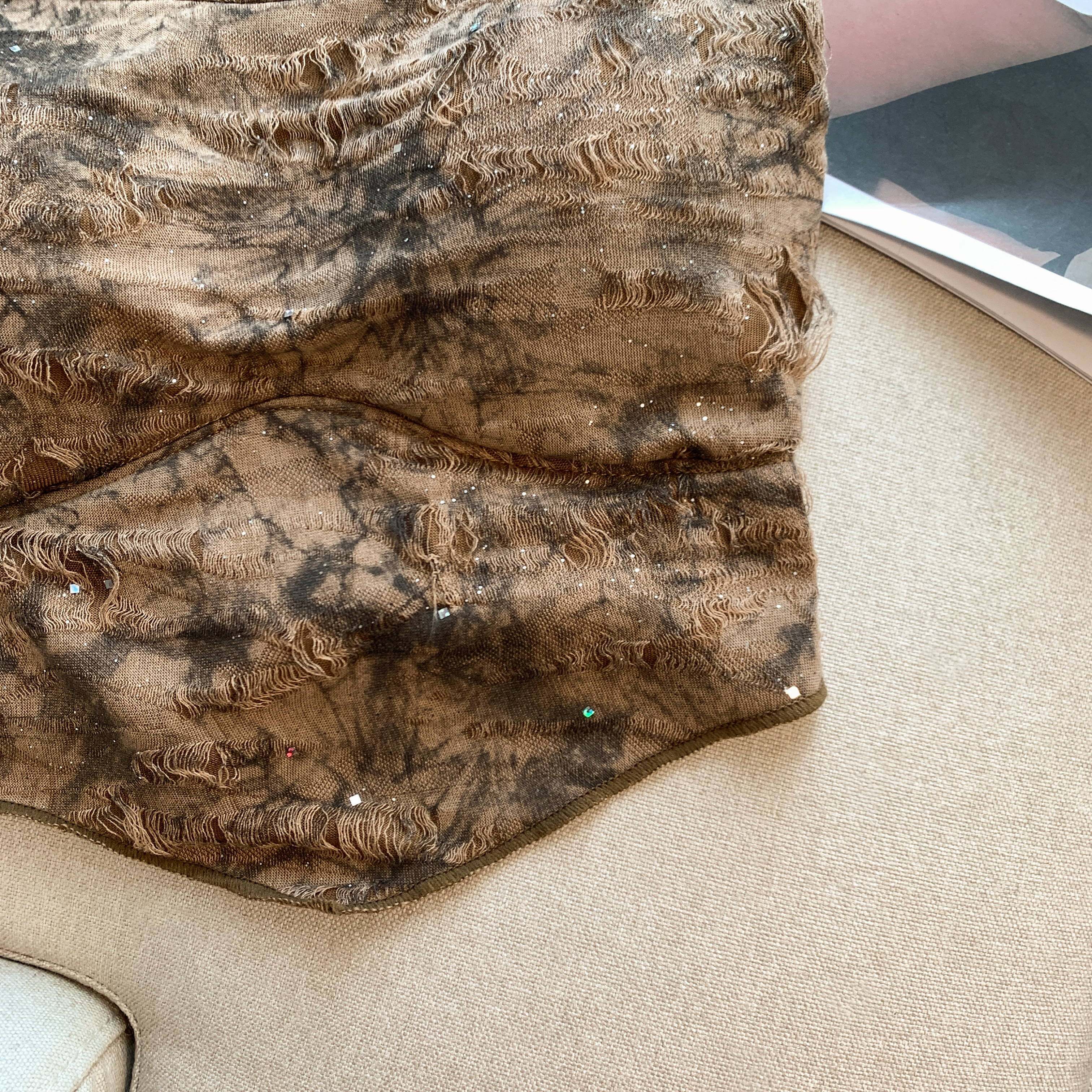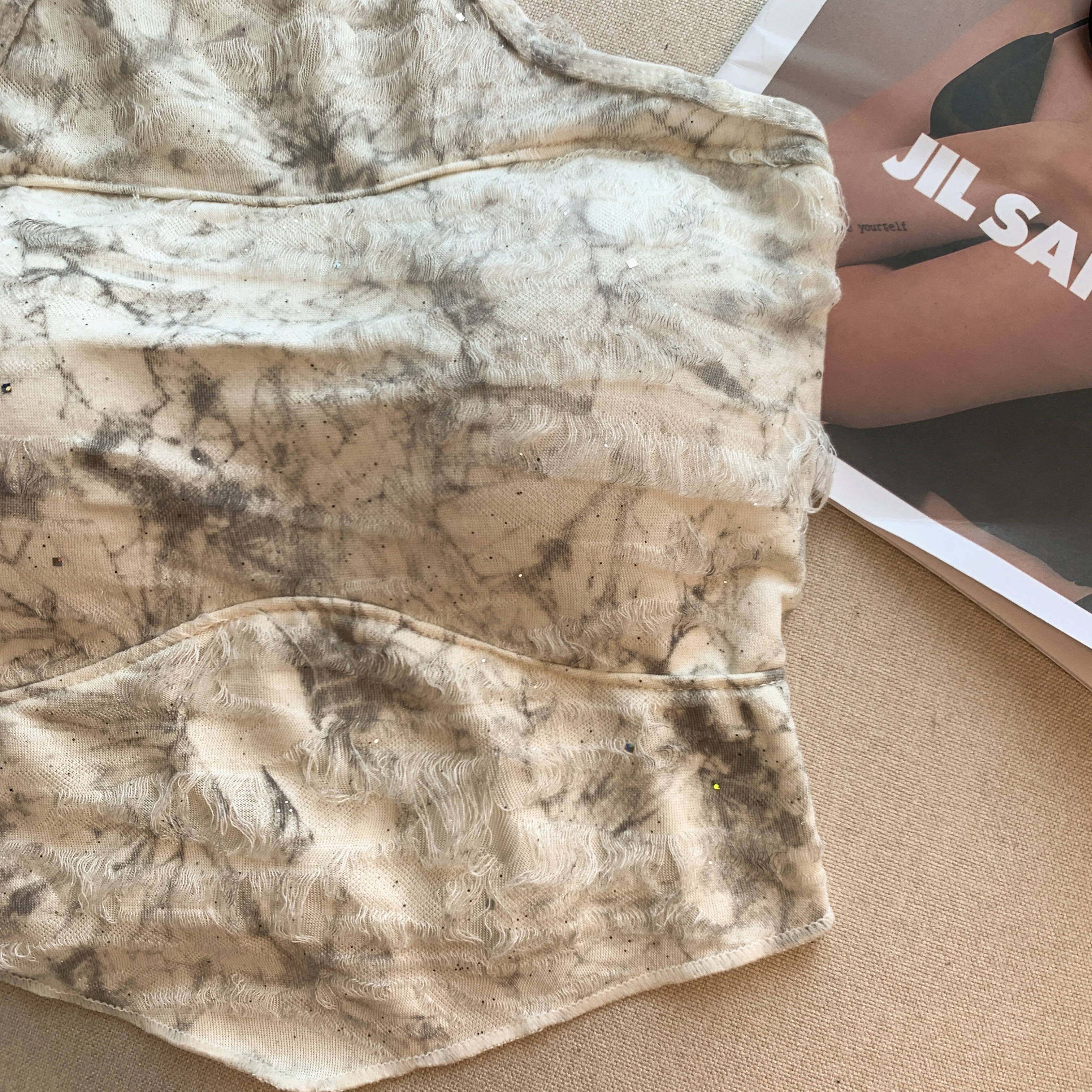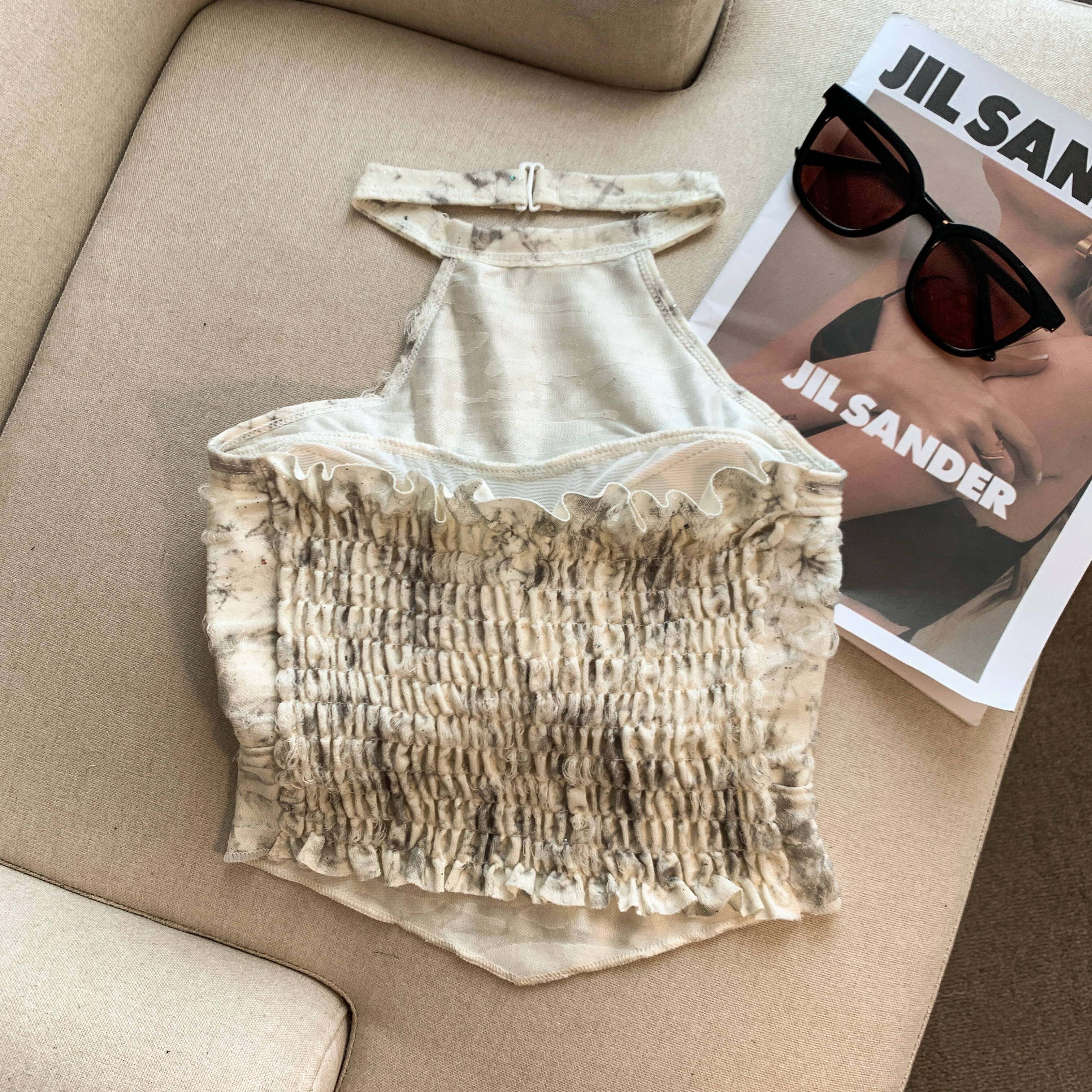 專櫃撤廻剪標復古辣妹掛脖重工鑲鑽吊帶背心女夏款設計感露肩上衣