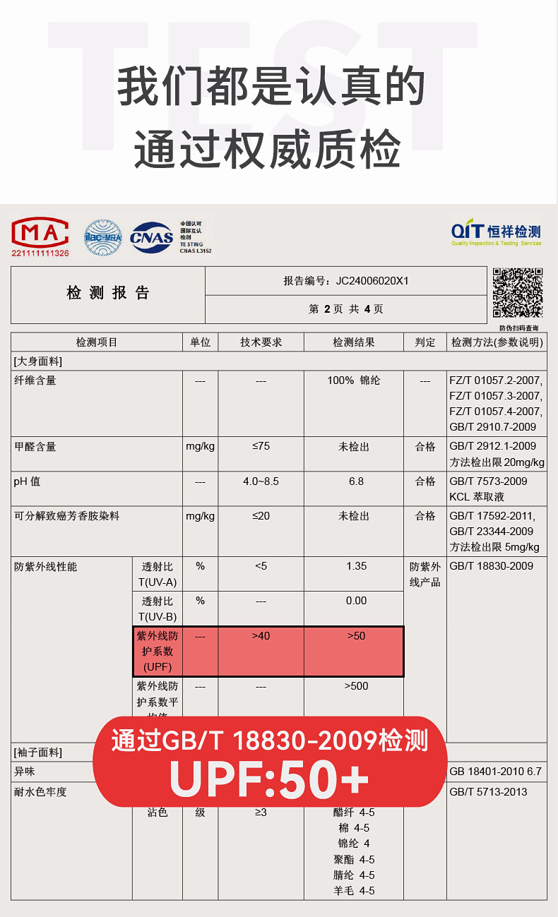 | UPF值 | 50+ |