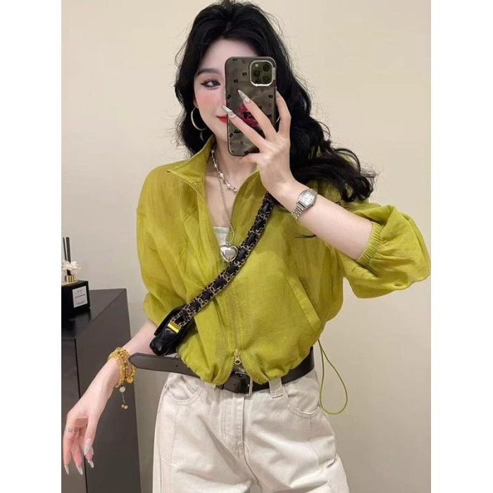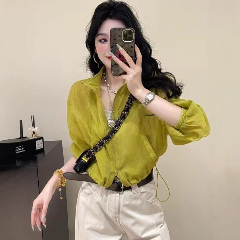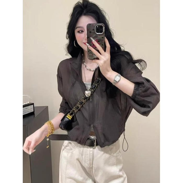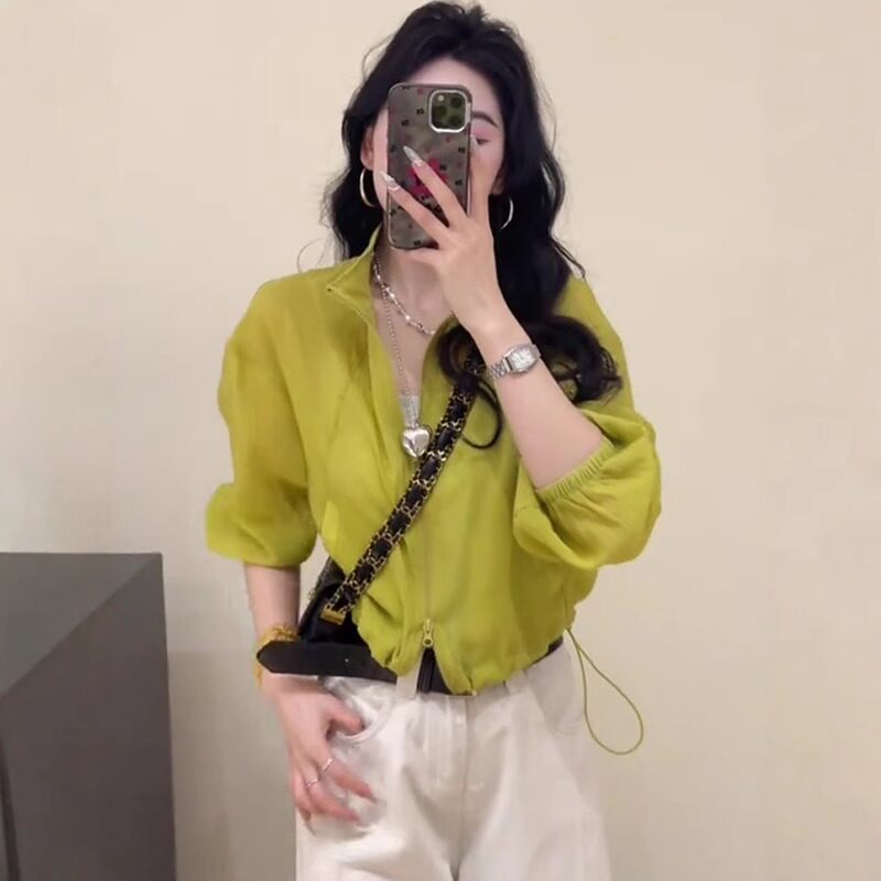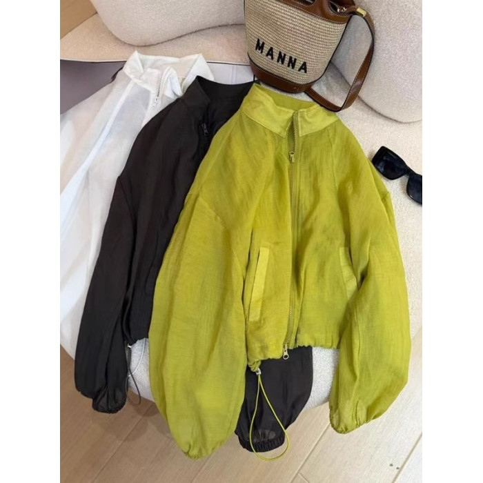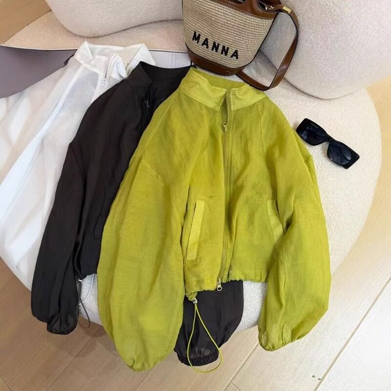 短款外套薄款亞麻防曬衣女2026新款爆款夏季設計感抽繩立領上衣女