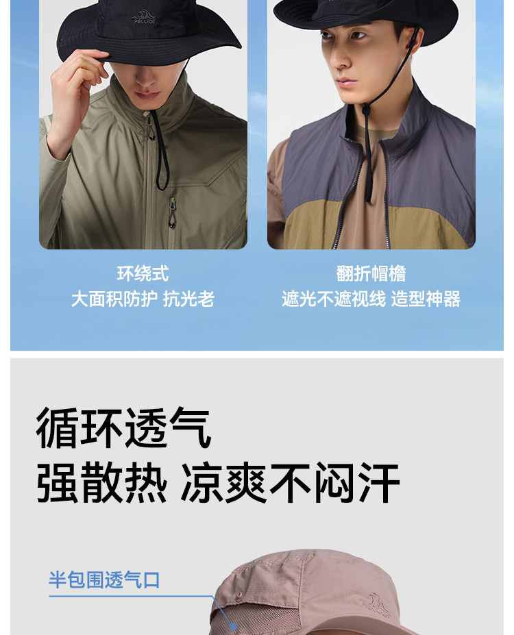伯希和戶外防曬帽女大帽簷登山徒步快乾牛仔帽子遮陽透氣漁夫帽男
