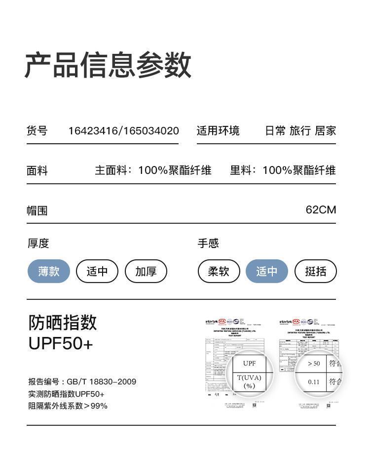 | UPF值 | 50+ |