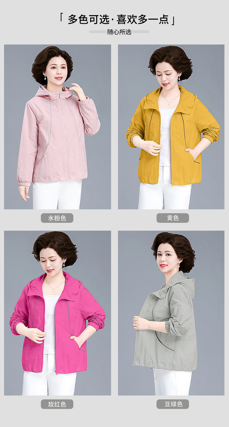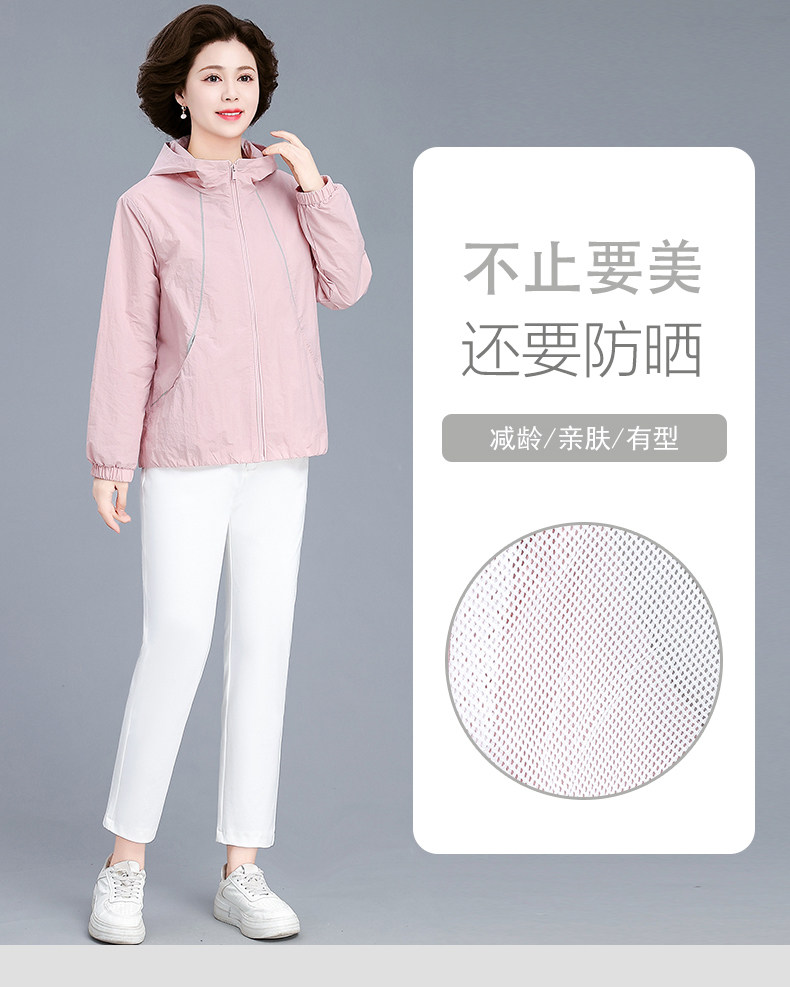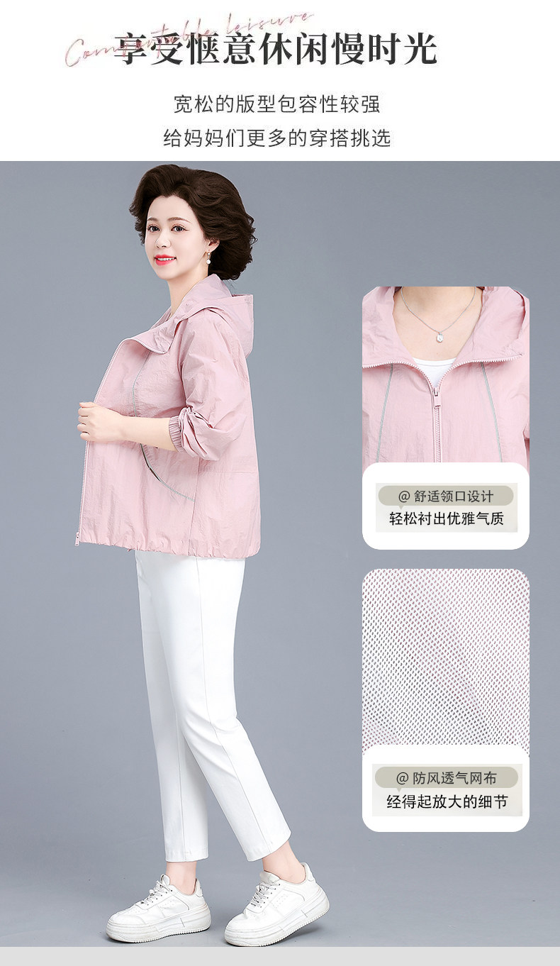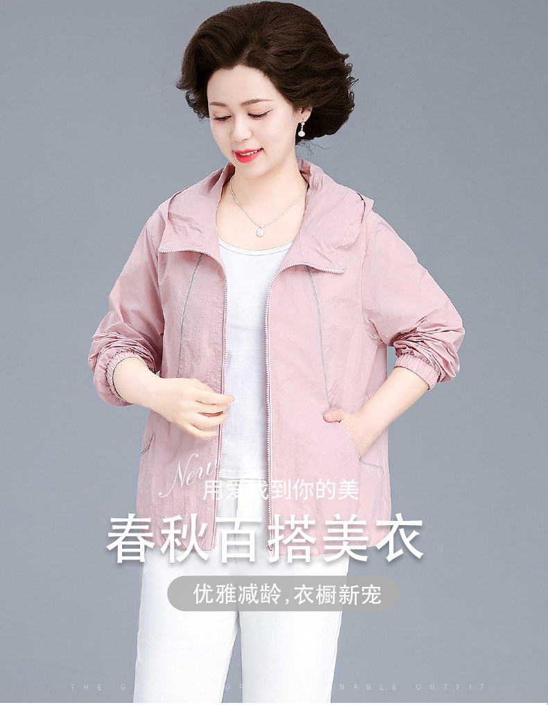 媽媽春裝薄款外套加大碼2025新款中老年女夏季連帽時尚洋氣防曬服
