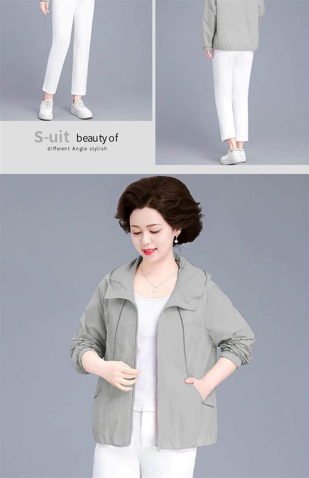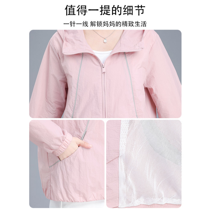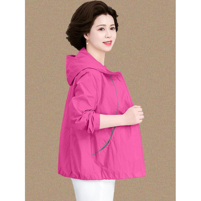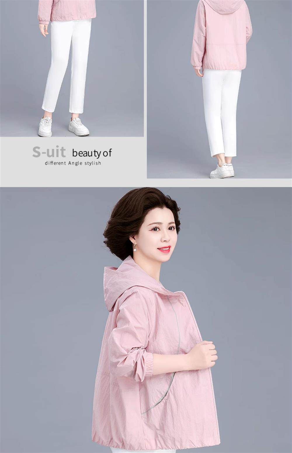 媽媽春裝薄款外套加大碼2025新款中老年女夏季連帽時尚洋氣防曬服