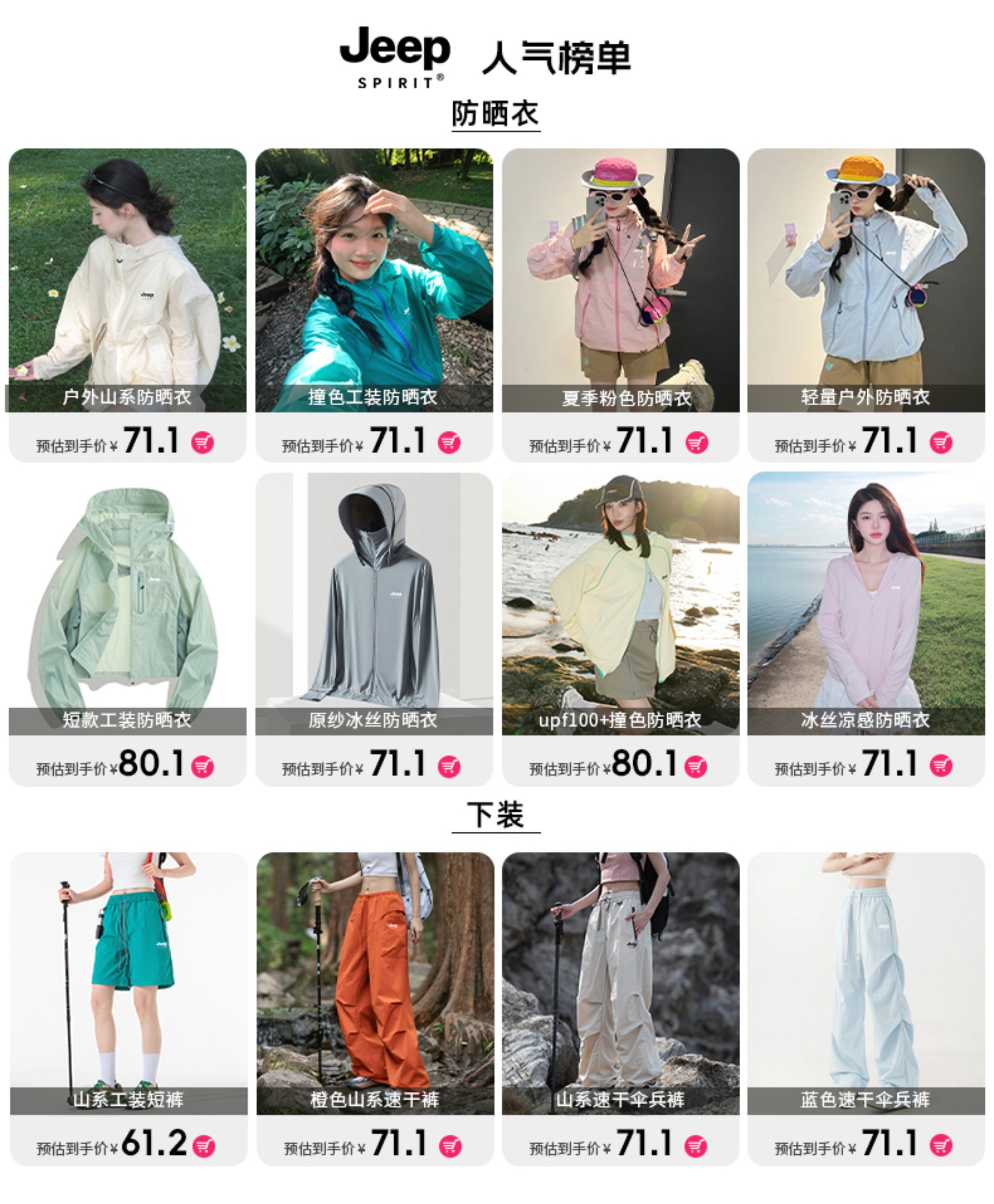 JEEP粉色冰絲防曬衣女款2025新款夏季防紫外線寬鬆輕薄防曬服外套