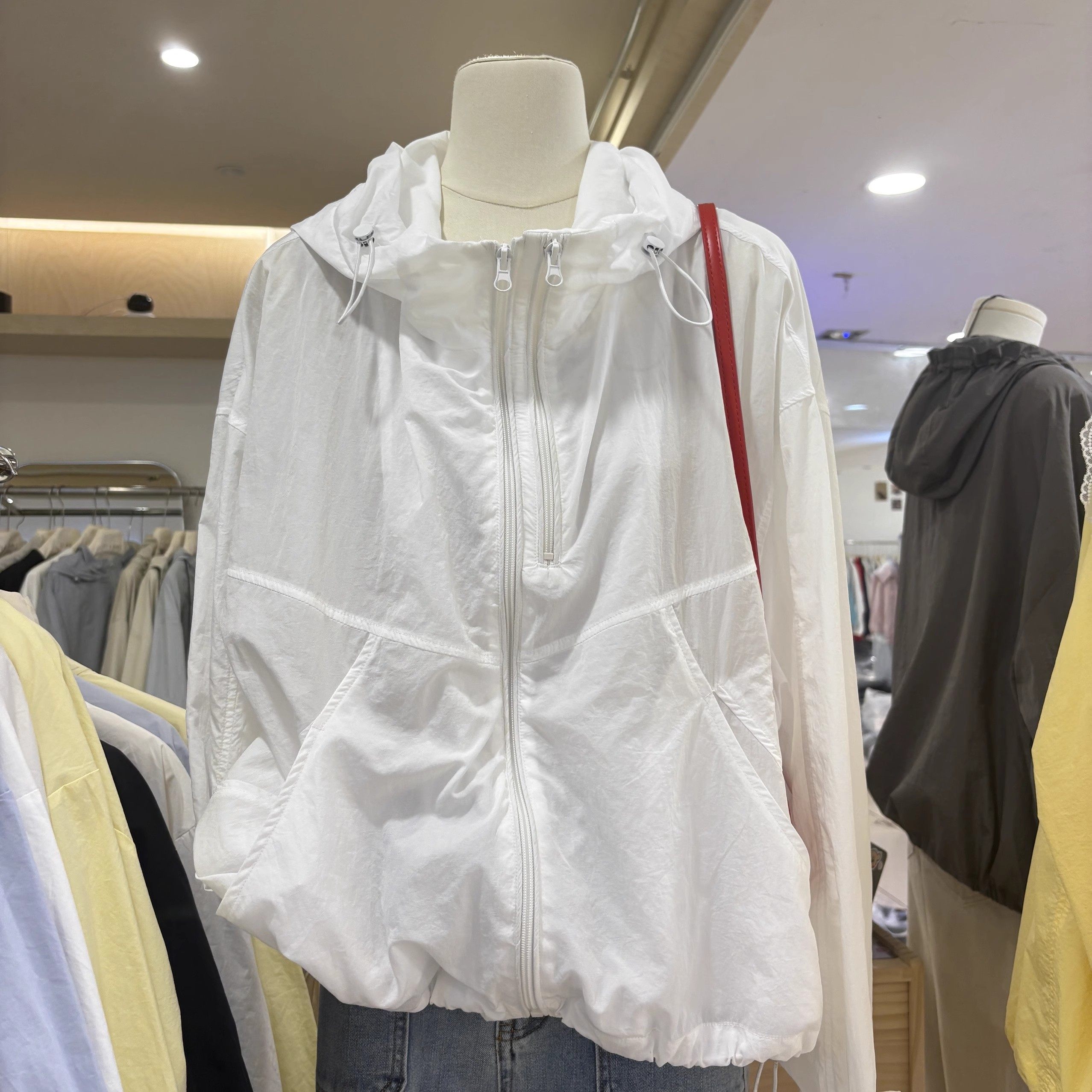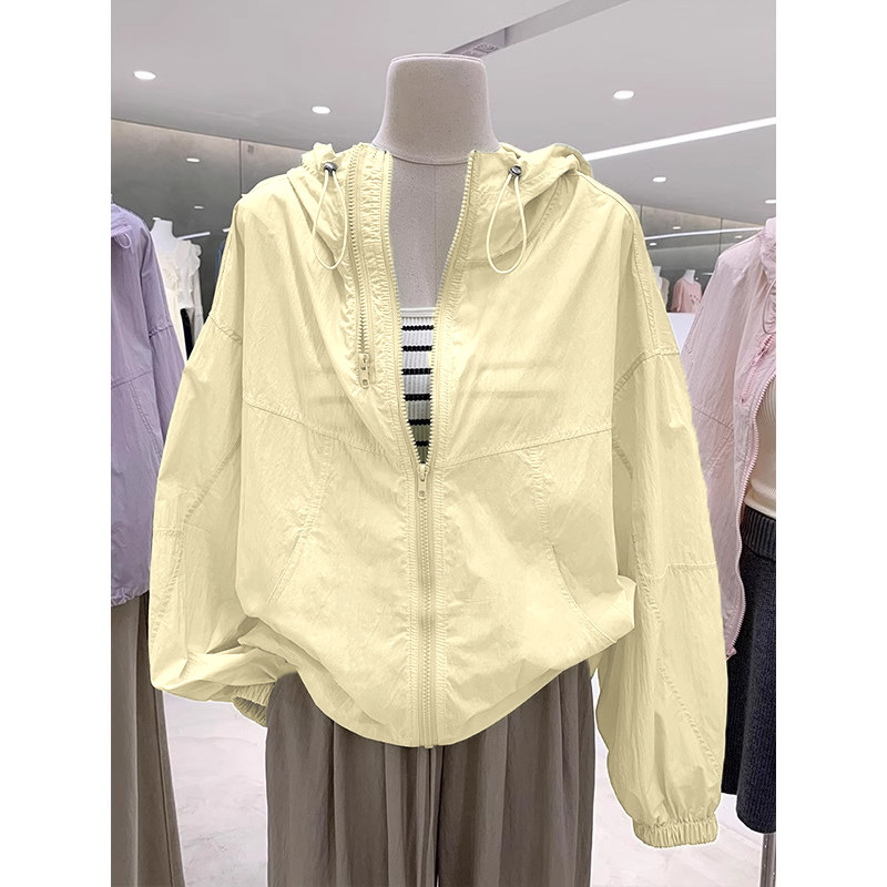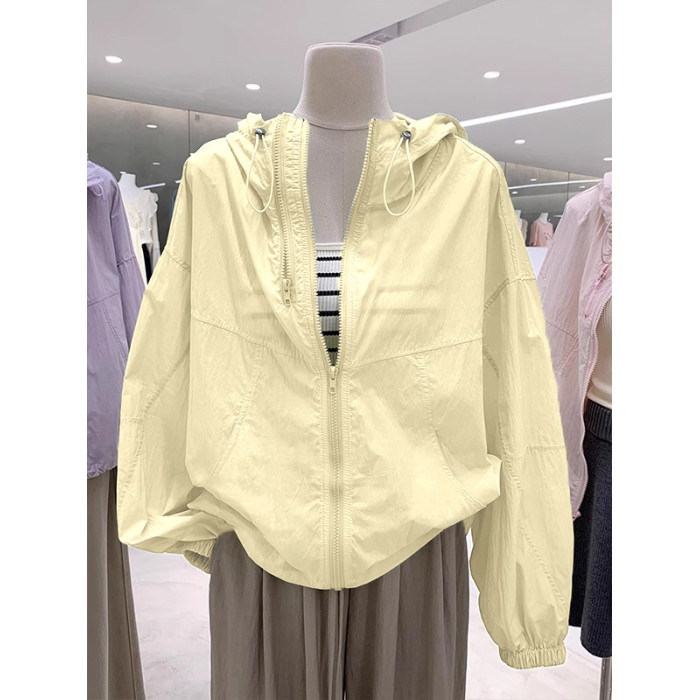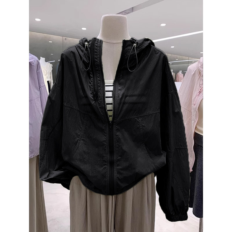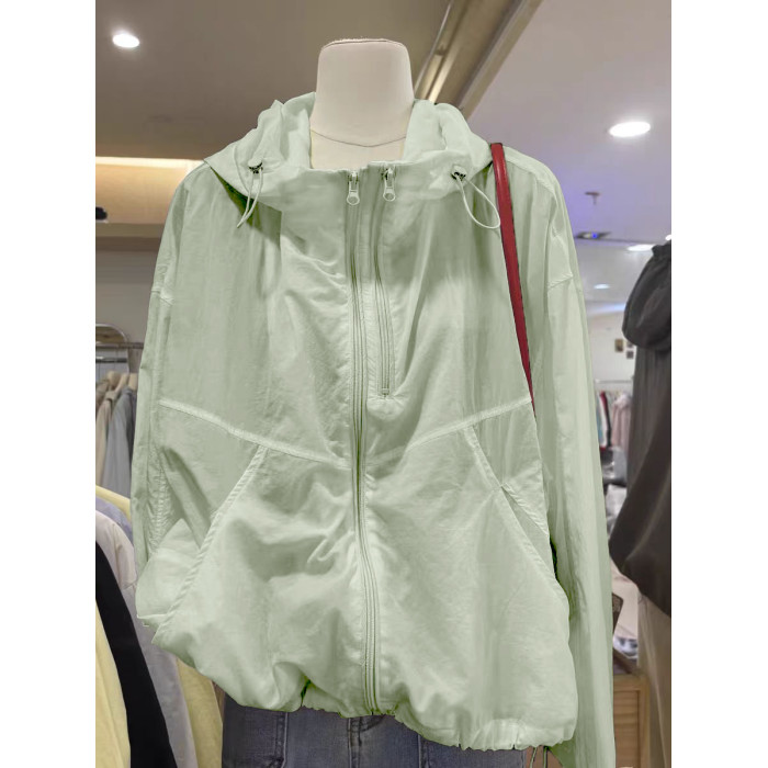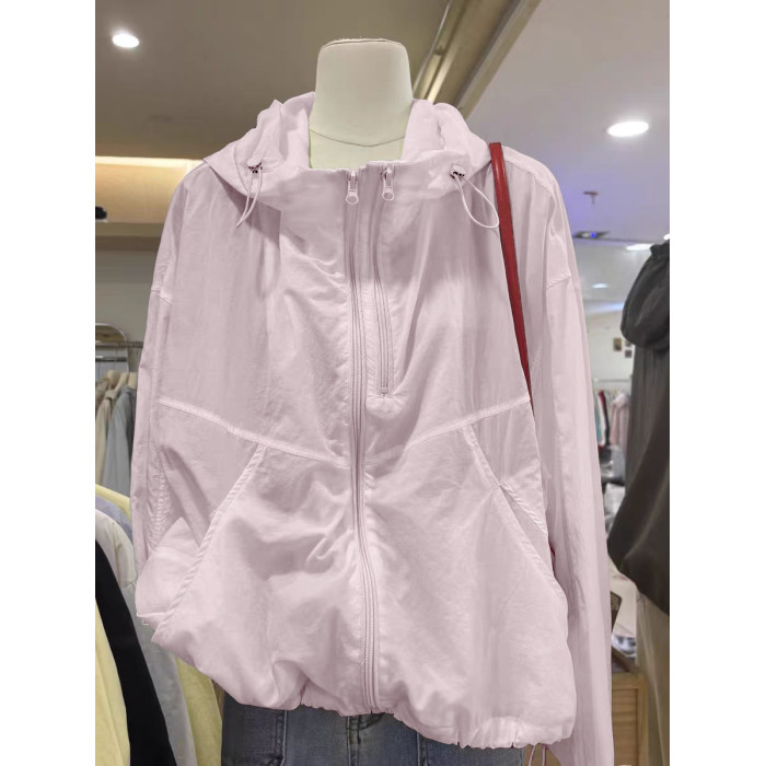 奧特萊斯~撤櫃剪標雙拉鍊薄款百搭連帽沖鋒衣輕薄外套女防曬上衣