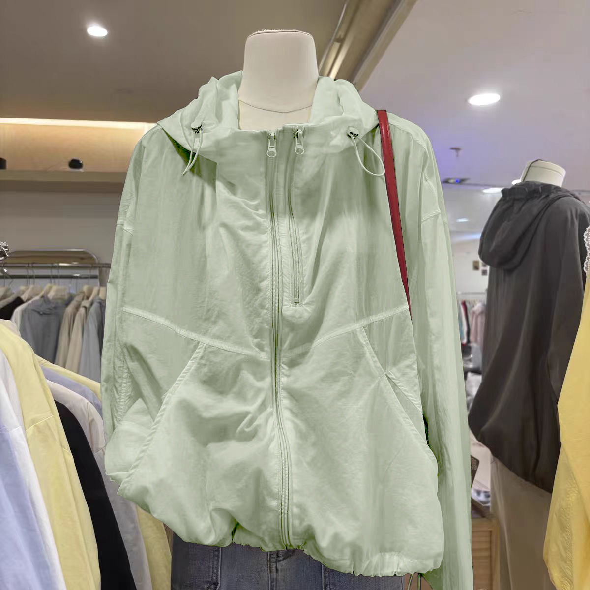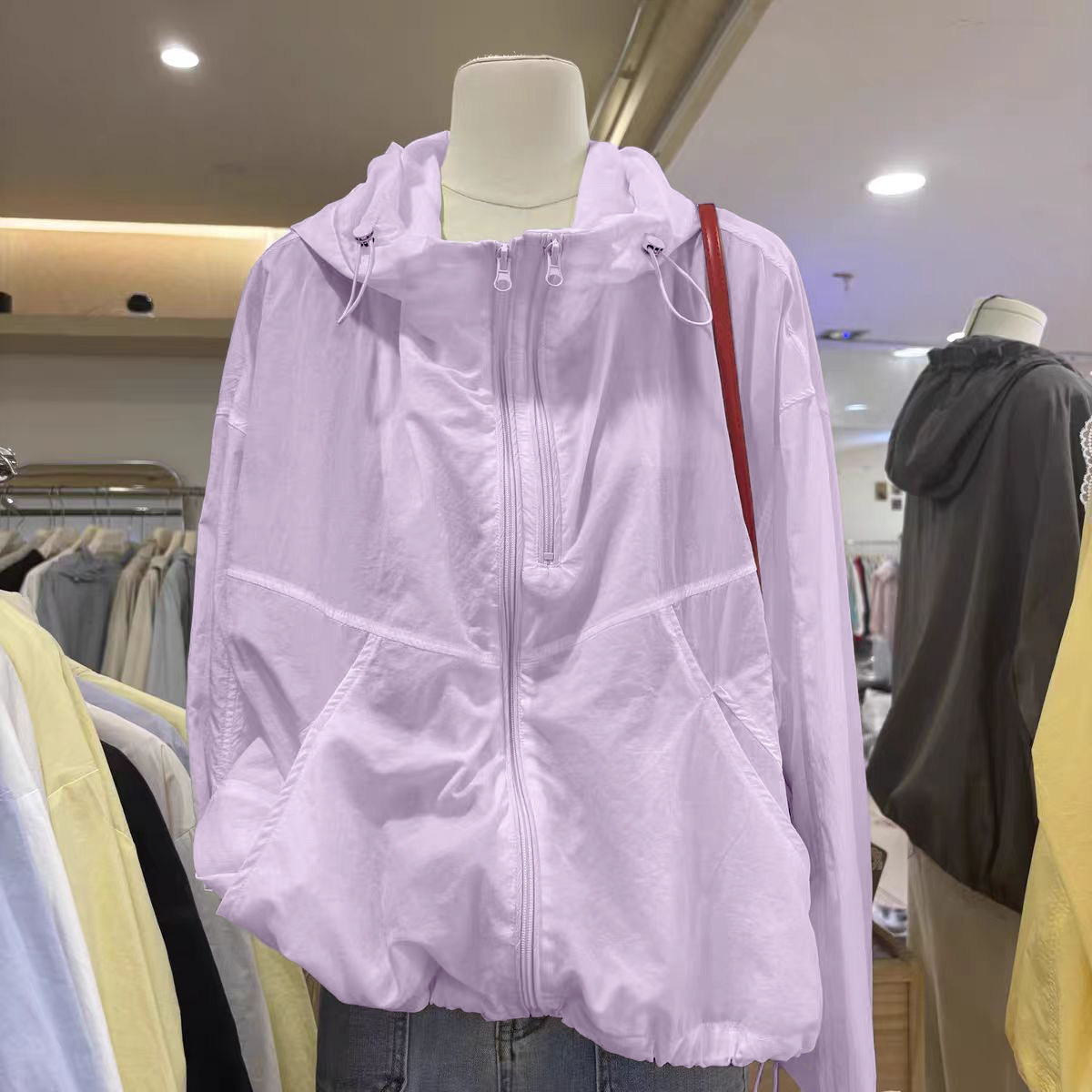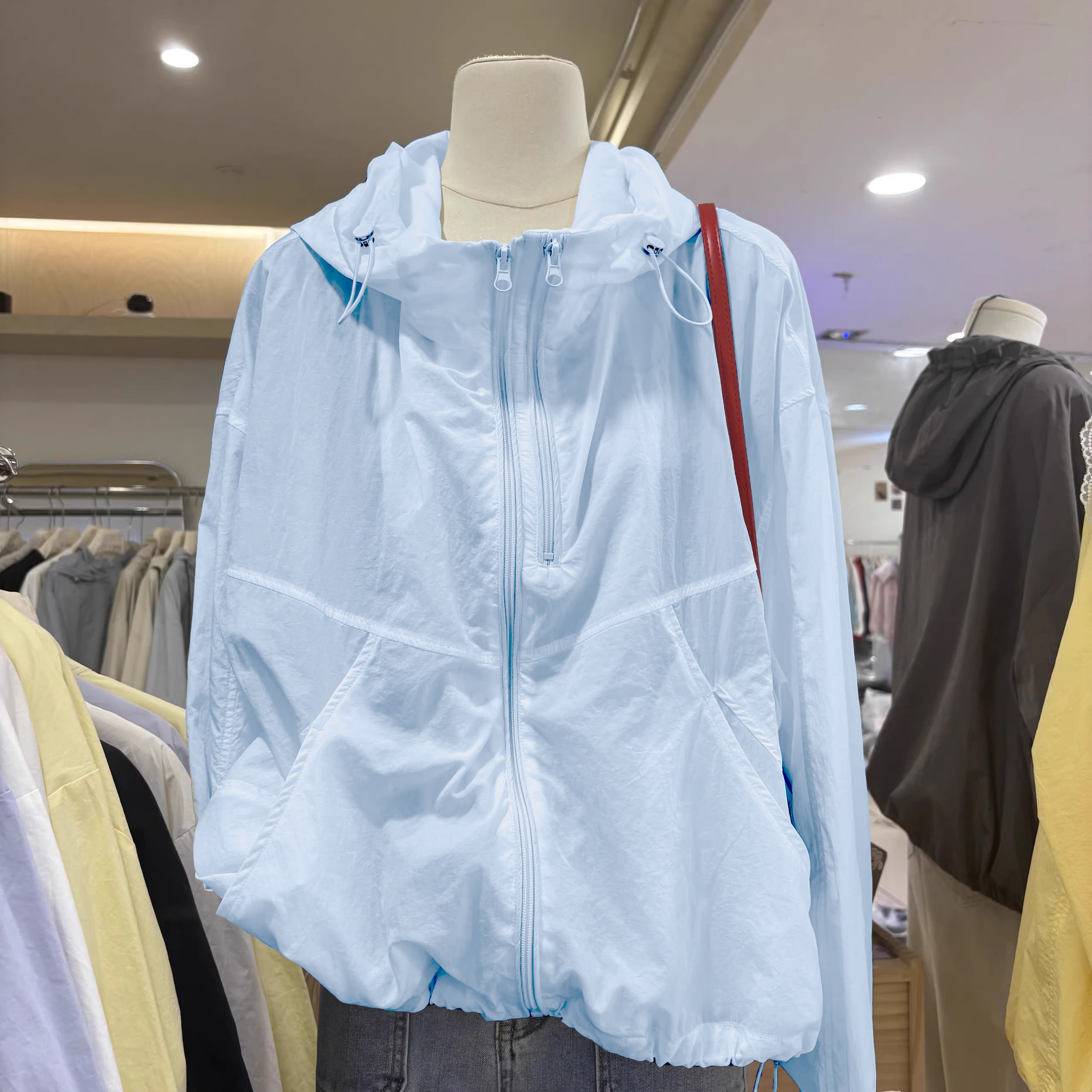 奧特萊斯~撤櫃剪標雙拉鍊薄款百搭連帽沖鋒衣輕薄外套女防曬上衣