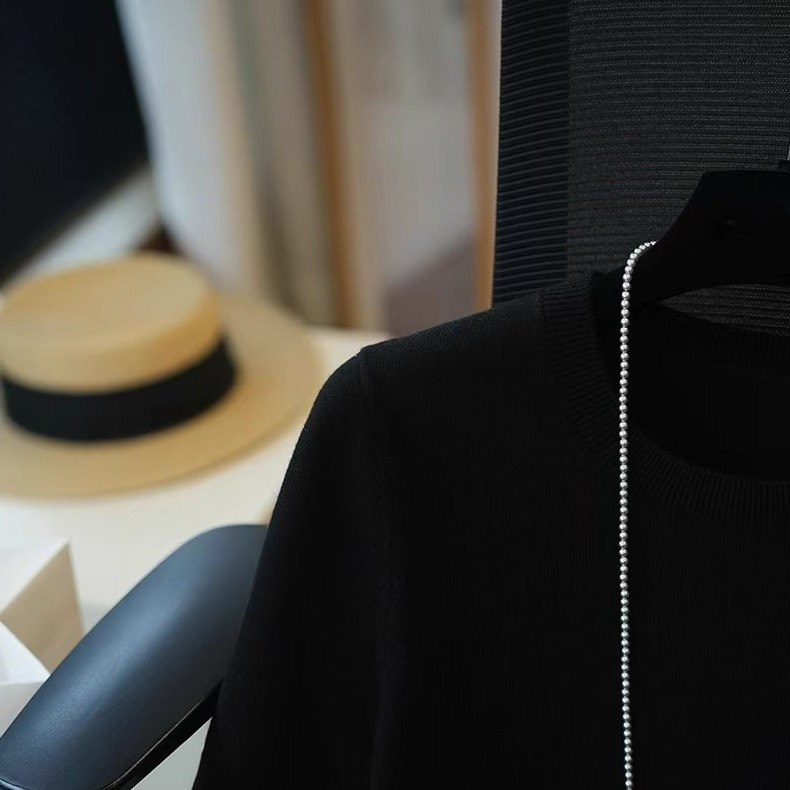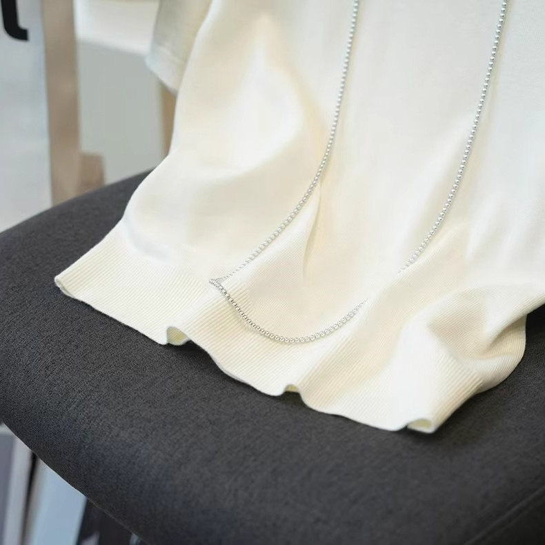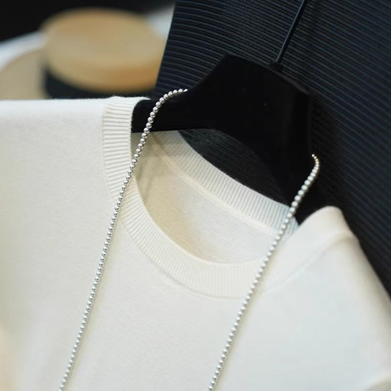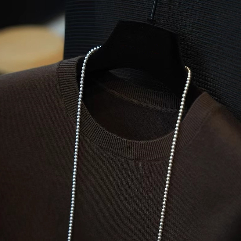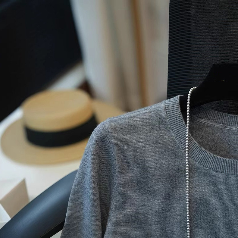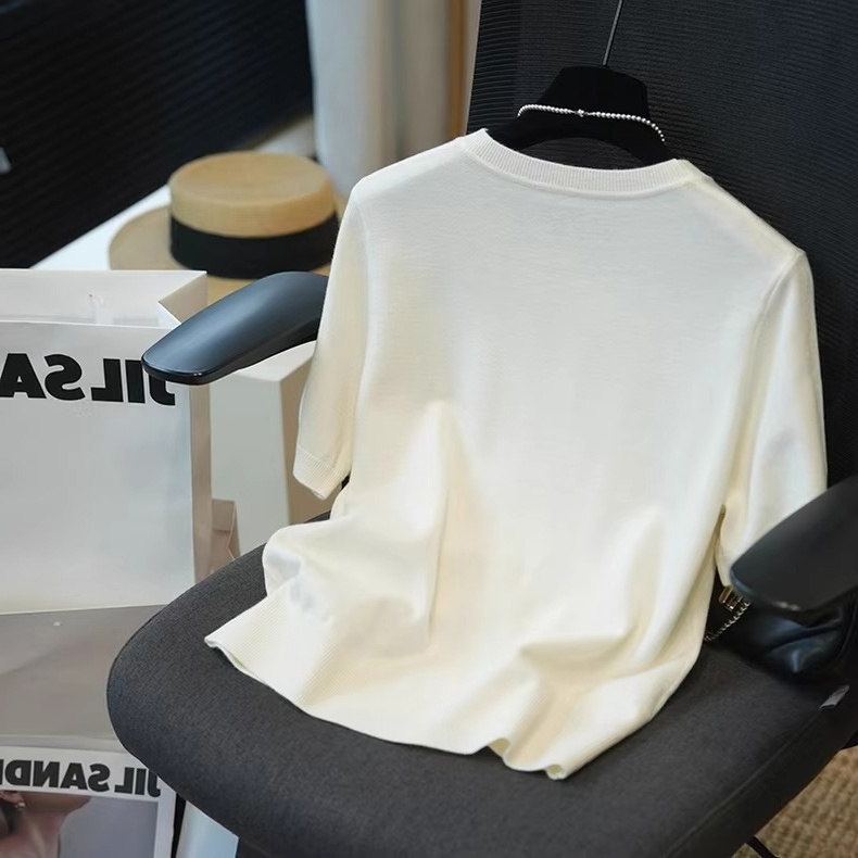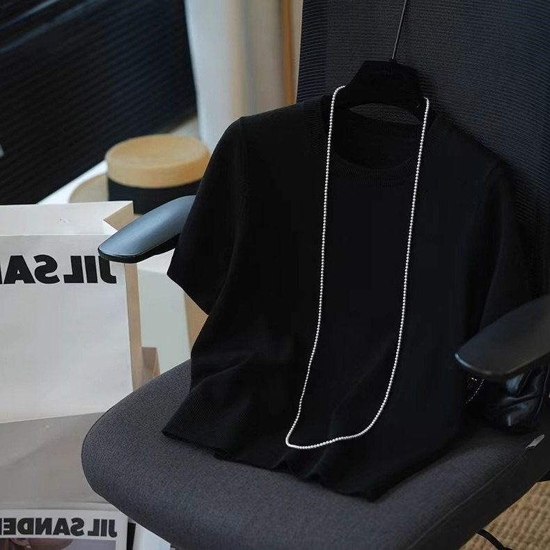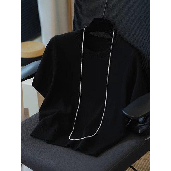 純色圓領冰絲短袖針織衫2025夏季精緻簡約寬鬆慵懶舒適正肩上衣女