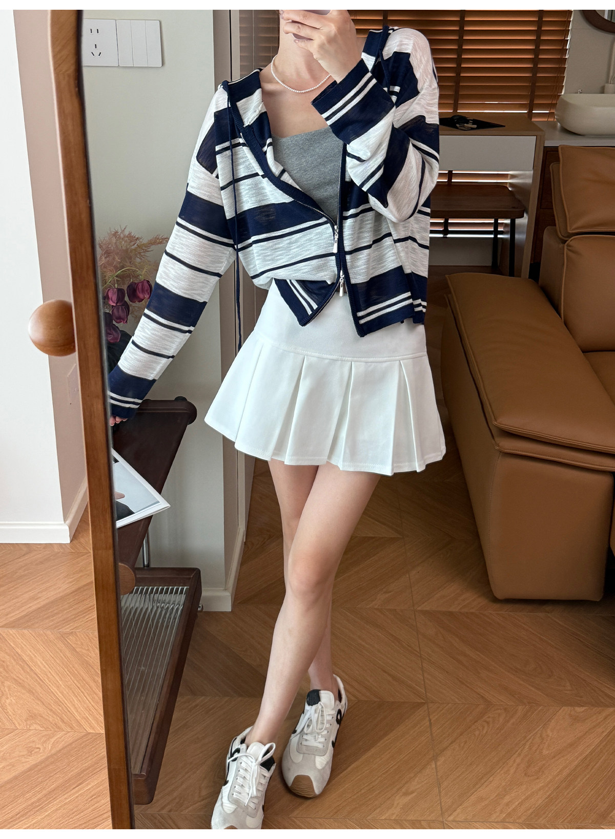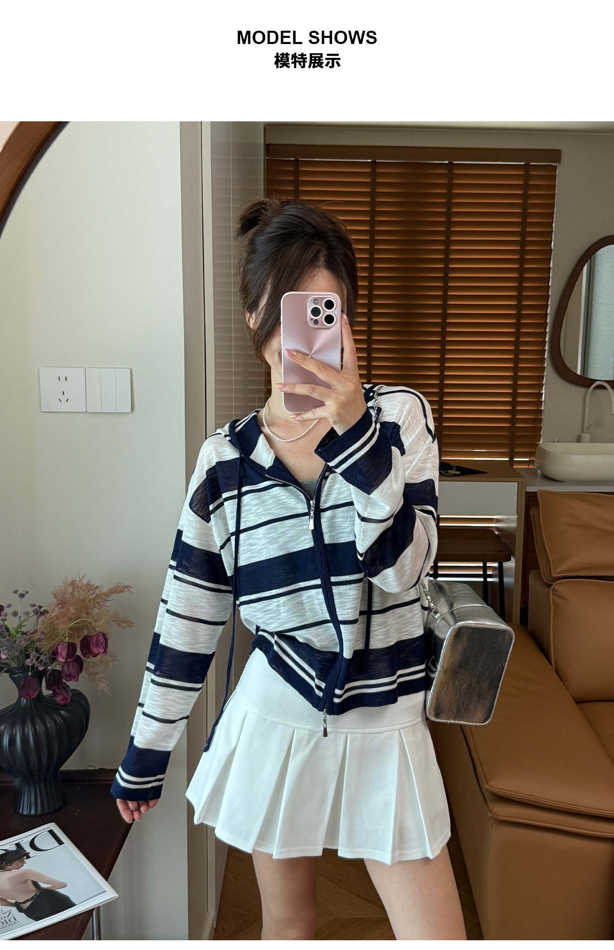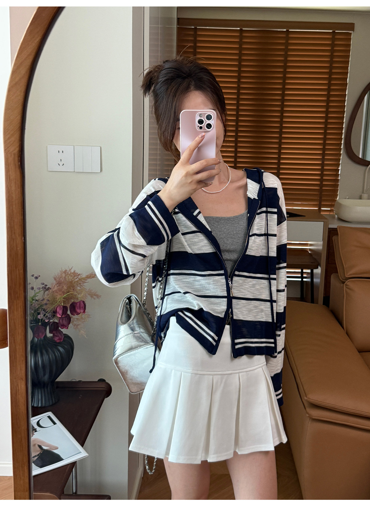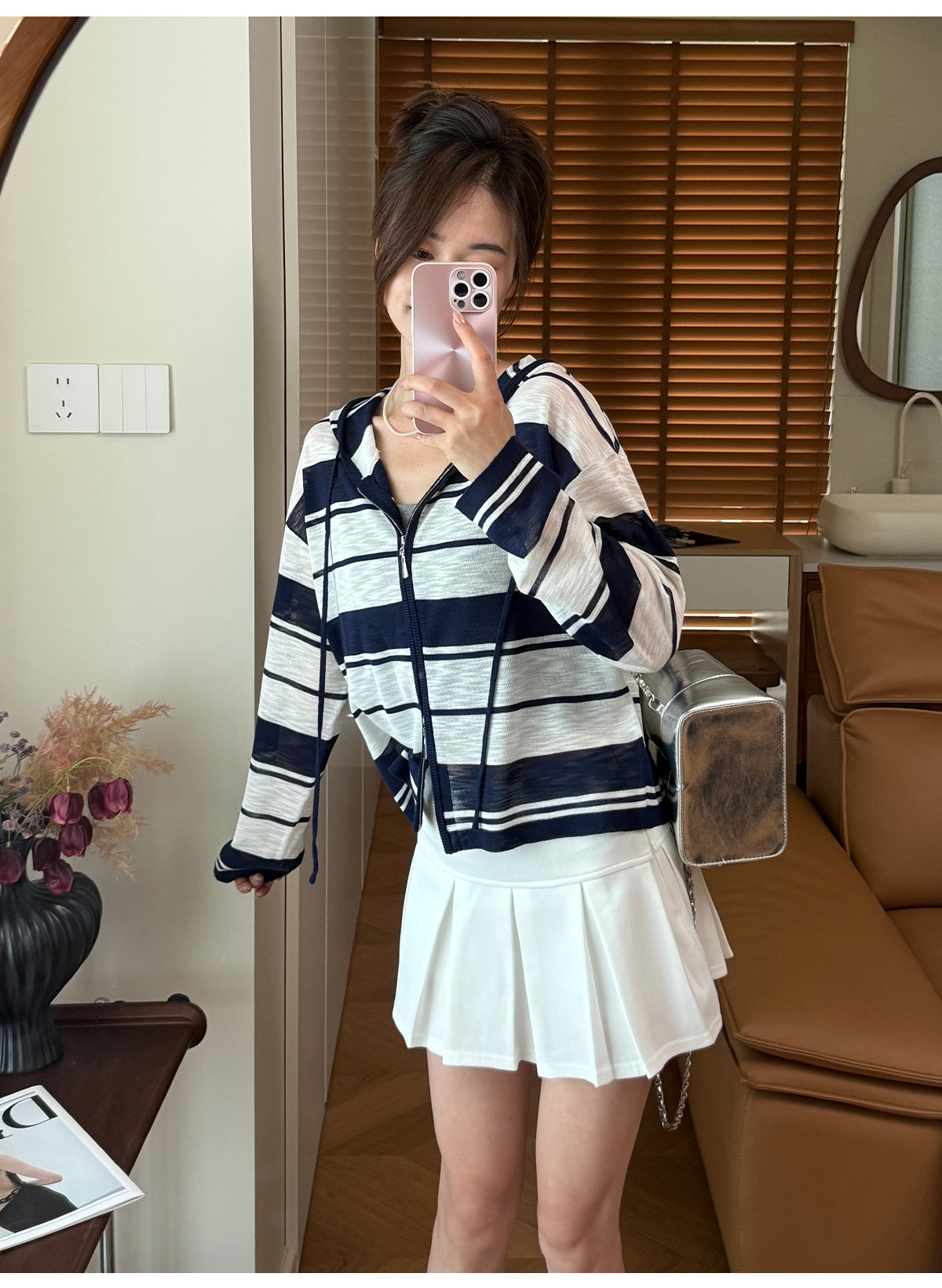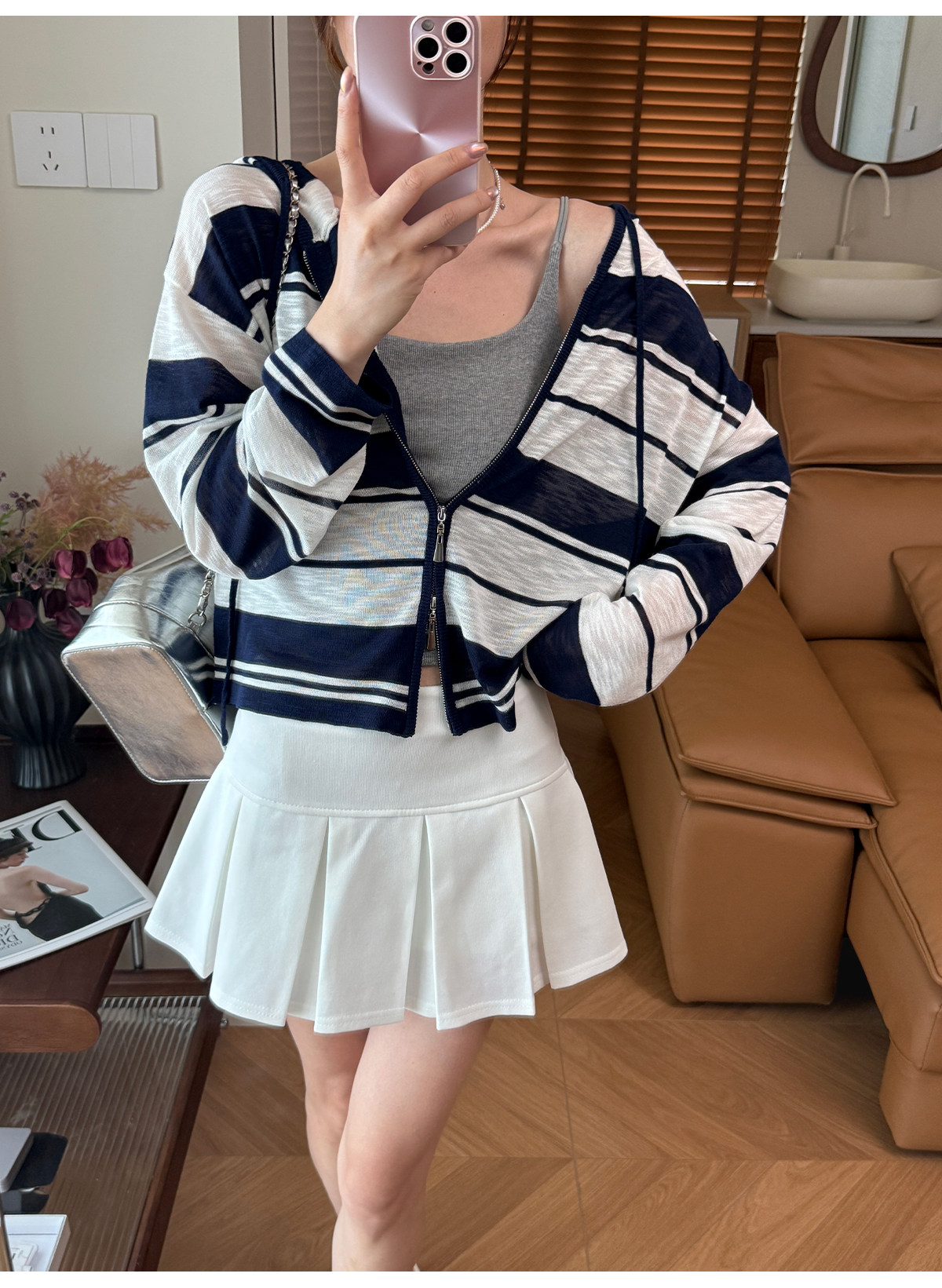 momo大姐姐條紋設計感連帽亞麻防曬衣女2025早秋新款百搭開衫上衣