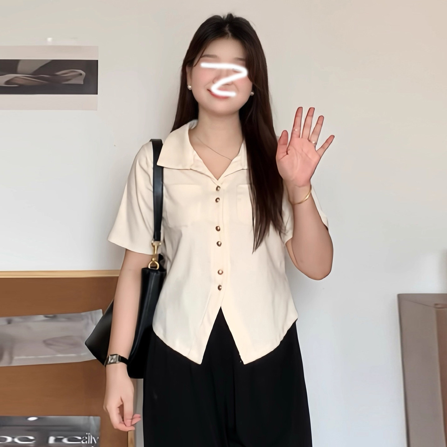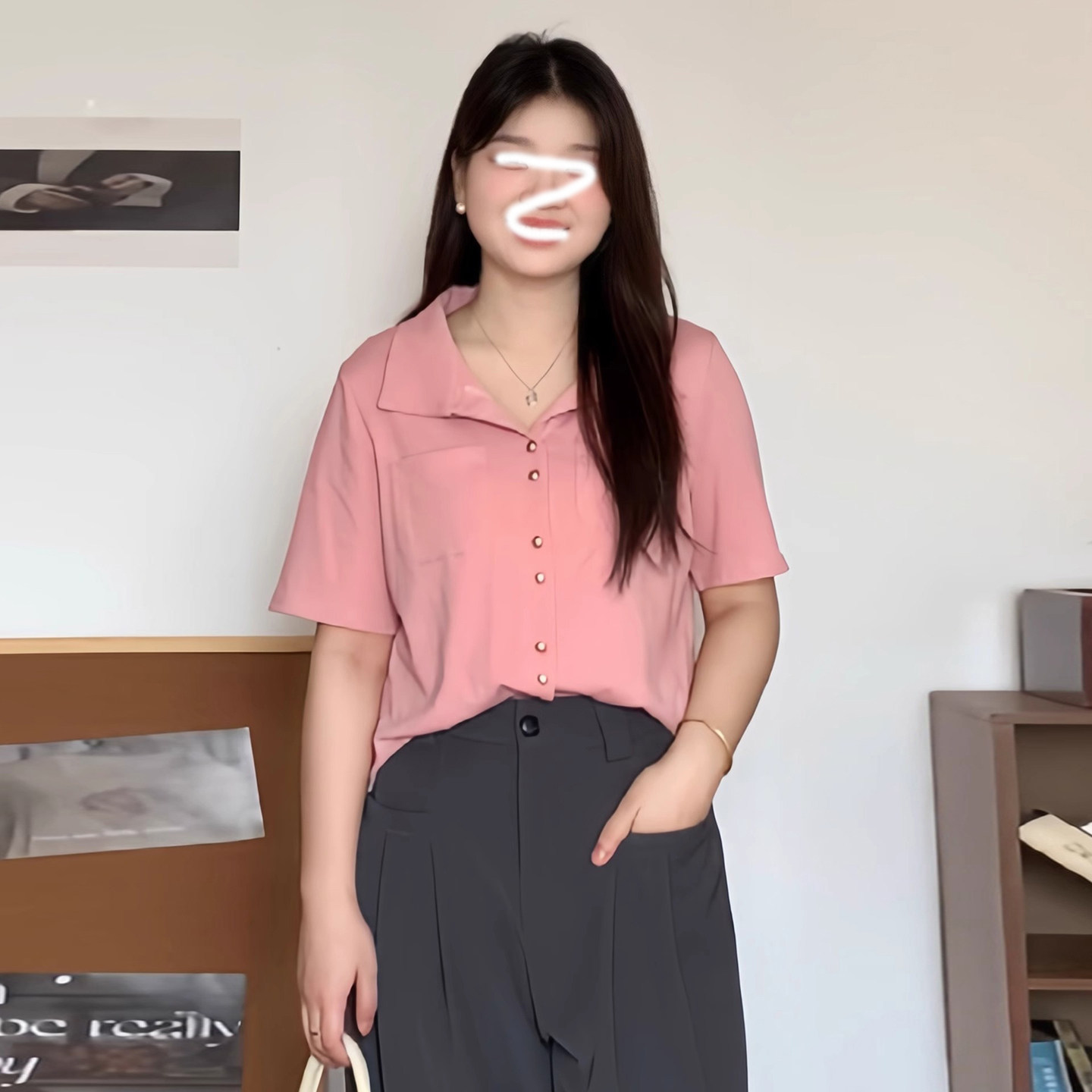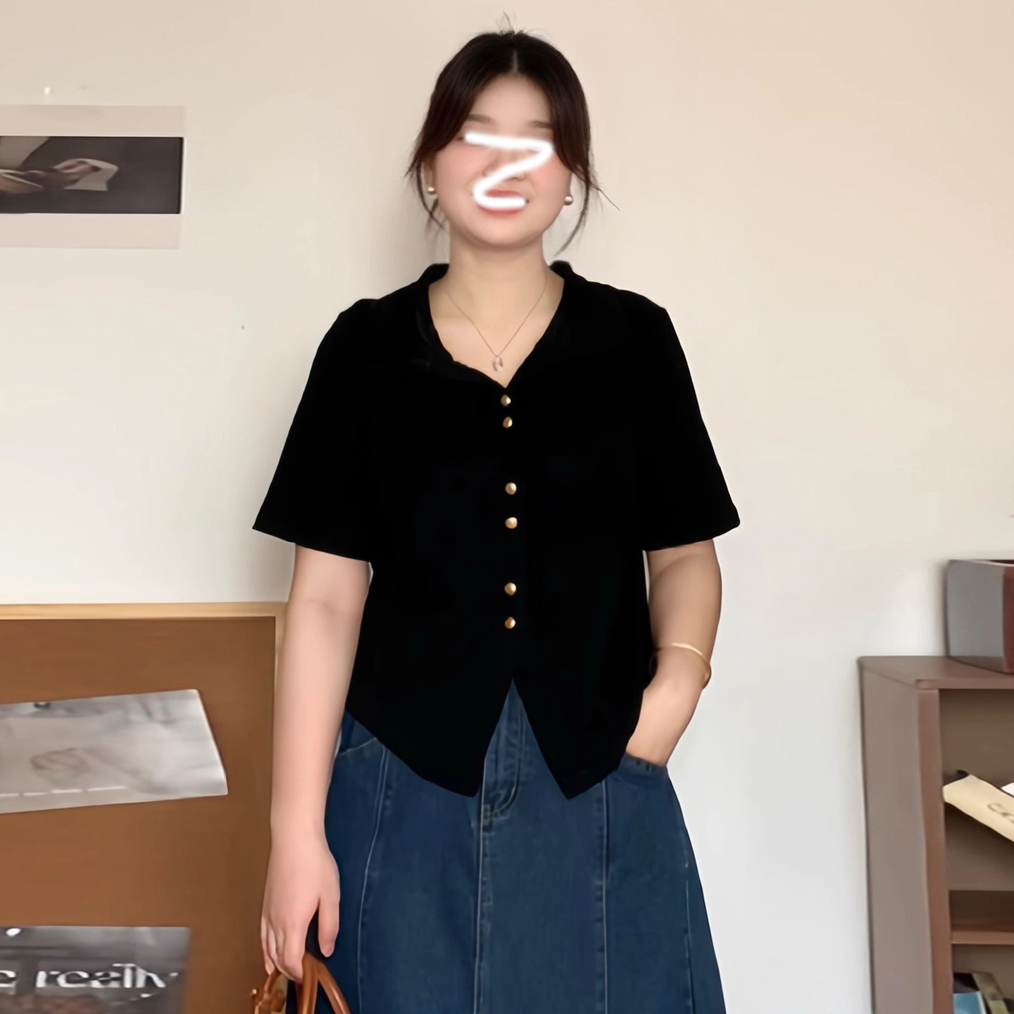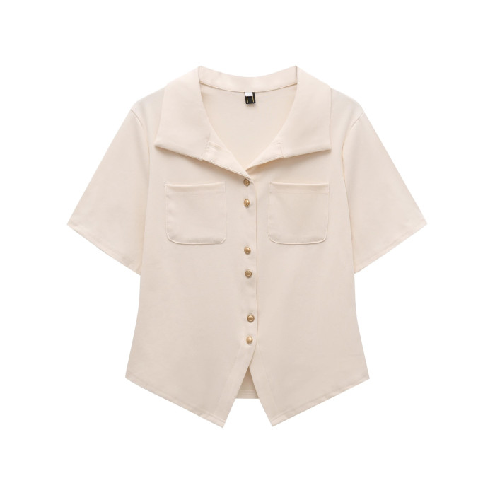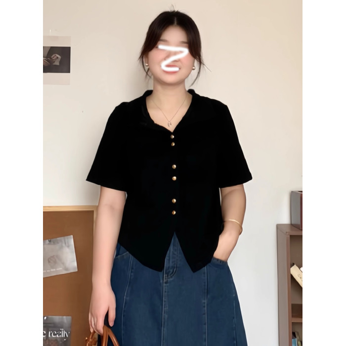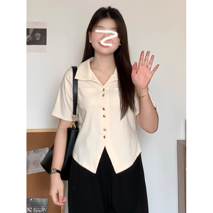 大碼韓系休閒風polo領短袖襯衫女裝夏季胖mm顯瘦百搭v領開衫上衣