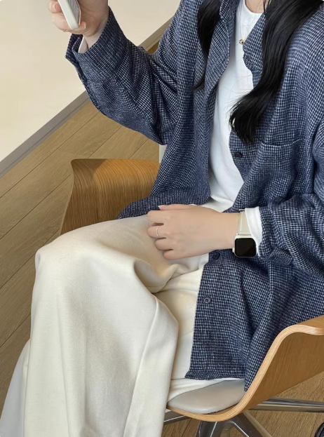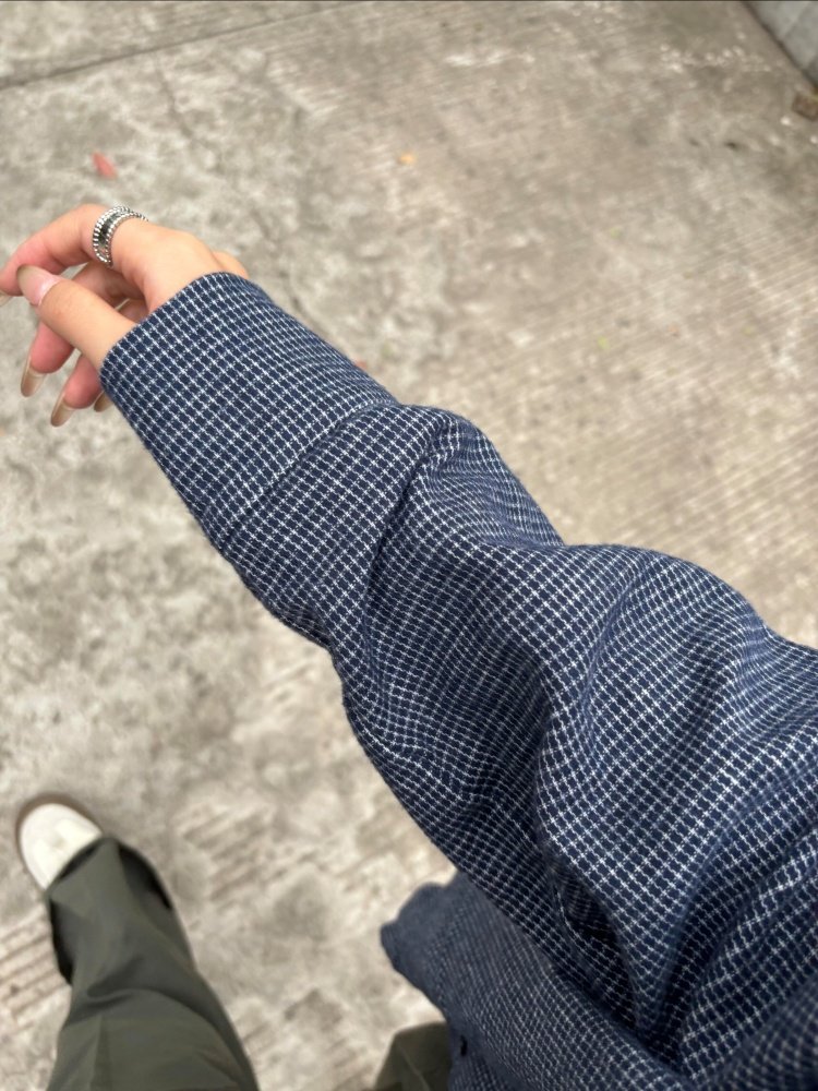 磨毛棉格子襯衫女春秋2025新款韓系chic復古寬鬆內搭曡穿上衣外套