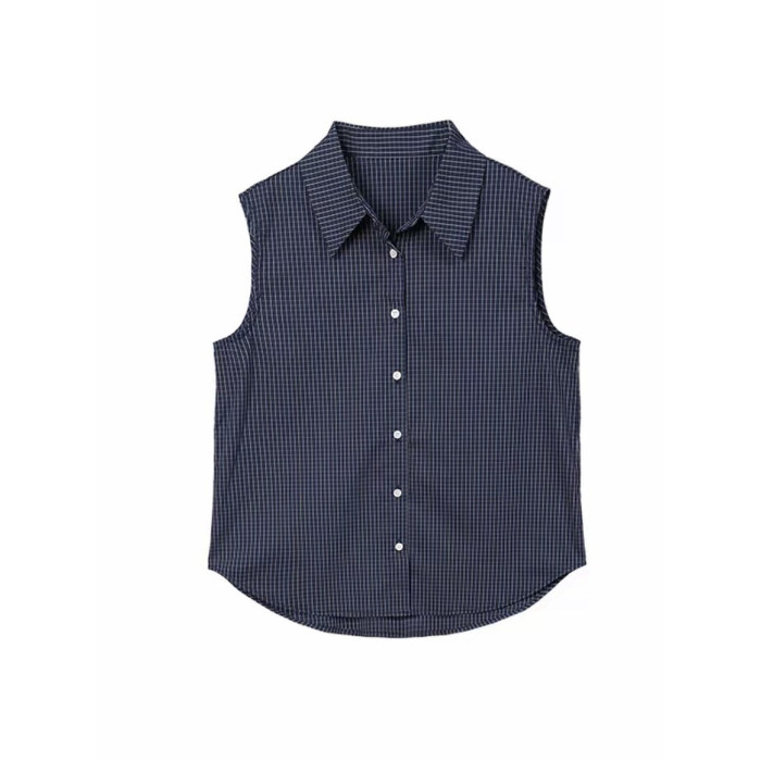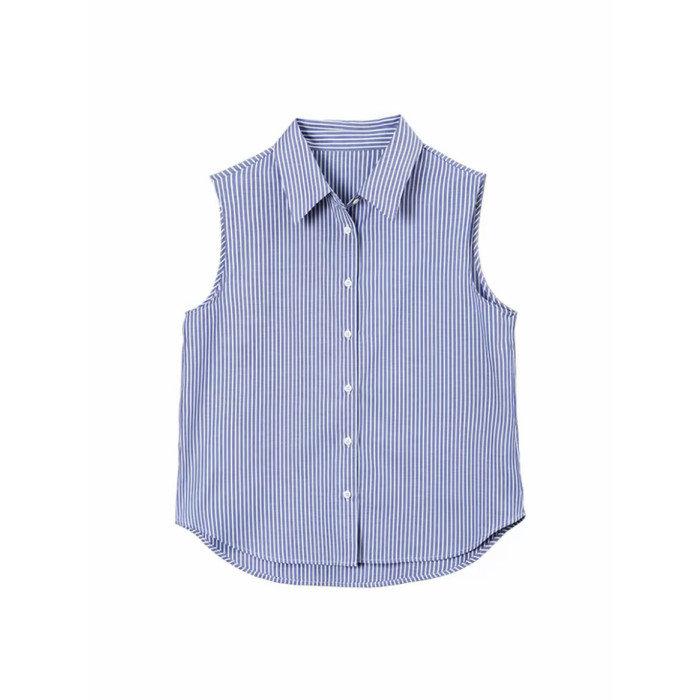 官方【四季曡搭】秋冬新款百搭條紋無袖襯衫曡穿背心繙領襯衣顯瘦