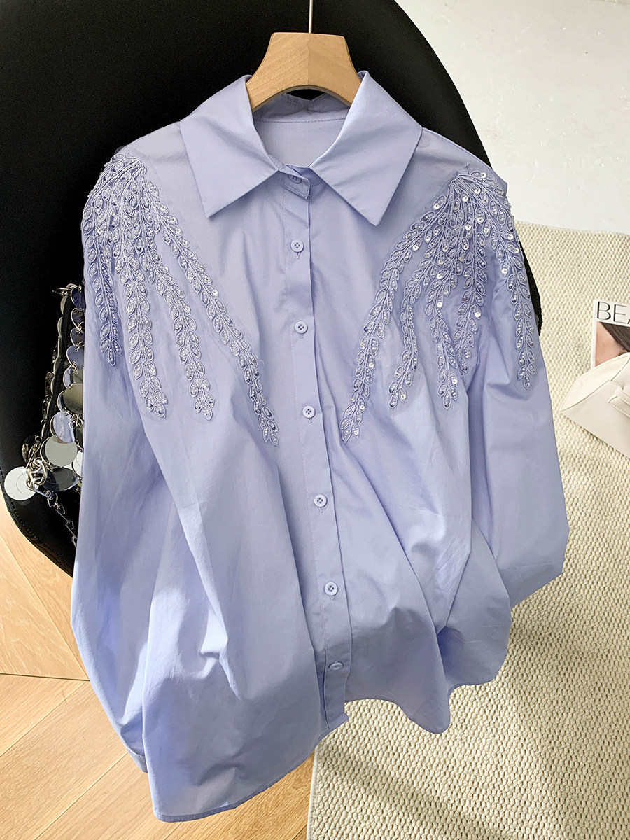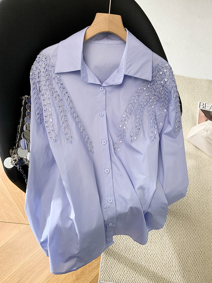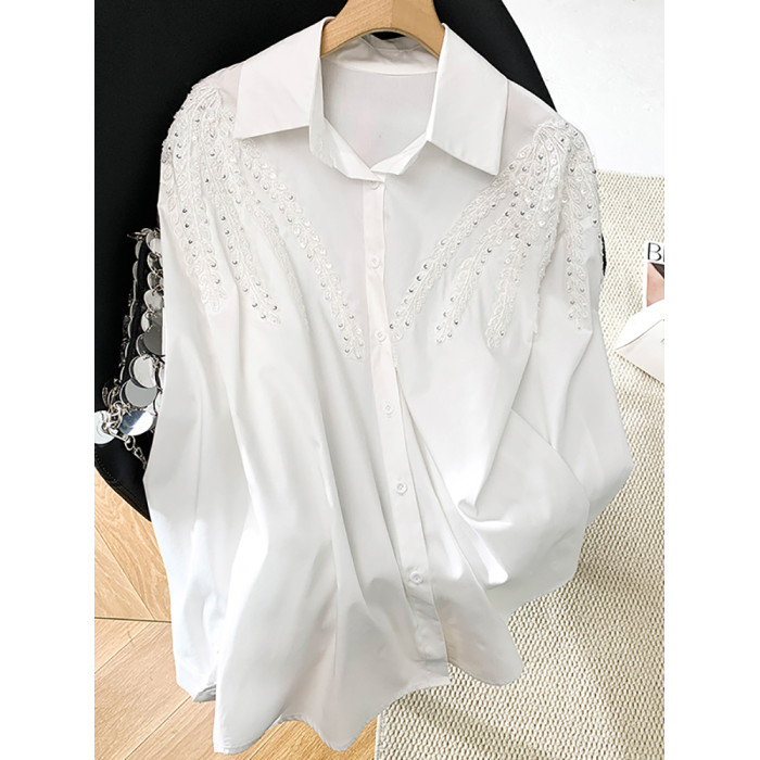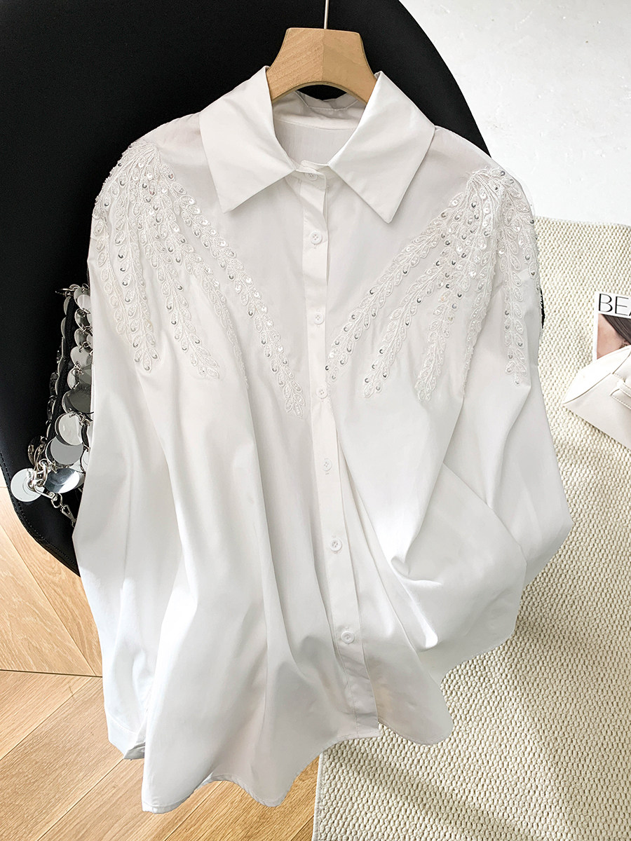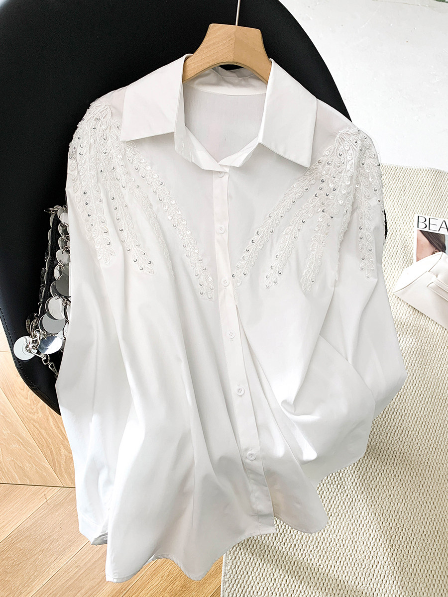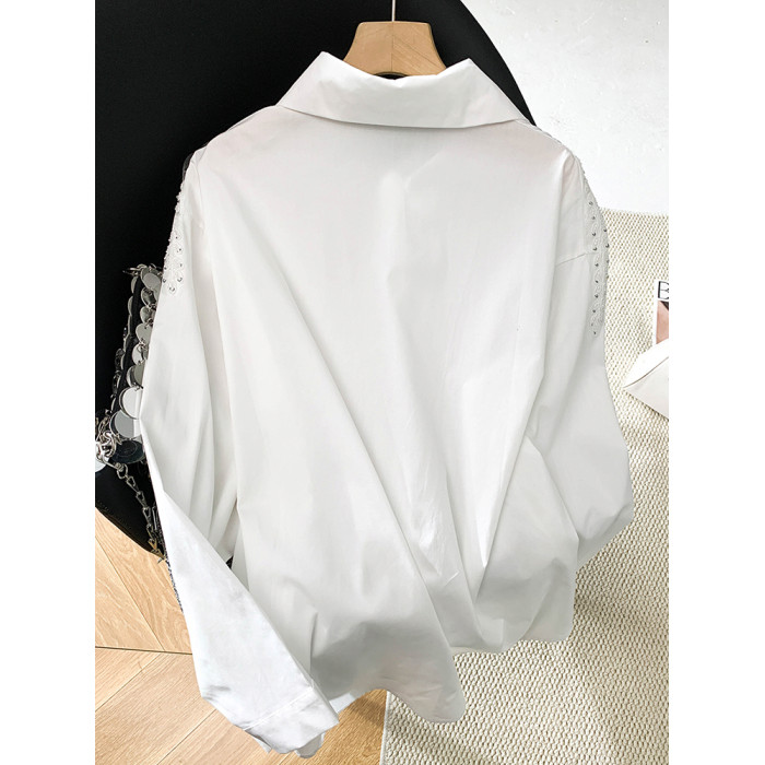 自畱款推薦~洋氣百搭顯瘦重工釘珠襯衫女2026春季新款寬鬆上衣潮