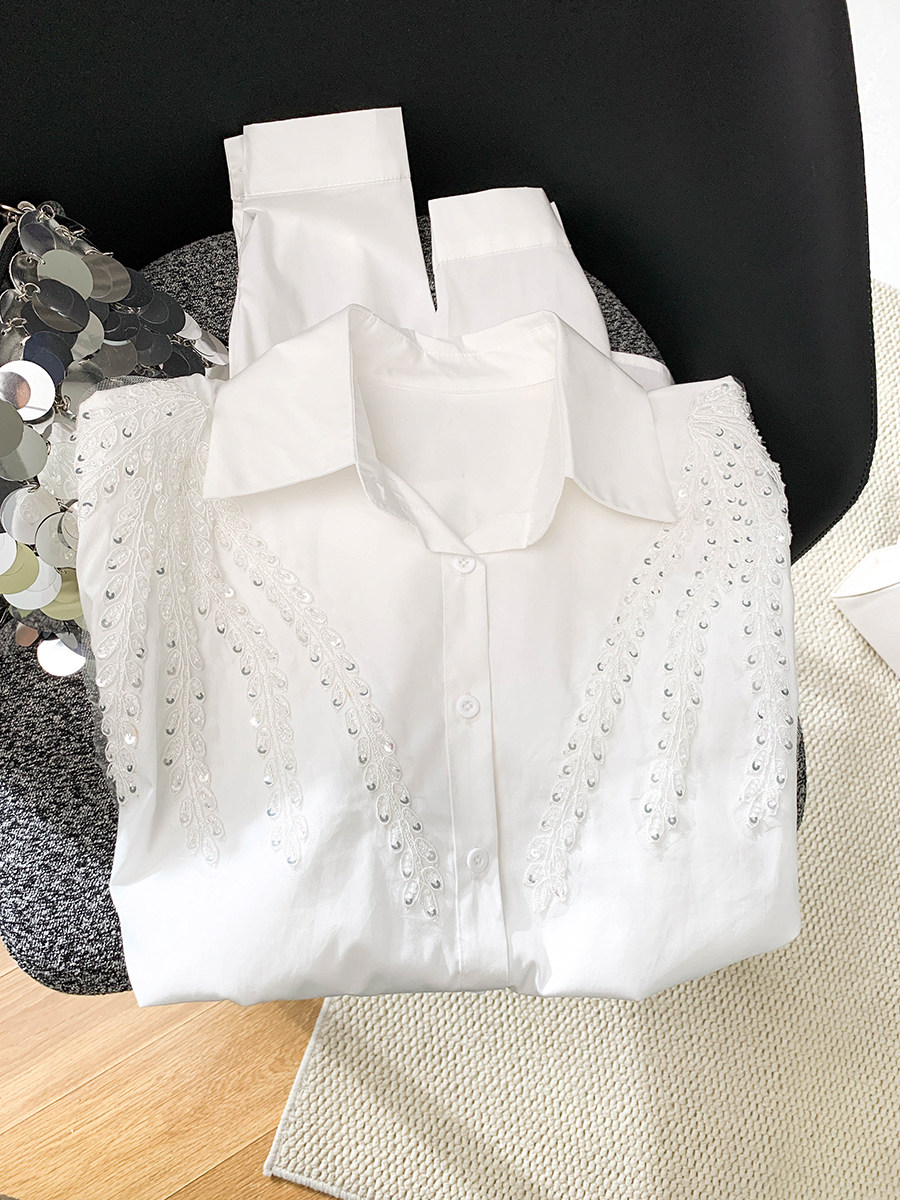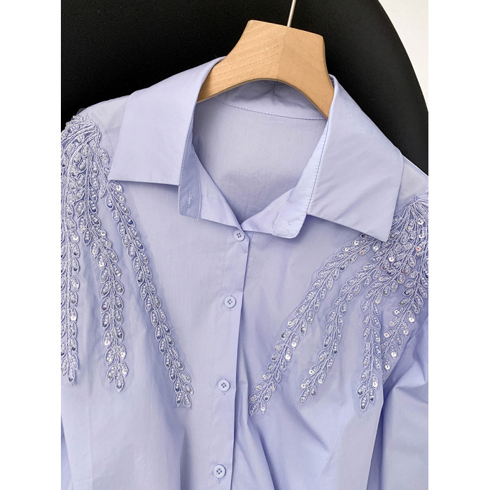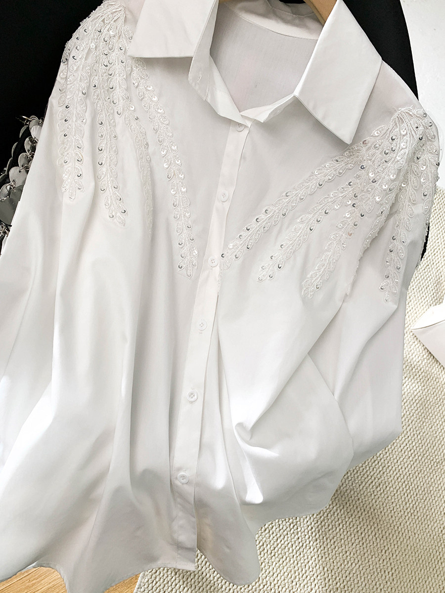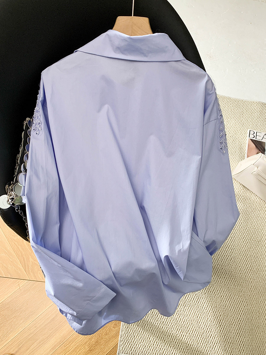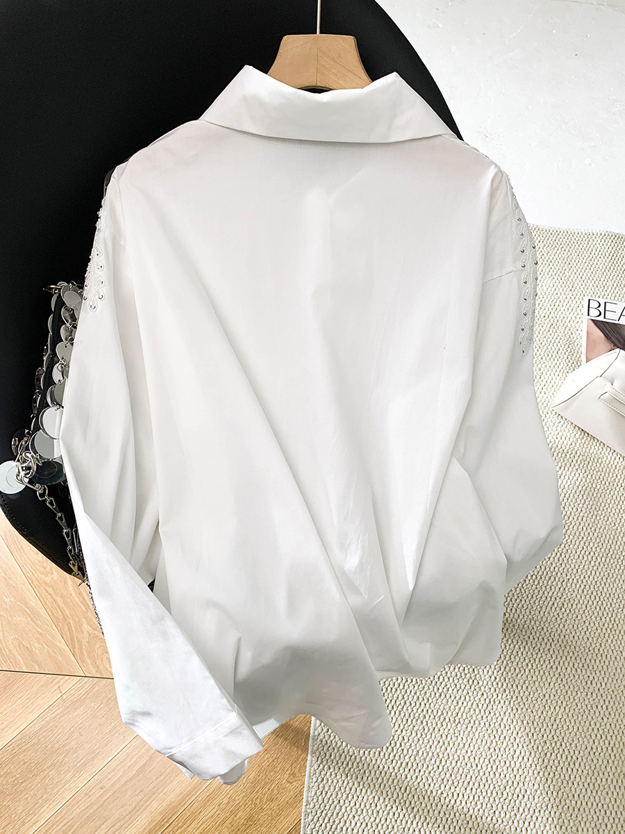 自畱款推薦~洋氣百搭顯瘦重工釘珠襯衫女2026春季新款寬鬆上衣潮