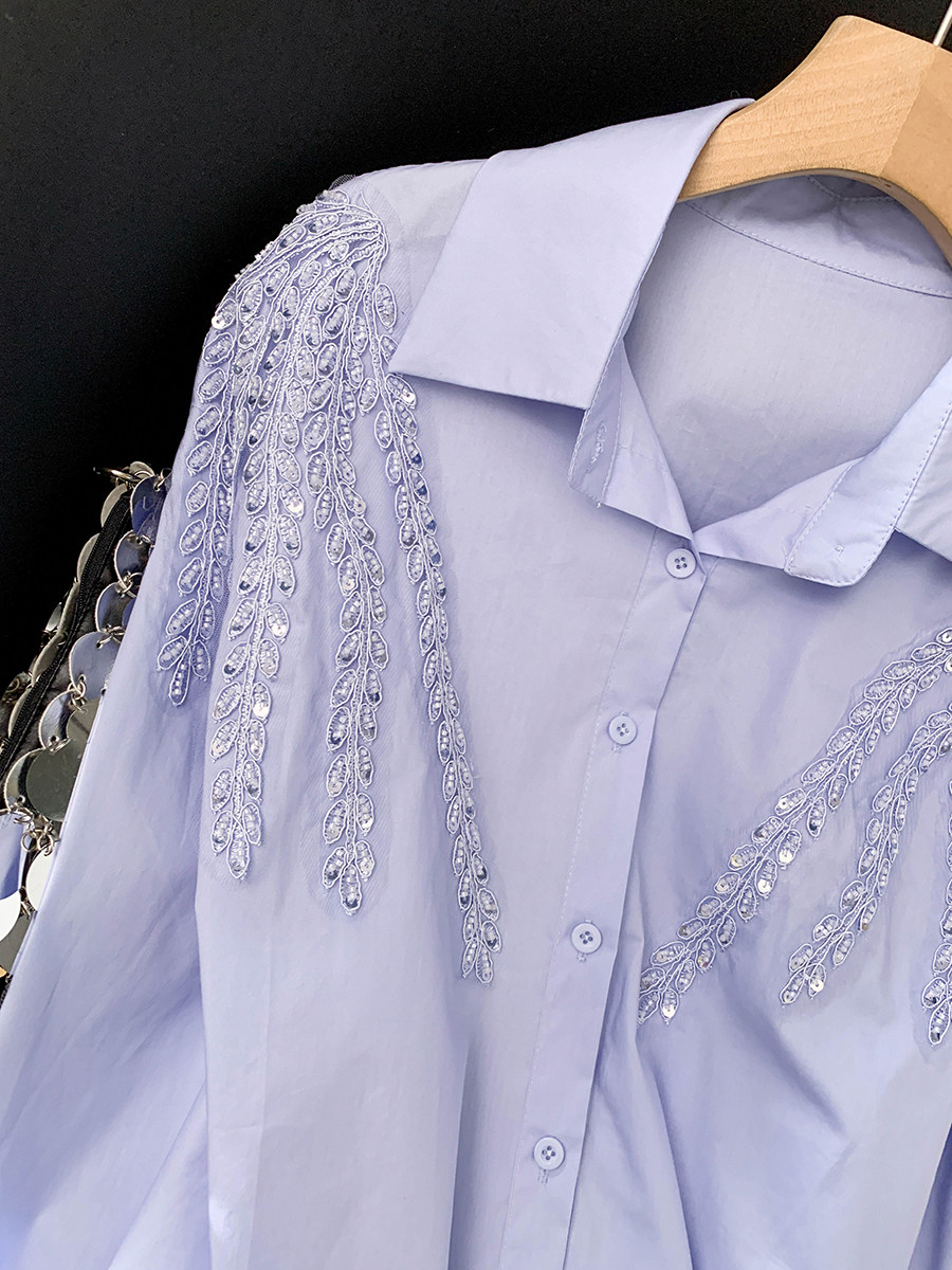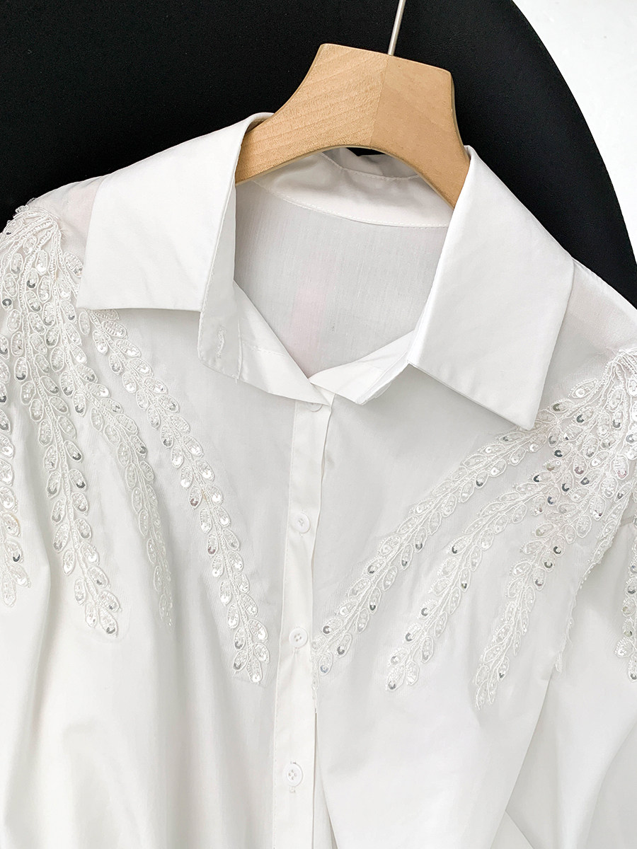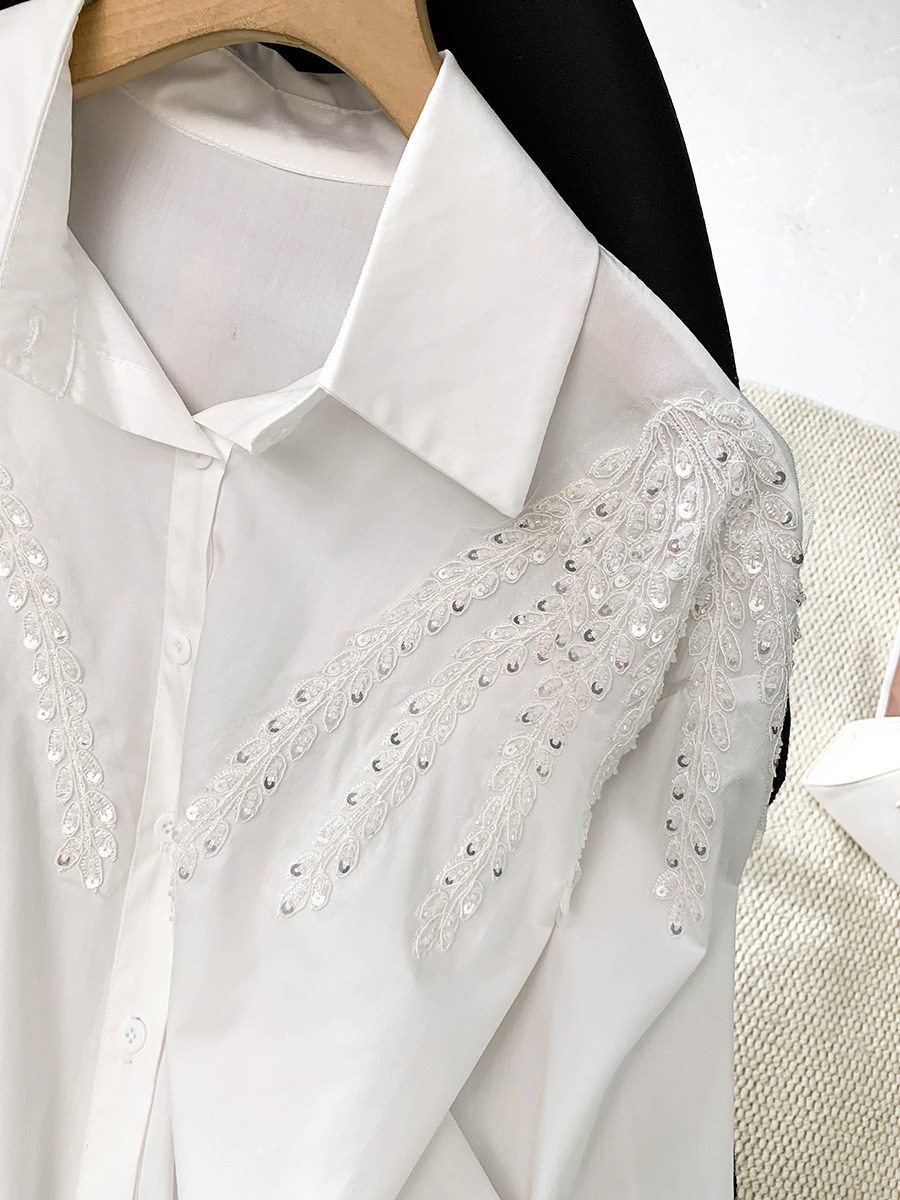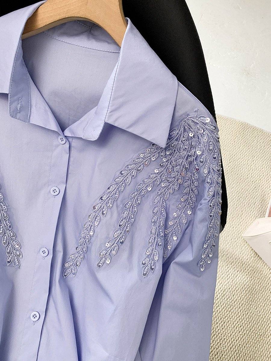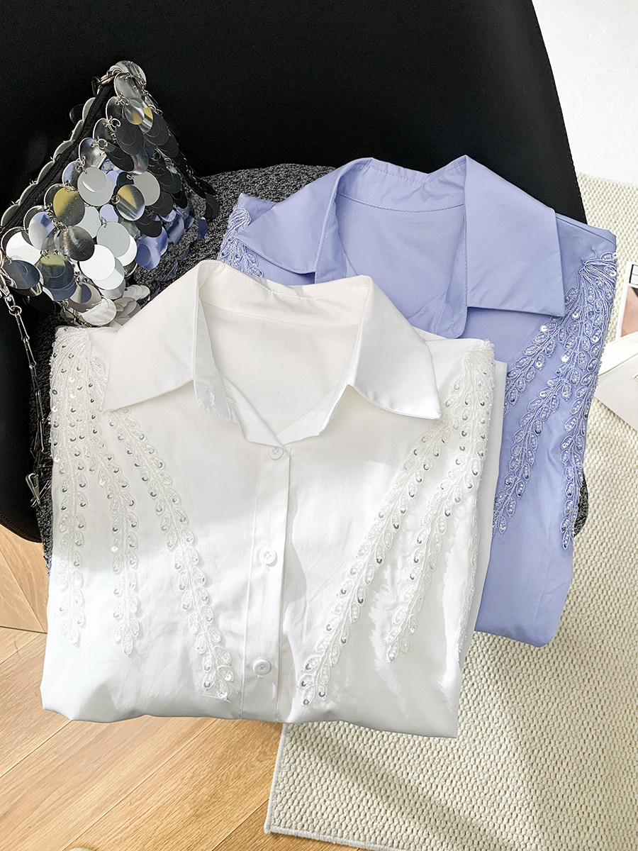 自畱款推薦~洋氣百搭顯瘦重工釘珠襯衫女2026春季新款寬鬆上衣潮