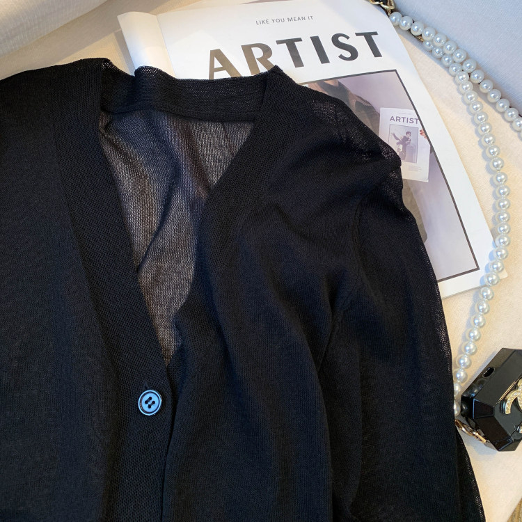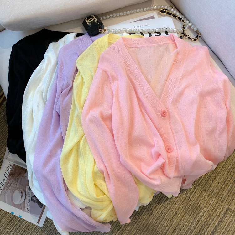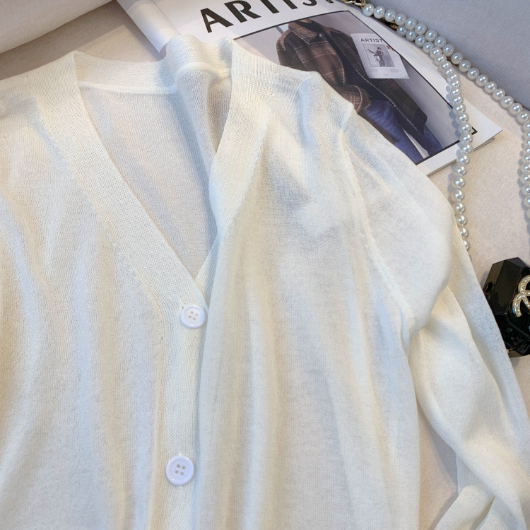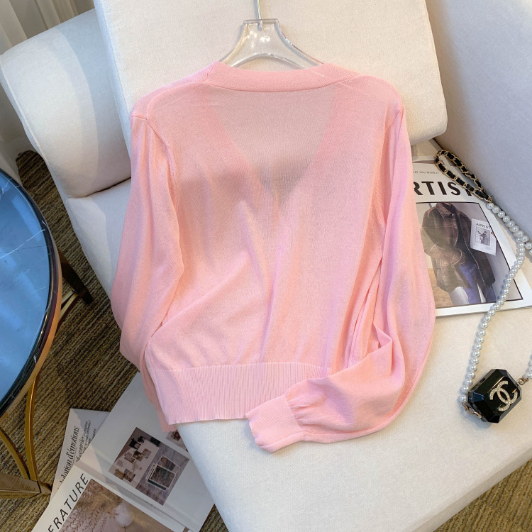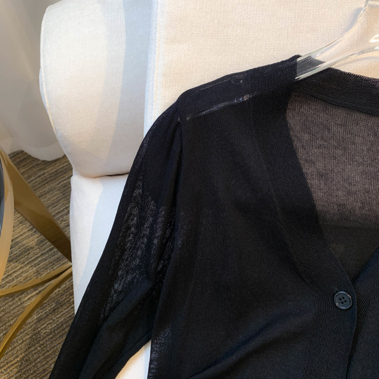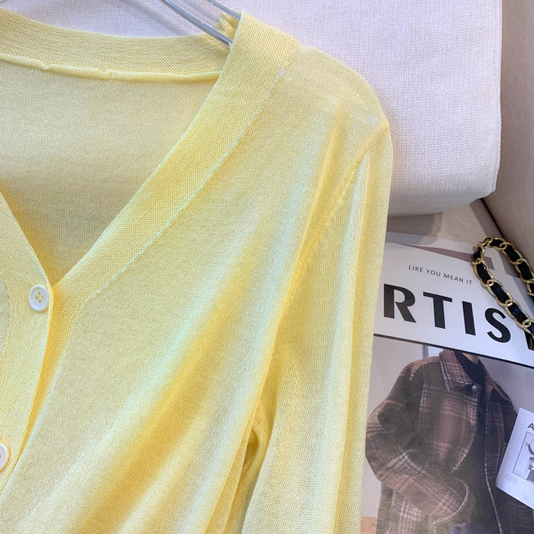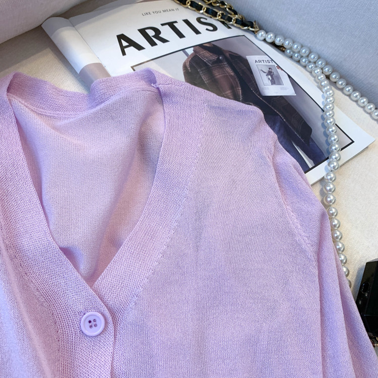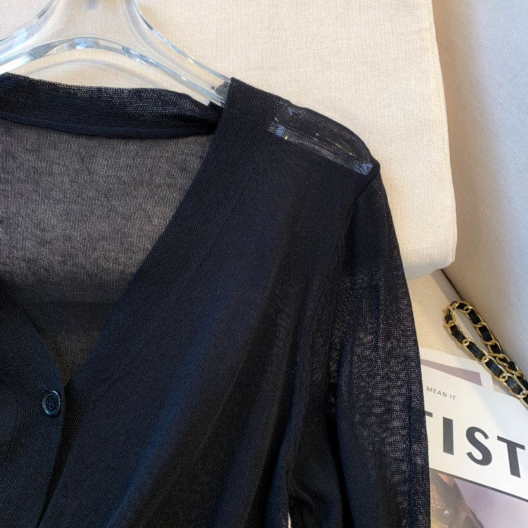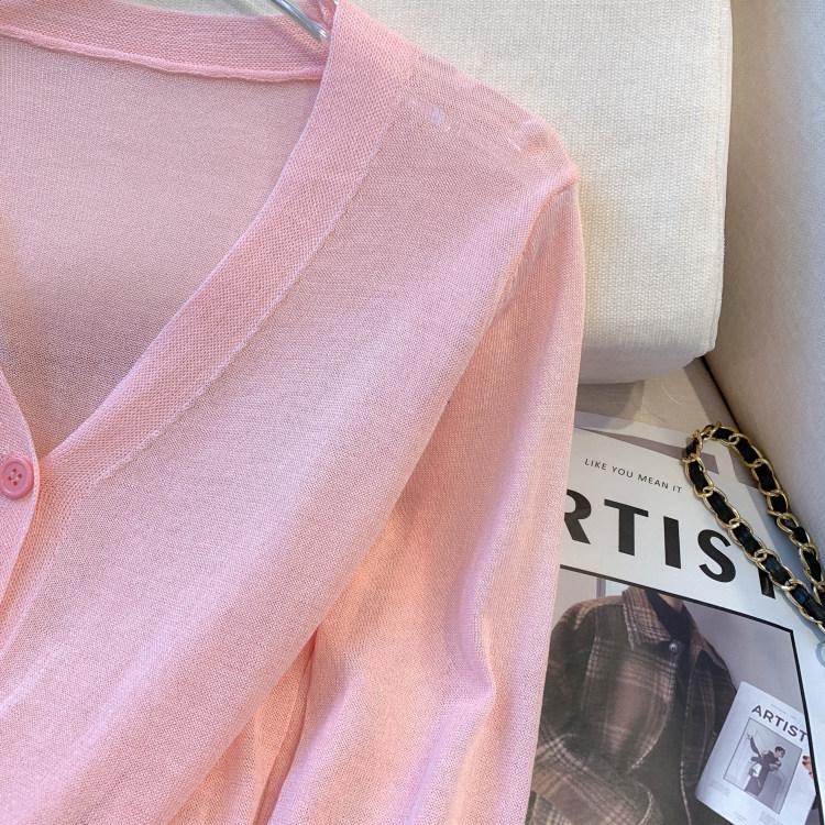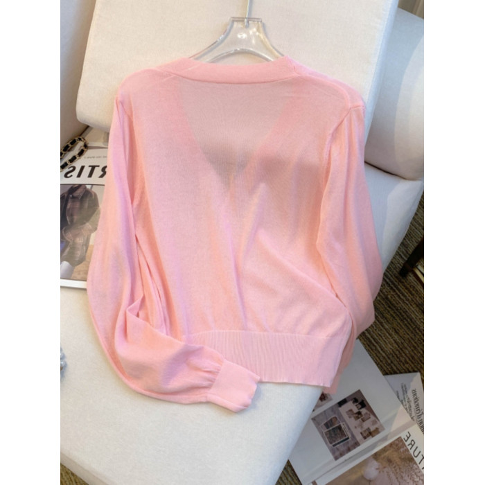 專櫃商場撤廻大牌女裝~冰絲防曬針織開衫女春夏薄款純色長袖上衣