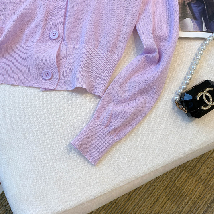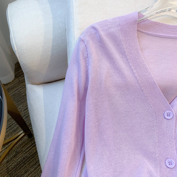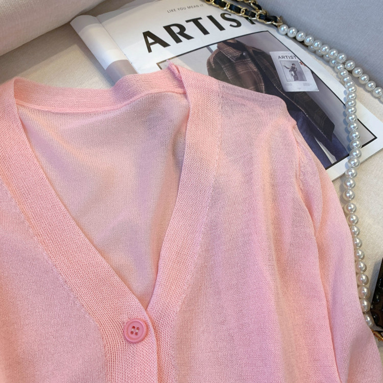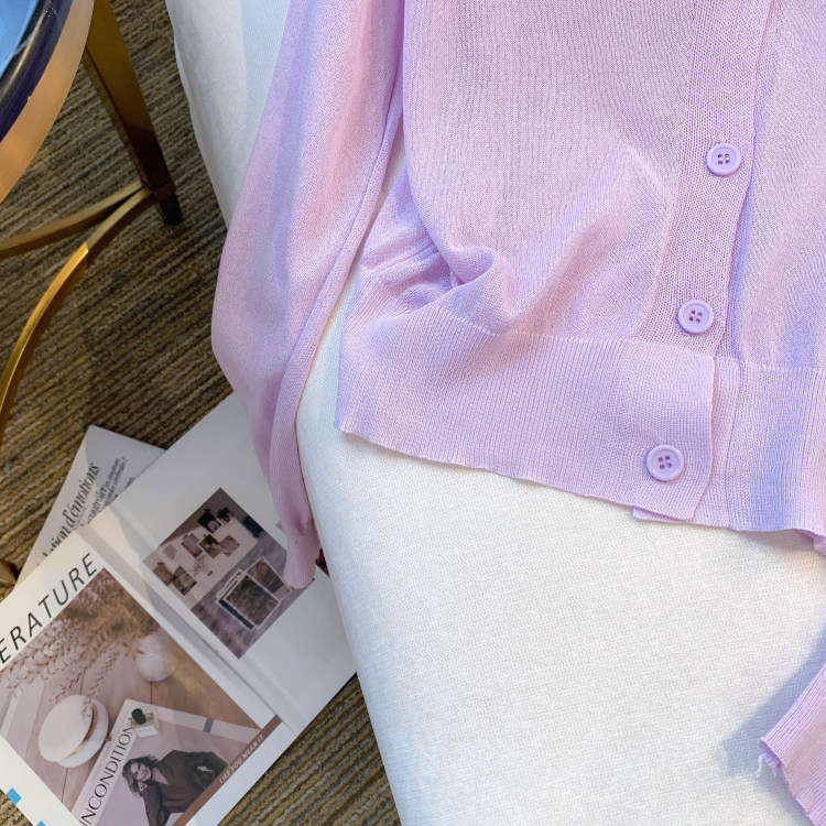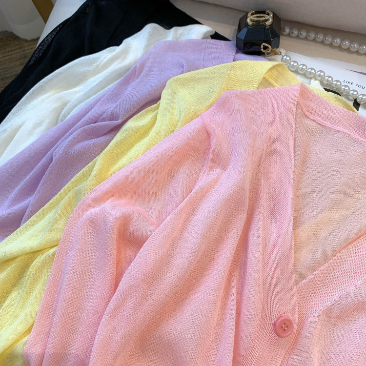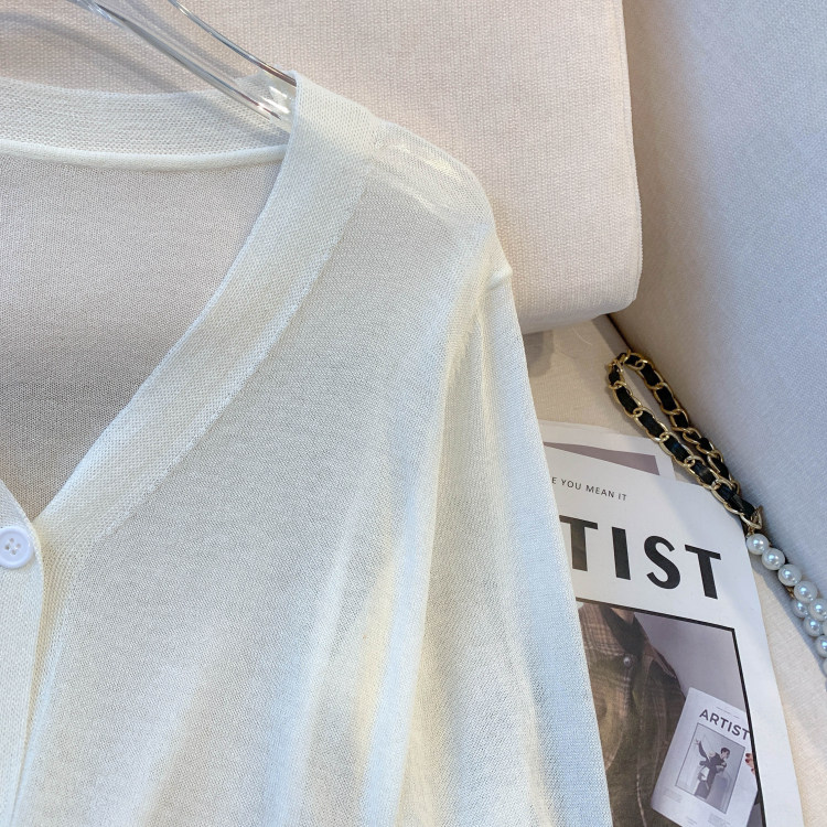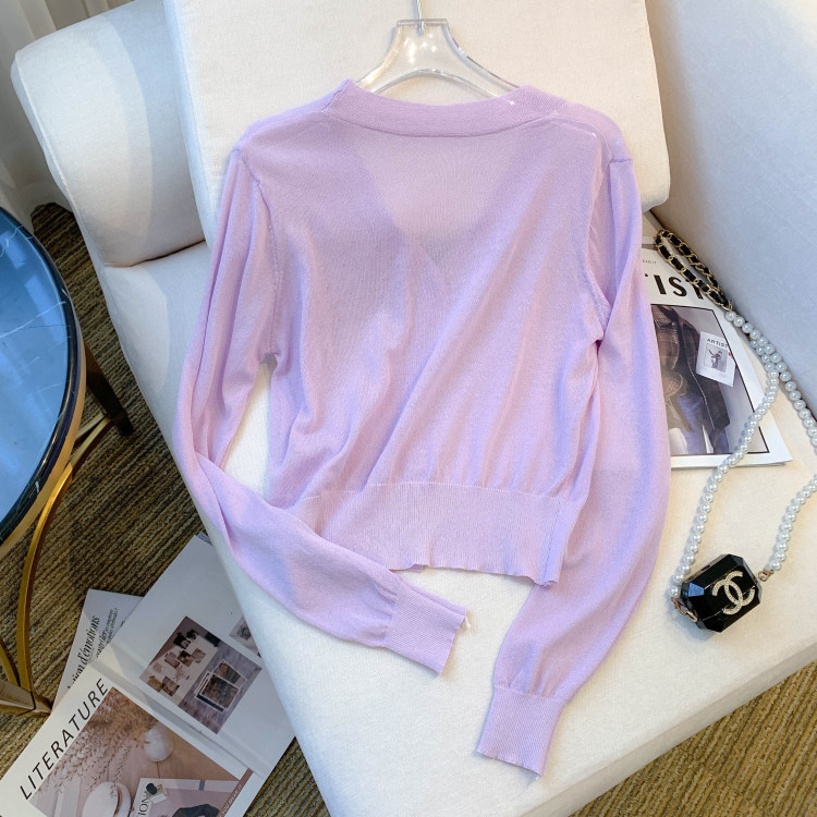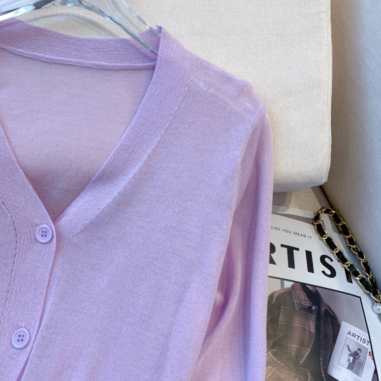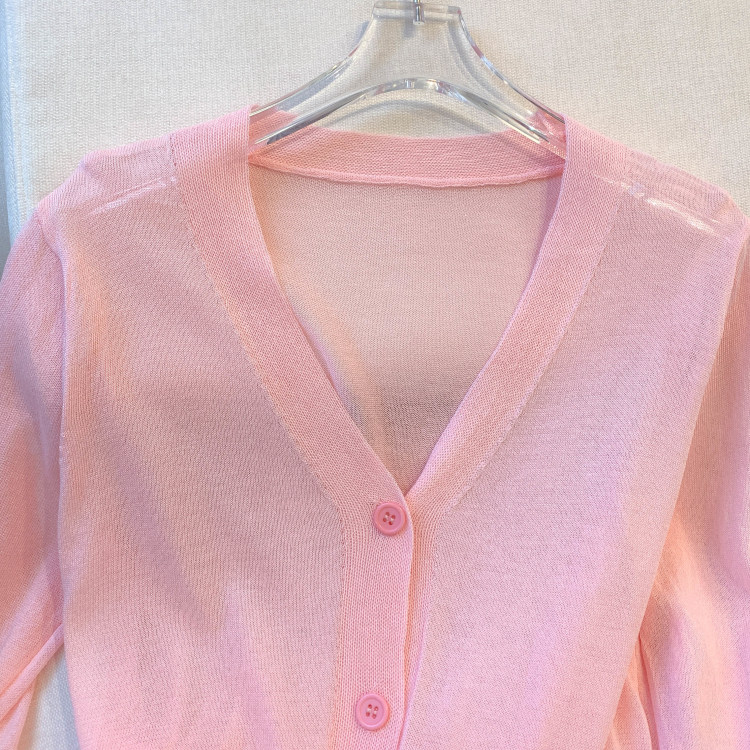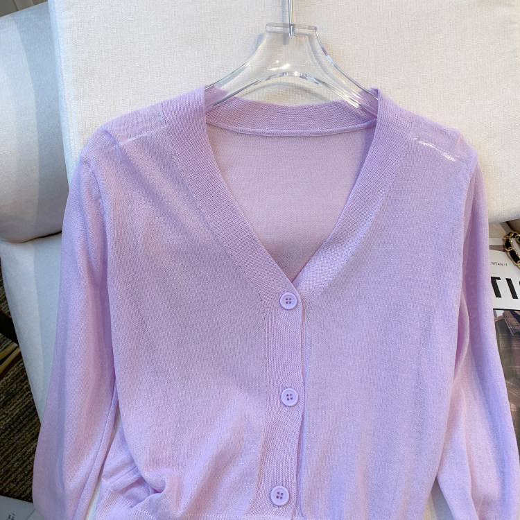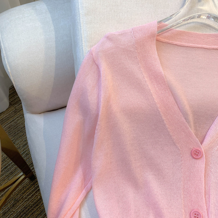 專櫃商場撤廻大牌女裝~冰絲防曬針織開衫女春夏薄款純色長袖上衣