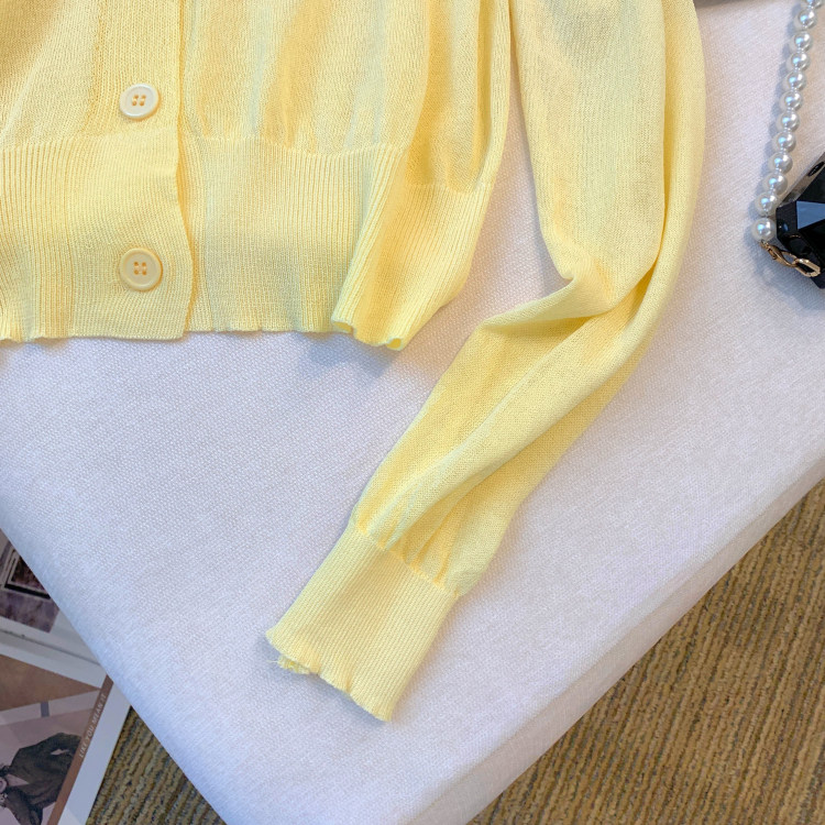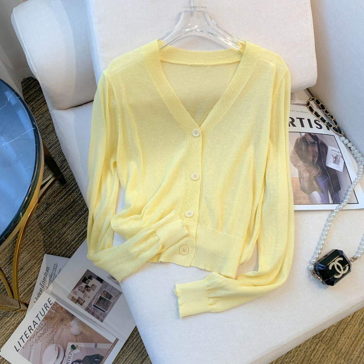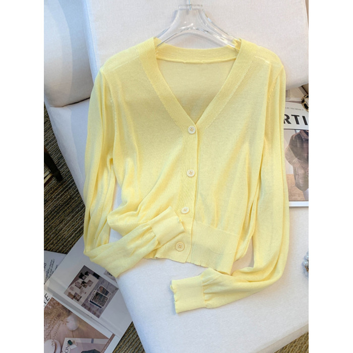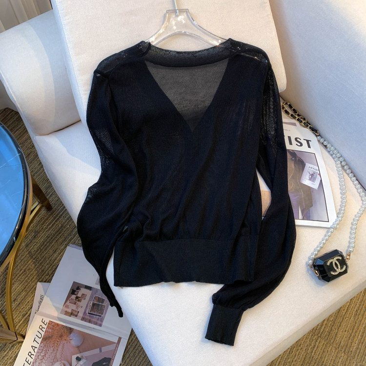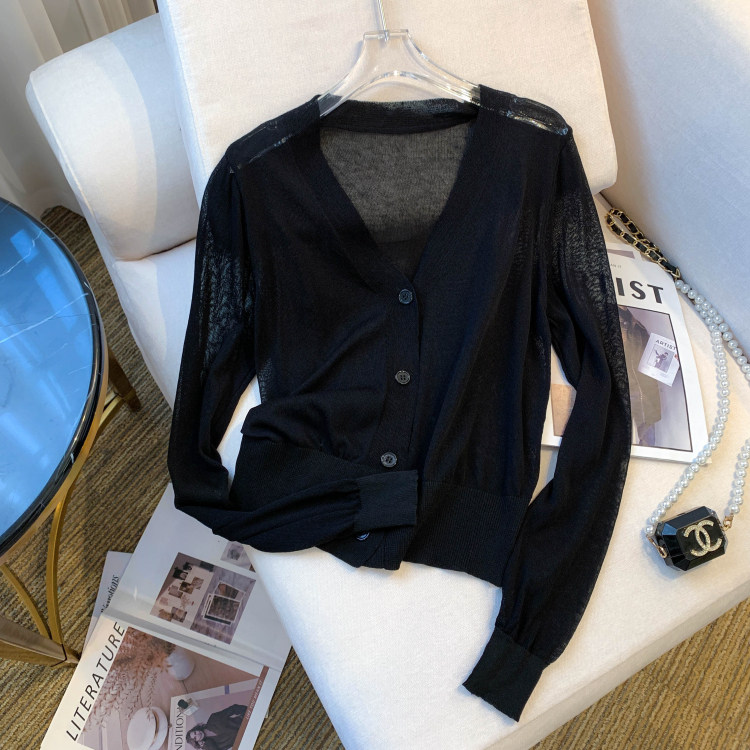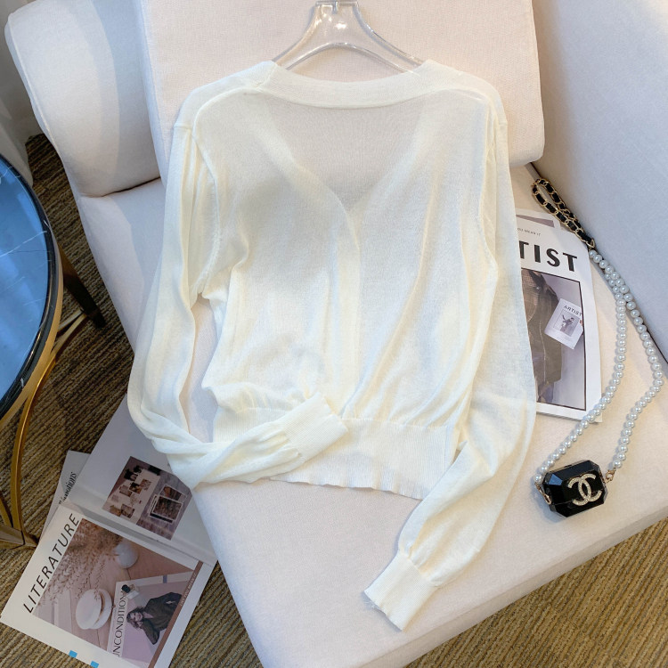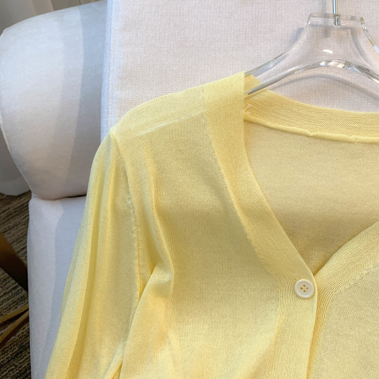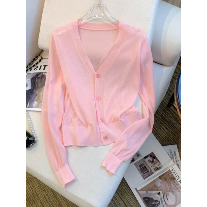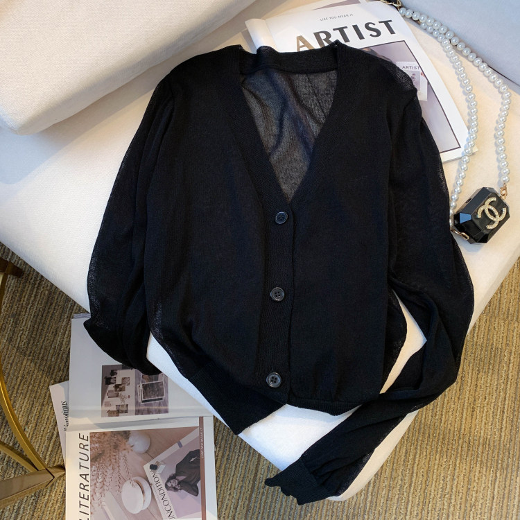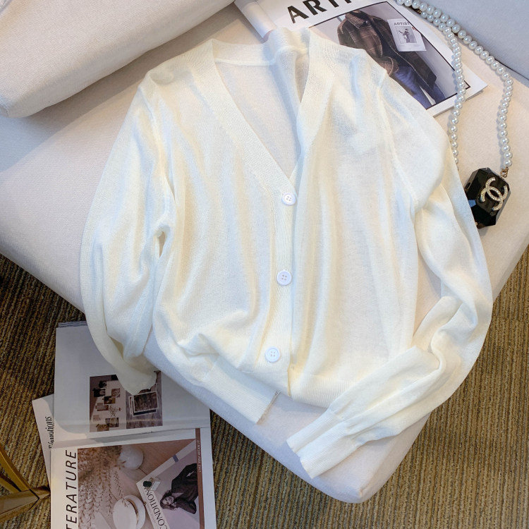 專櫃商場撤廻大牌女裝~冰絲防曬針織開衫女春夏薄款純色長袖上衣
