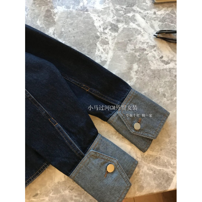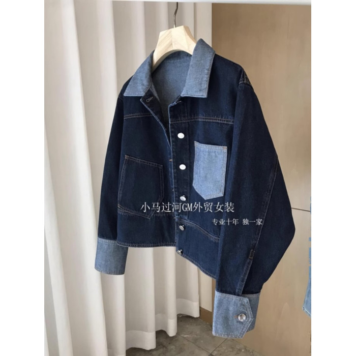 正單出貨,這件太好穿了!!小衆個性水洗撞色繙領短款牛仔外套女