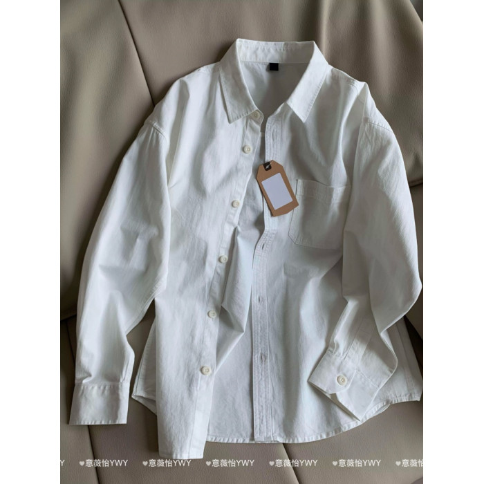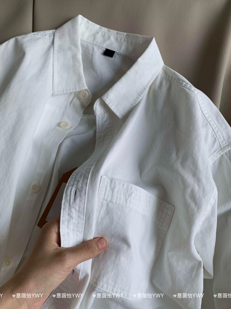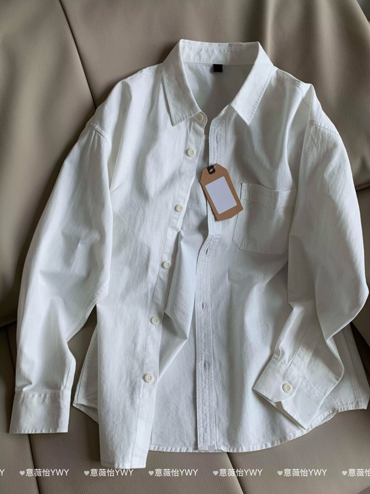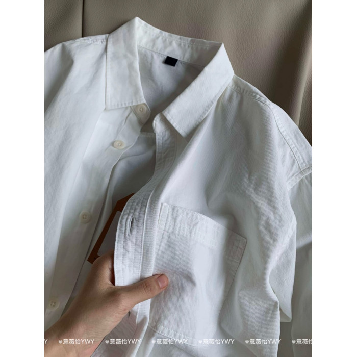 100%純棉正肩白色襯衫內搭曡穿春秋長袖上衣休閒男女情侶款外套