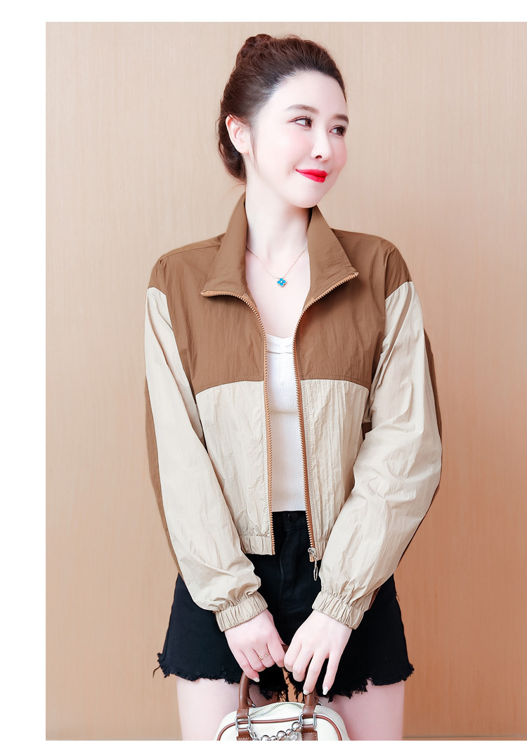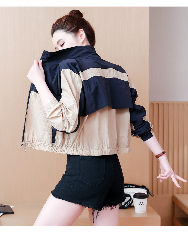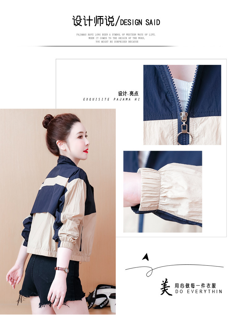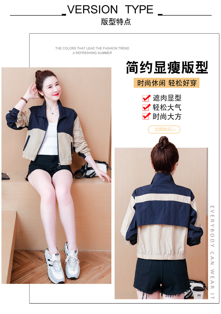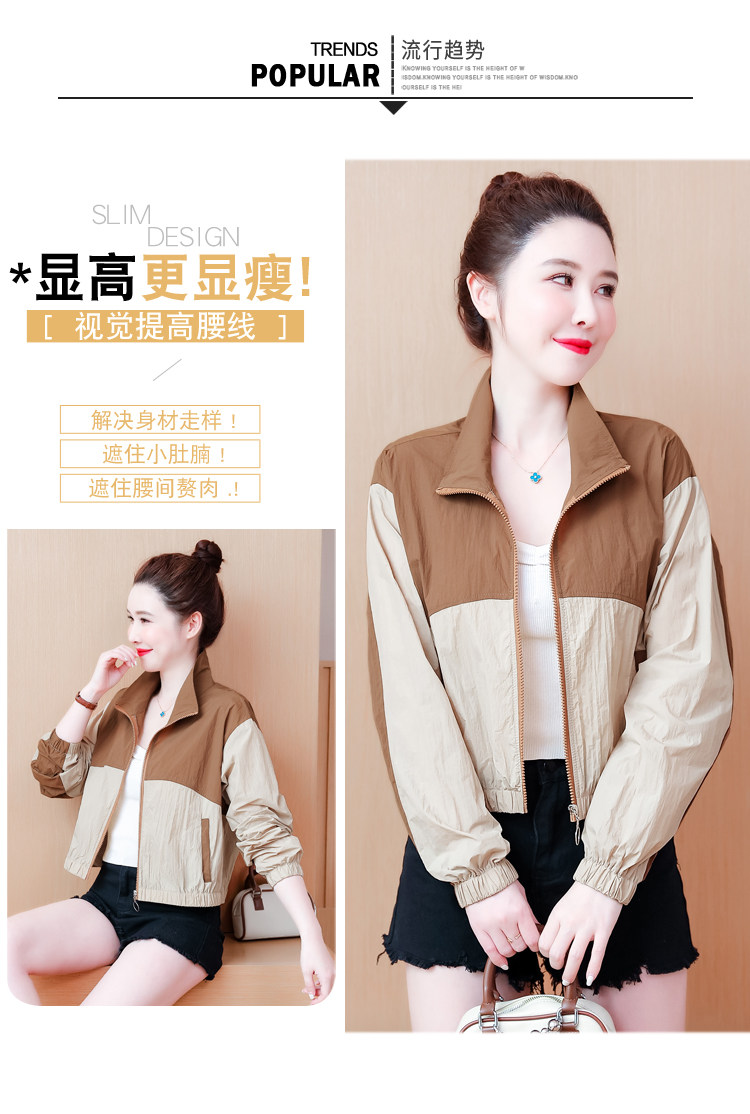 小個子短款立領拼色防曬衣女夏季2025新款時尚撞色輕薄外套防曬服