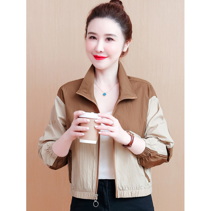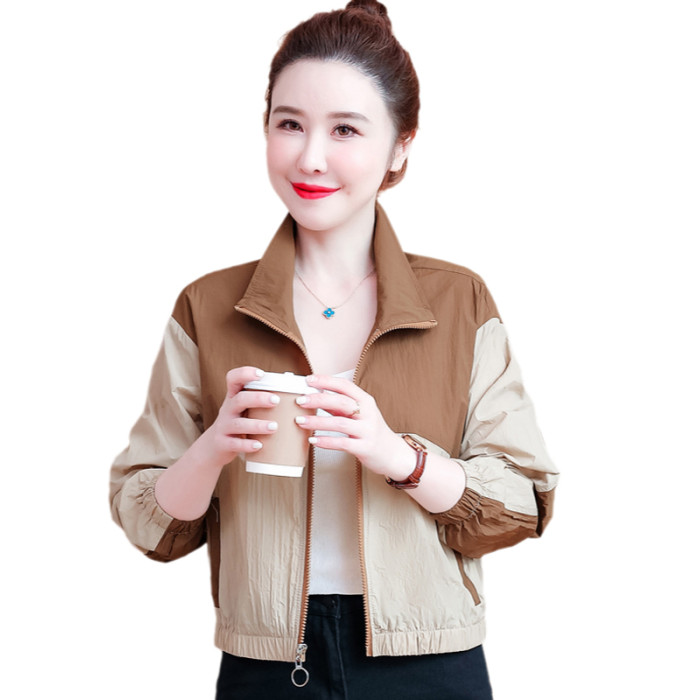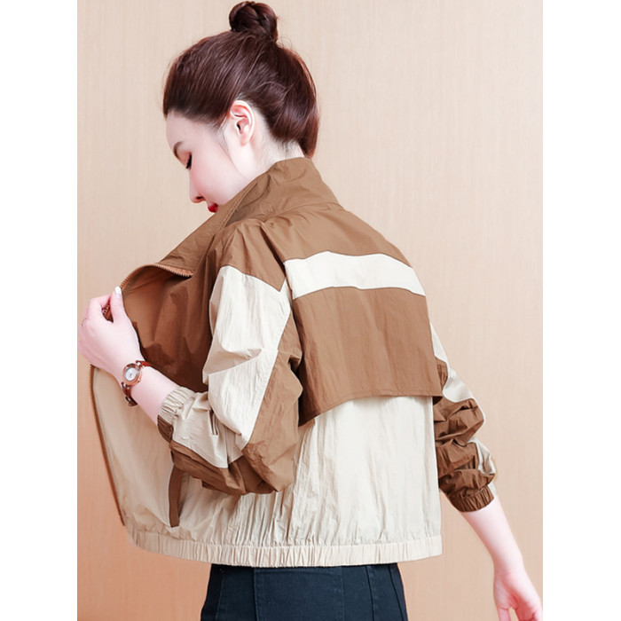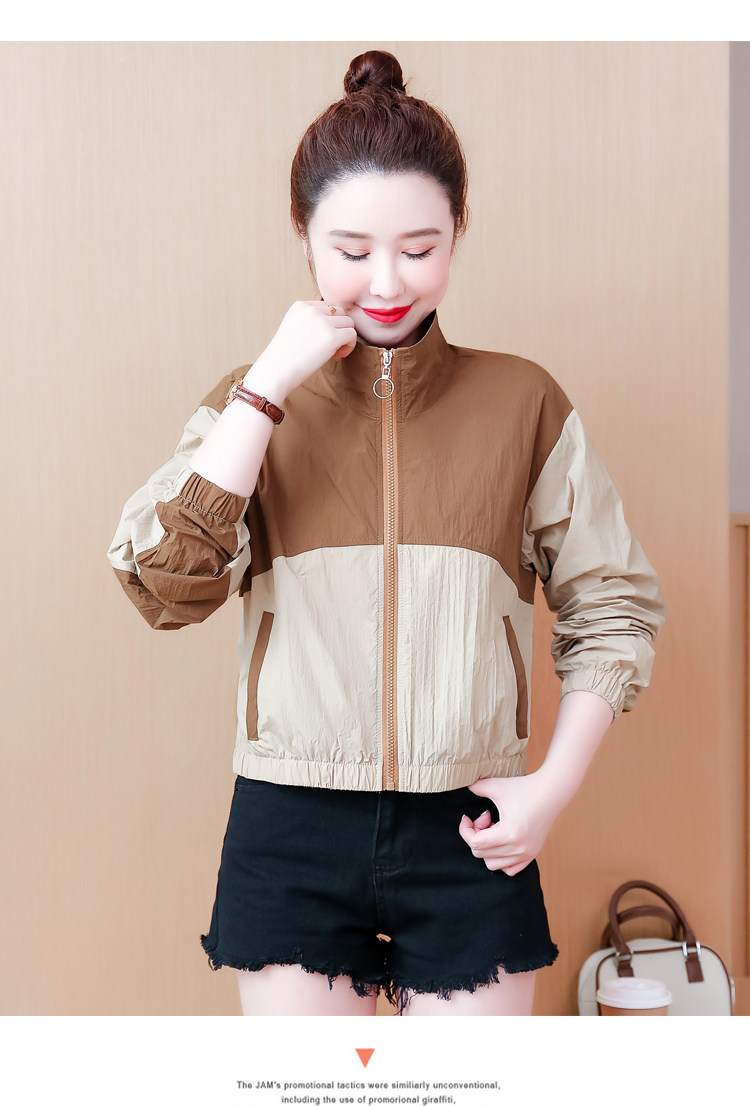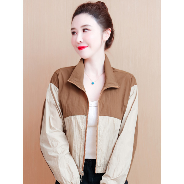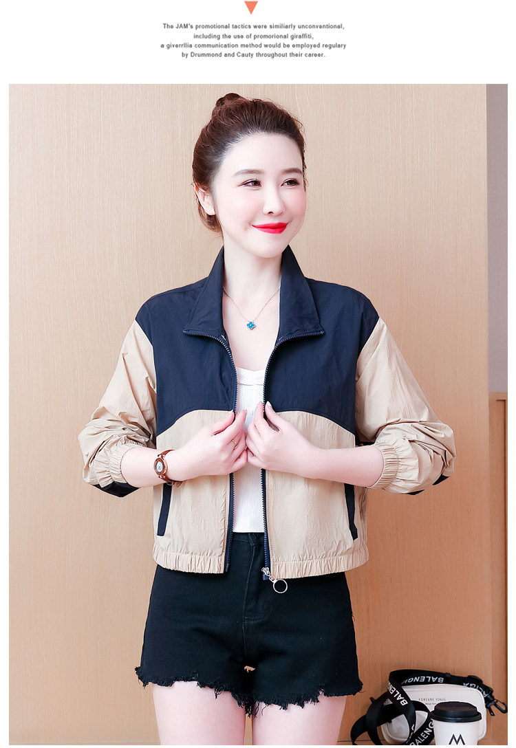 小個子短款立領拼色防曬衣女夏季2025新款時尚撞色輕薄外套防曬服