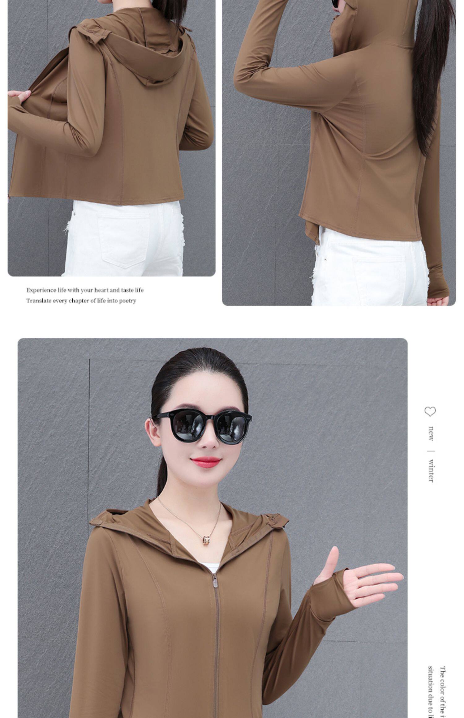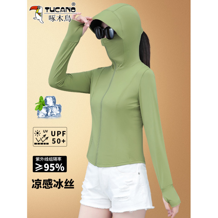 啄木鳥黑色冰絲防曬衣修身女款外套2025新款夏季upf50+輕薄防曬服