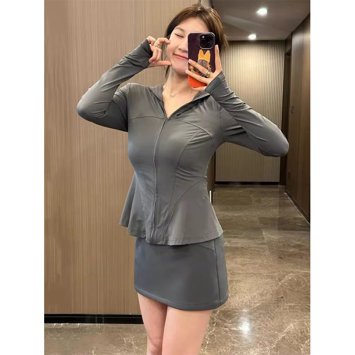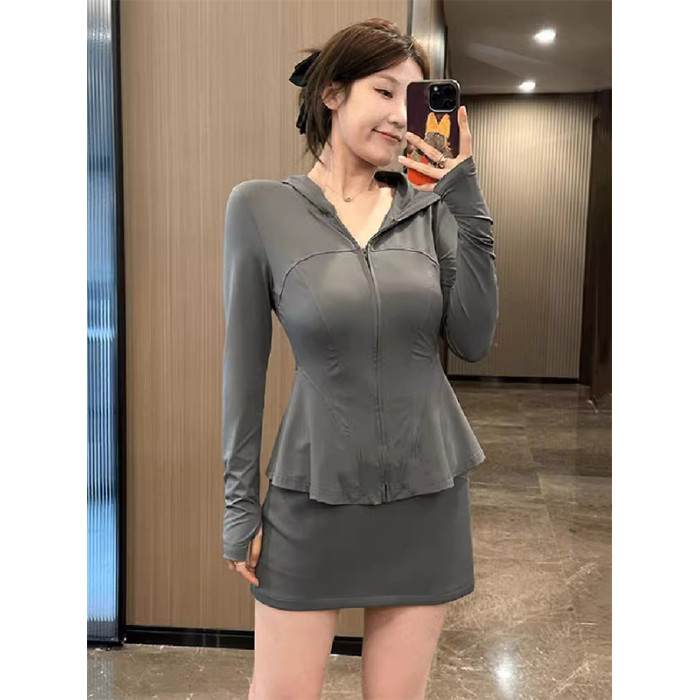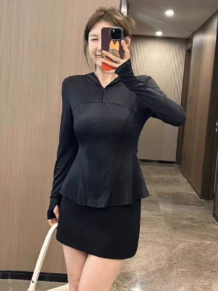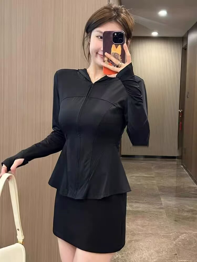 大碼夏季防紫外線連帽防曬服女胖mm修身收腰瑜珈外套輕薄冰絲上衣
