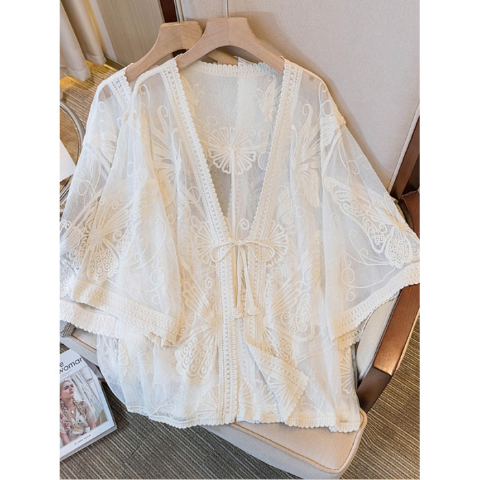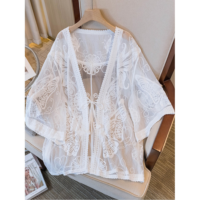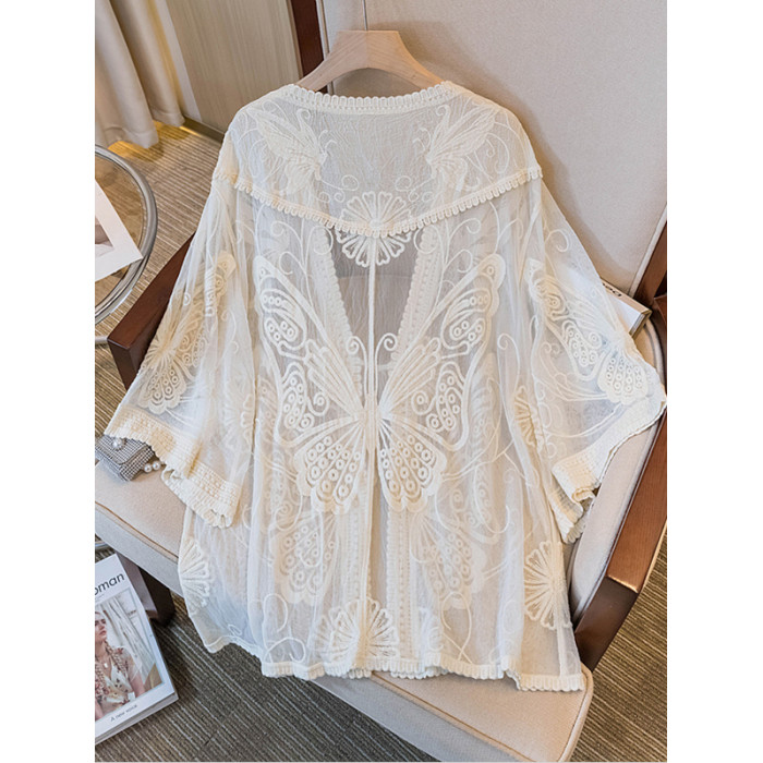 氣質獨特七分袖防曬開衫女2025新款夏季大碼胖mm短袖外搭薄款上衣