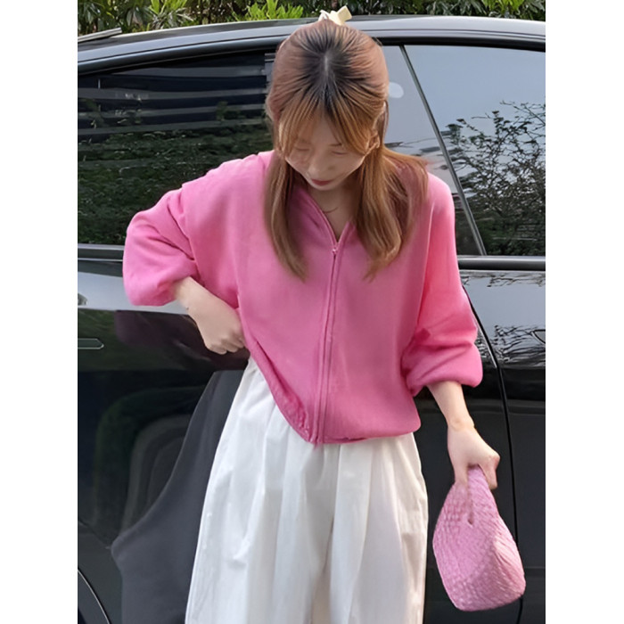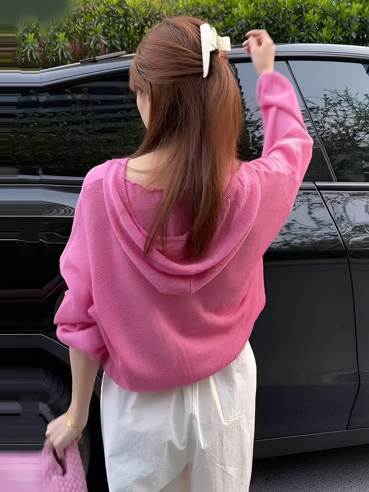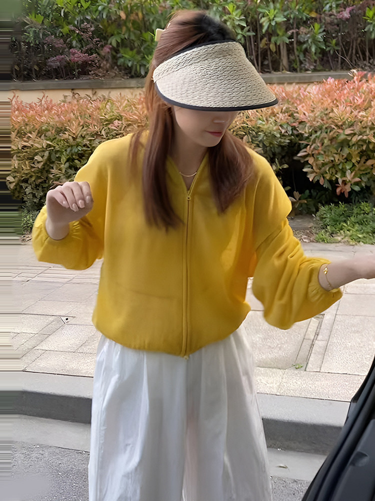 復古黃色連帽薄款長袖防曬服外套女2025新款早秋寬鬆休閒短款上衣