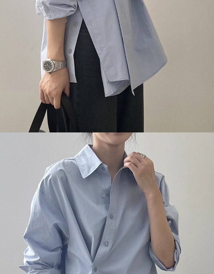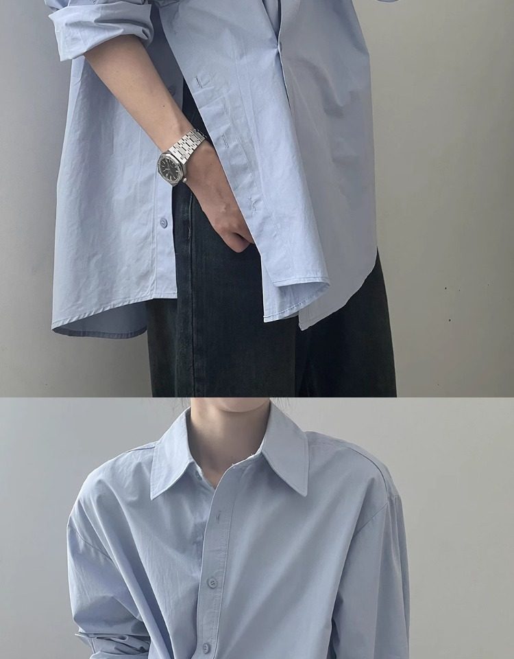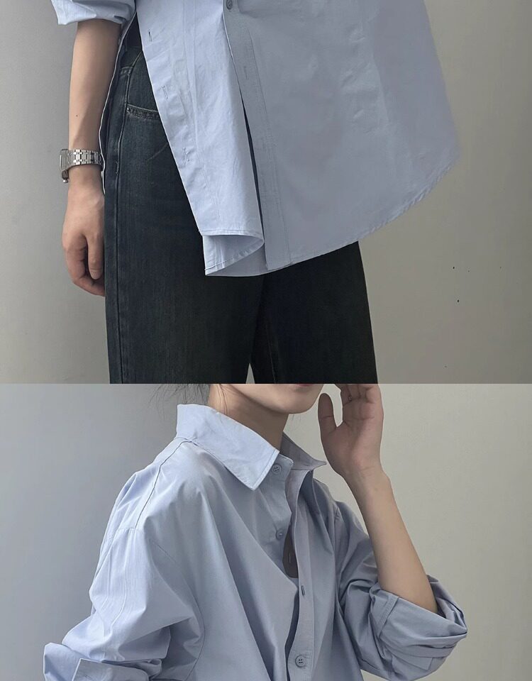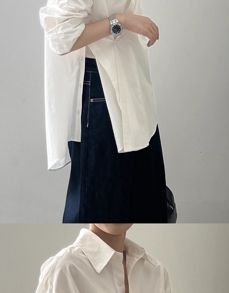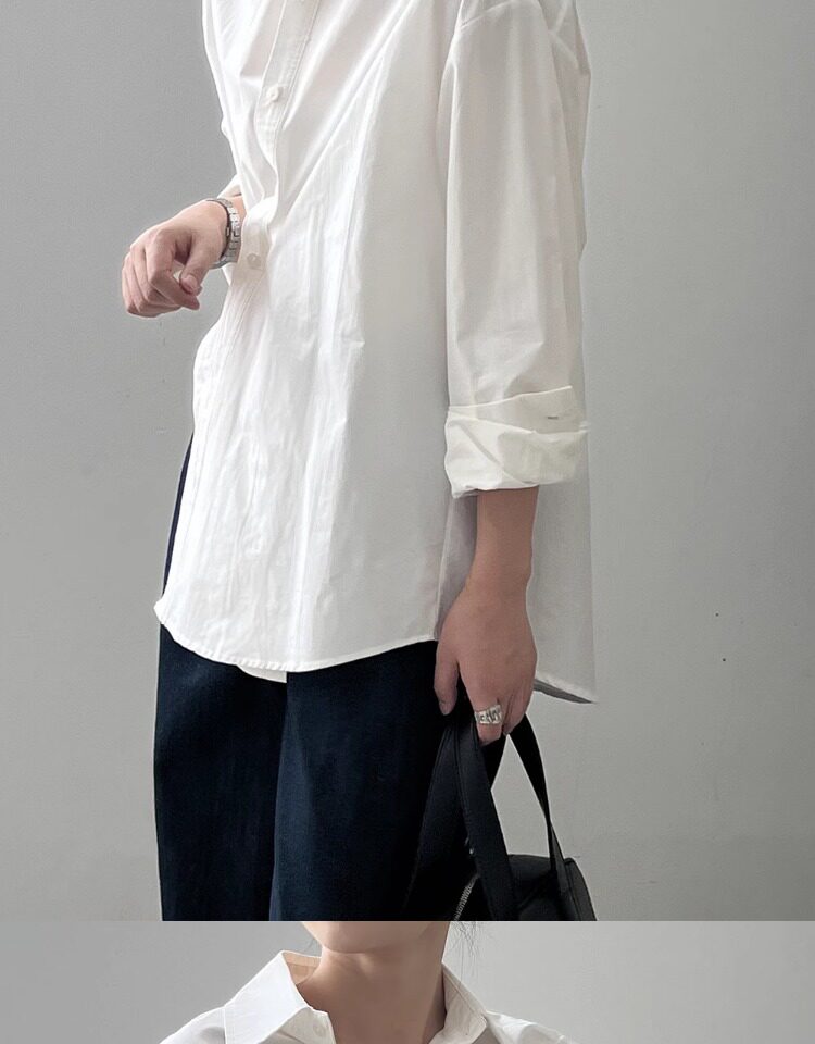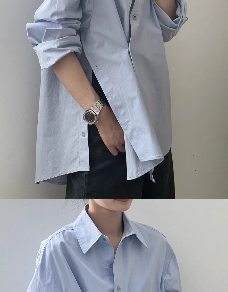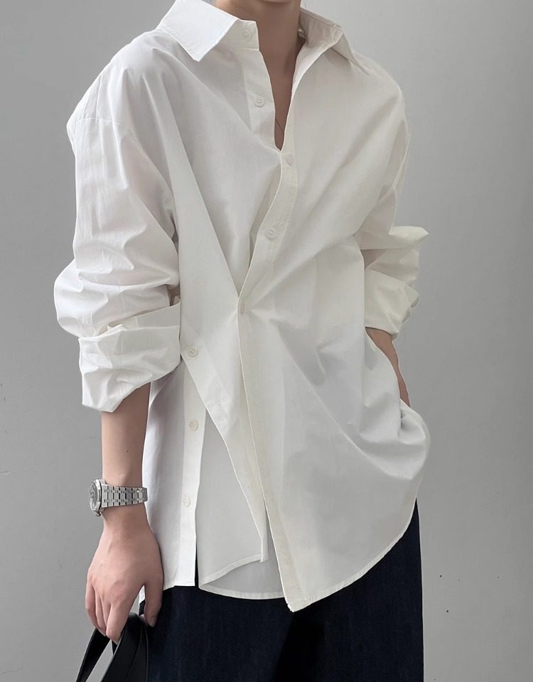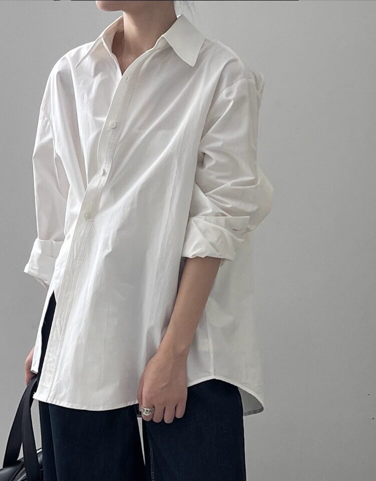 韓版高級感不規則側開叉白色長袖襯衫女寬鬆休閒簡約時尚防曬襯衣
