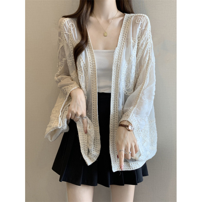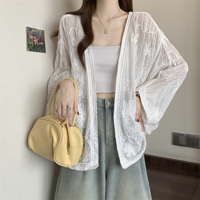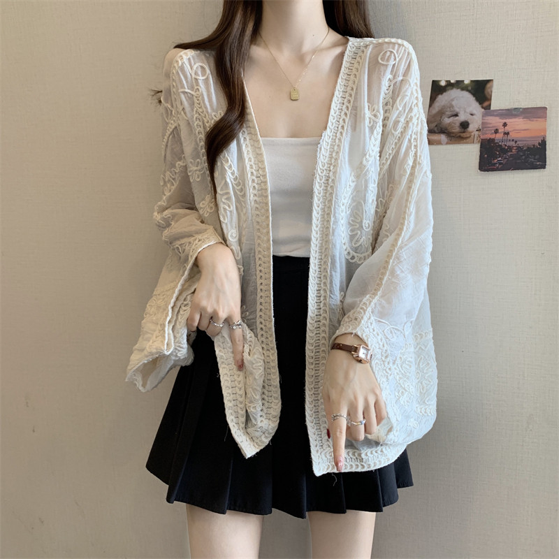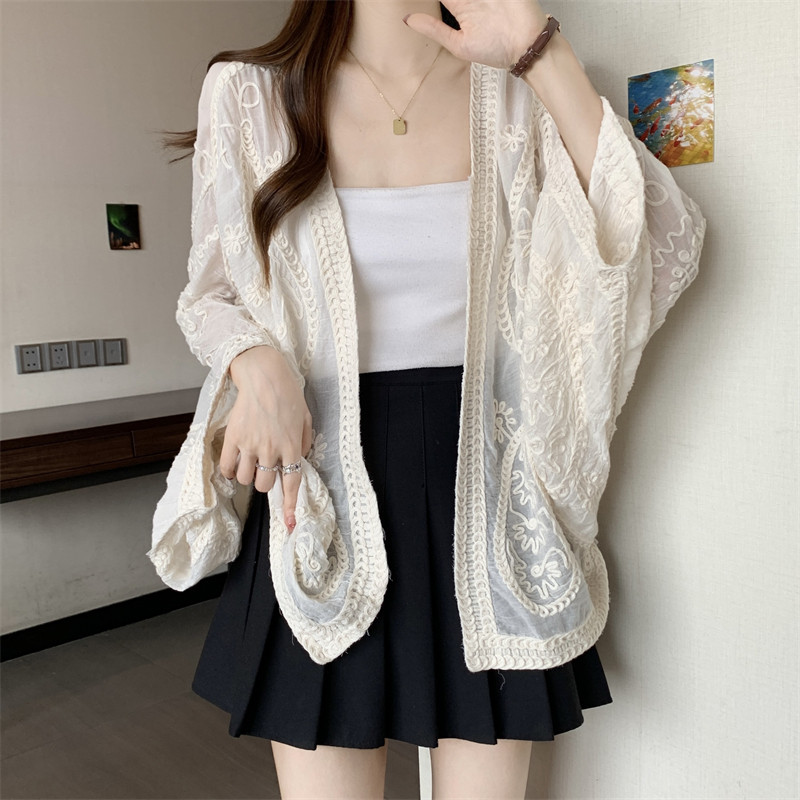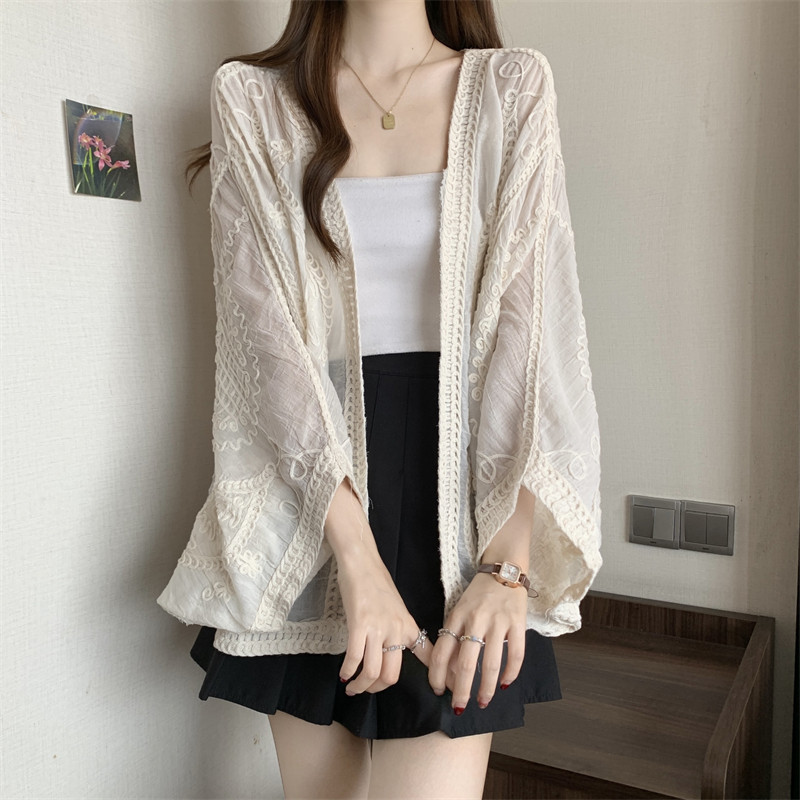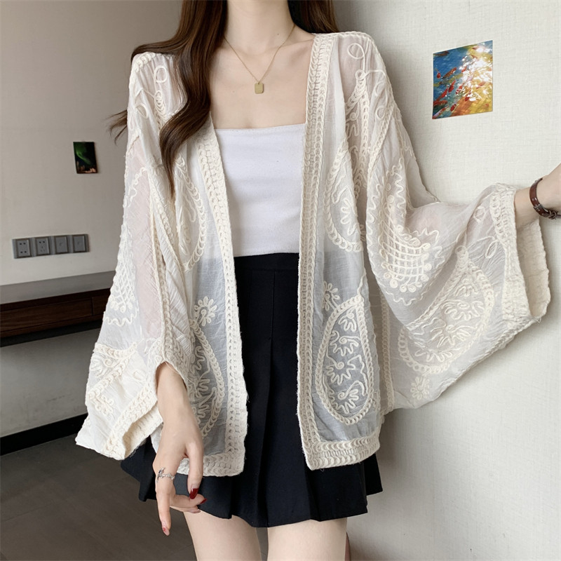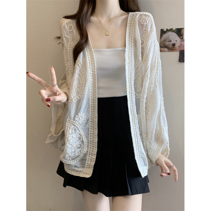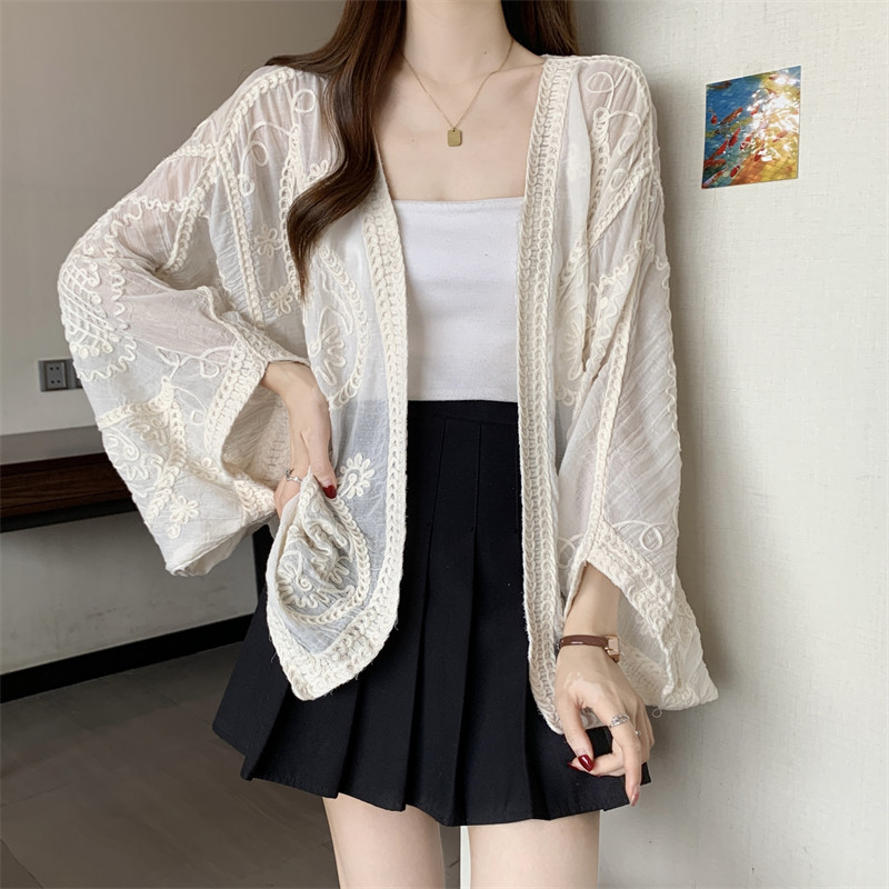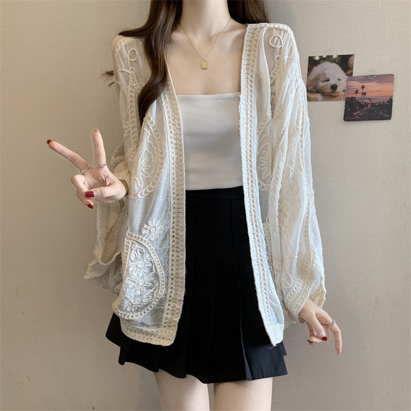 波西米亞度假風蕾絲刺綉防曬開衫外套女2025春大碼胖mm中長款上衣