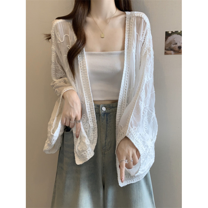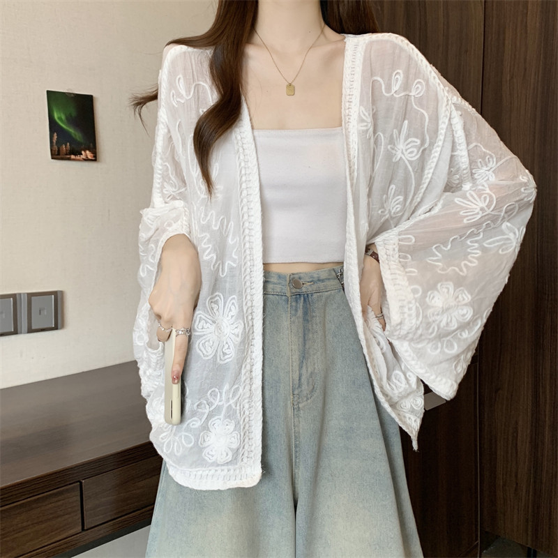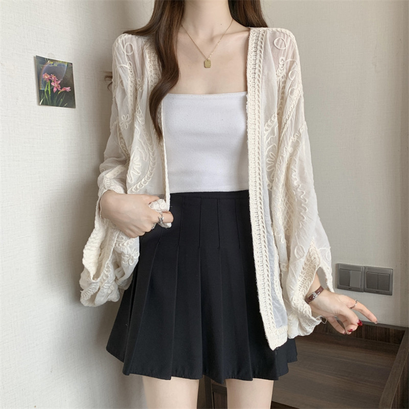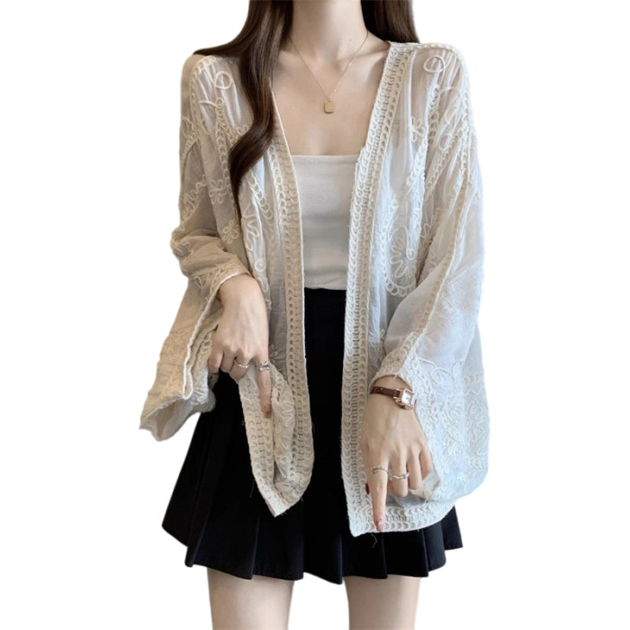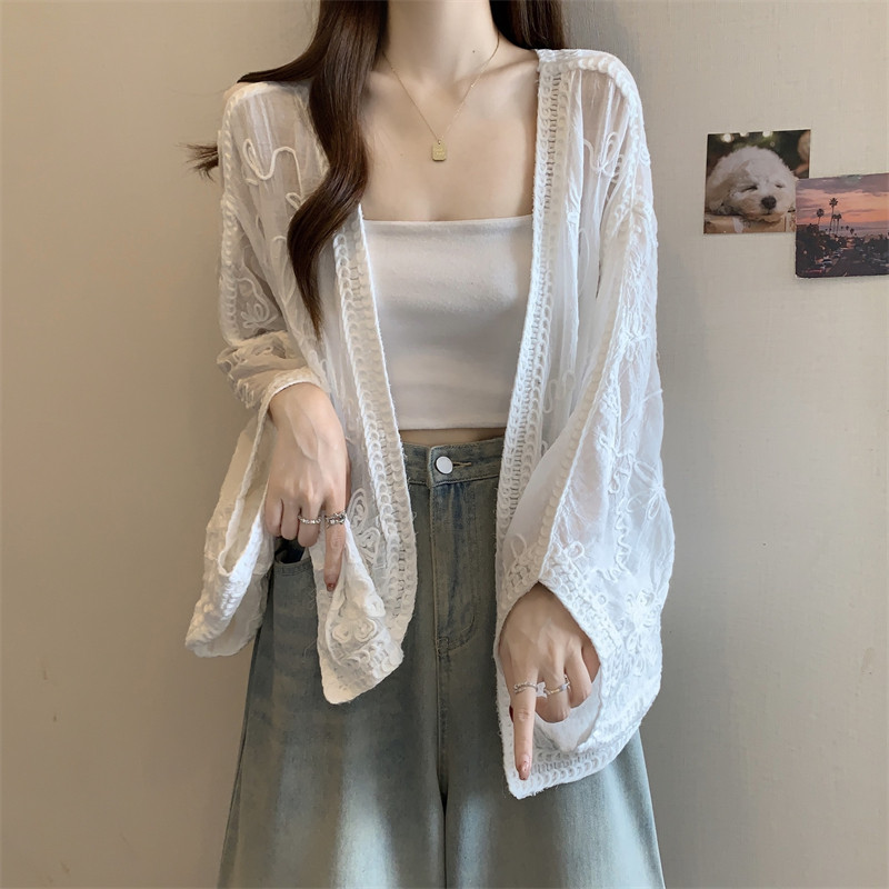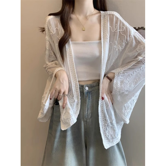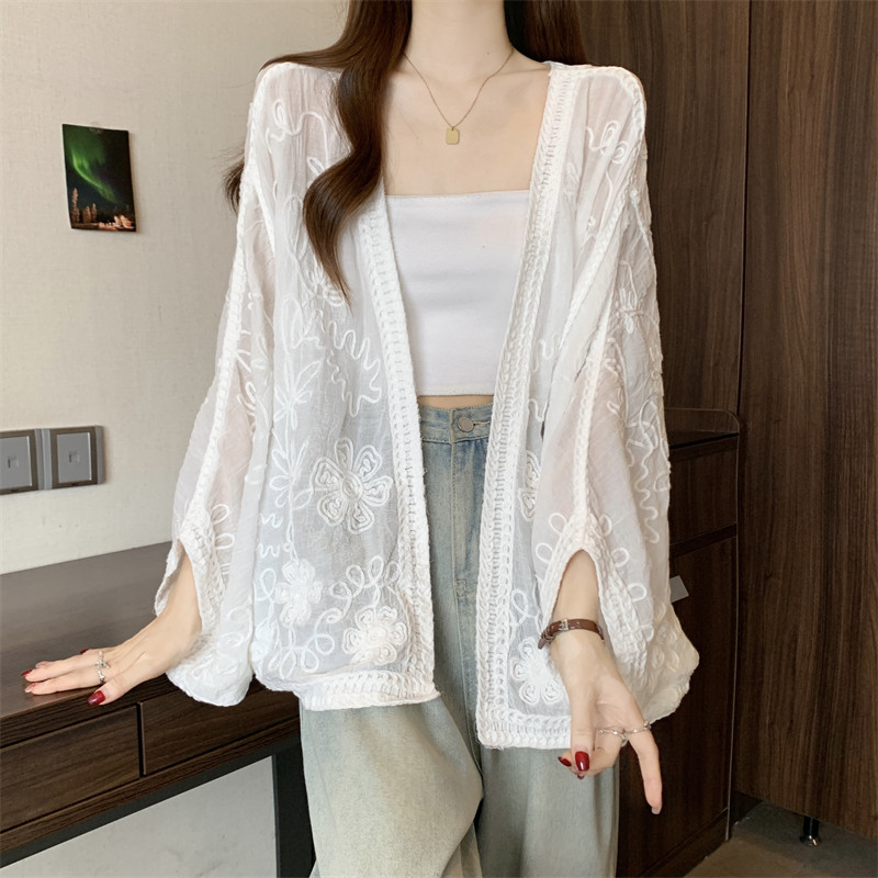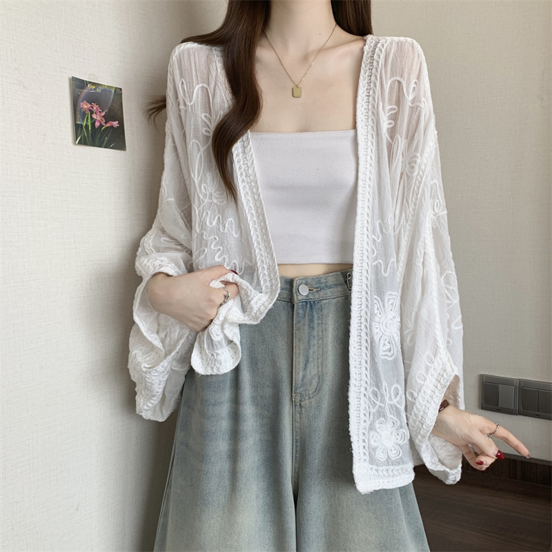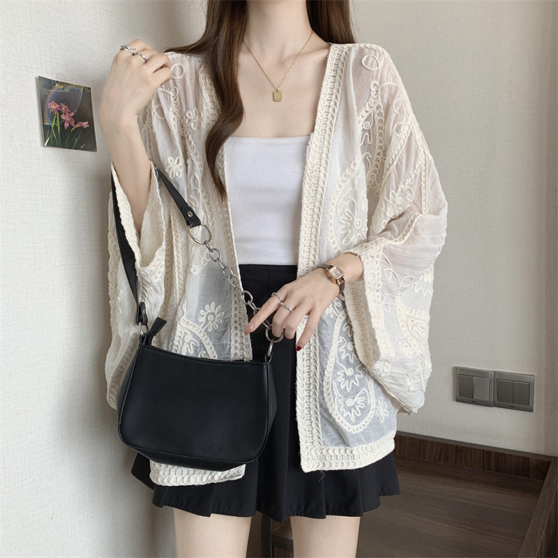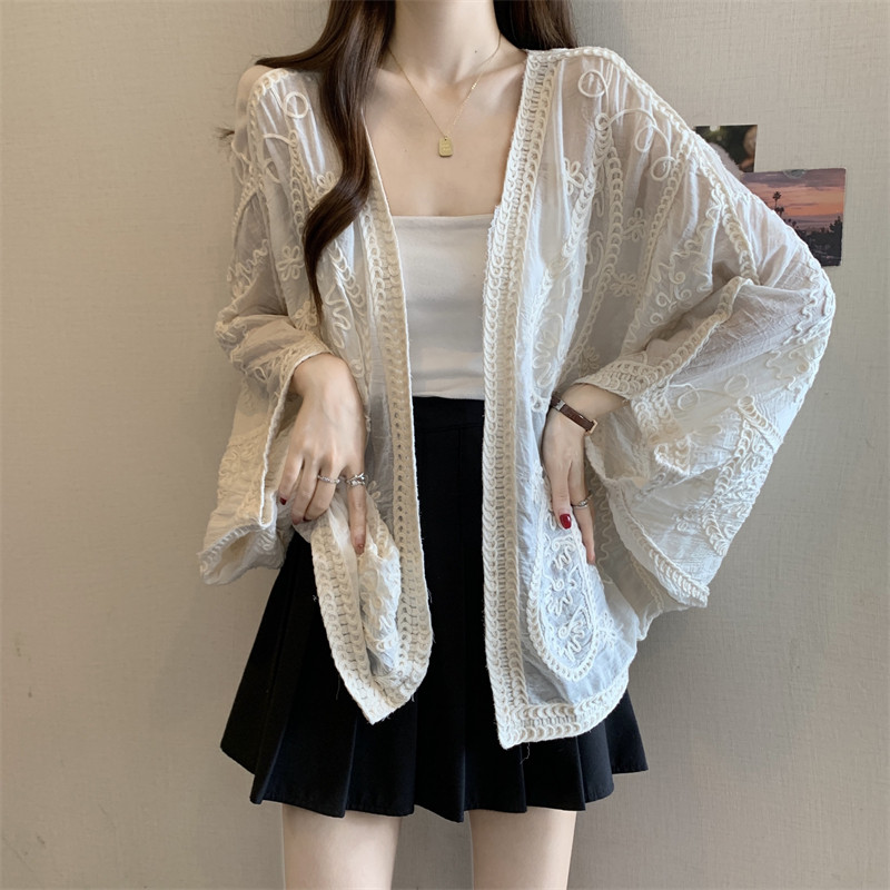 波西米亞度假風蕾絲刺綉防曬開衫外套女2025春大碼胖mm中長款上衣