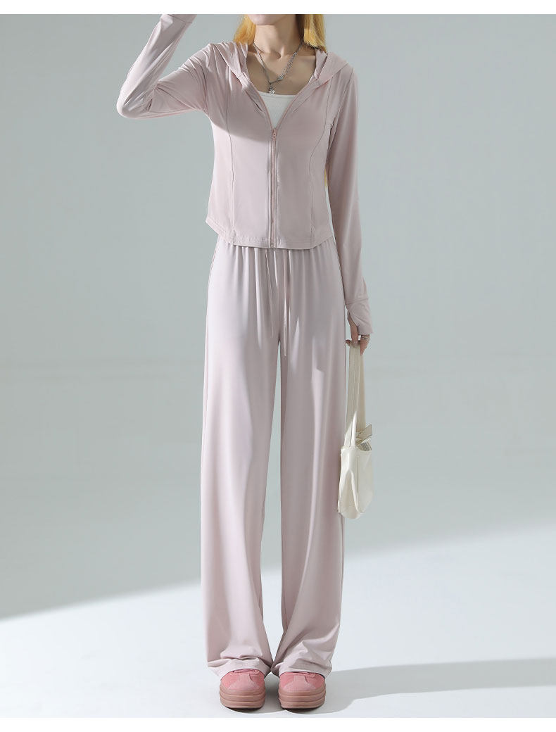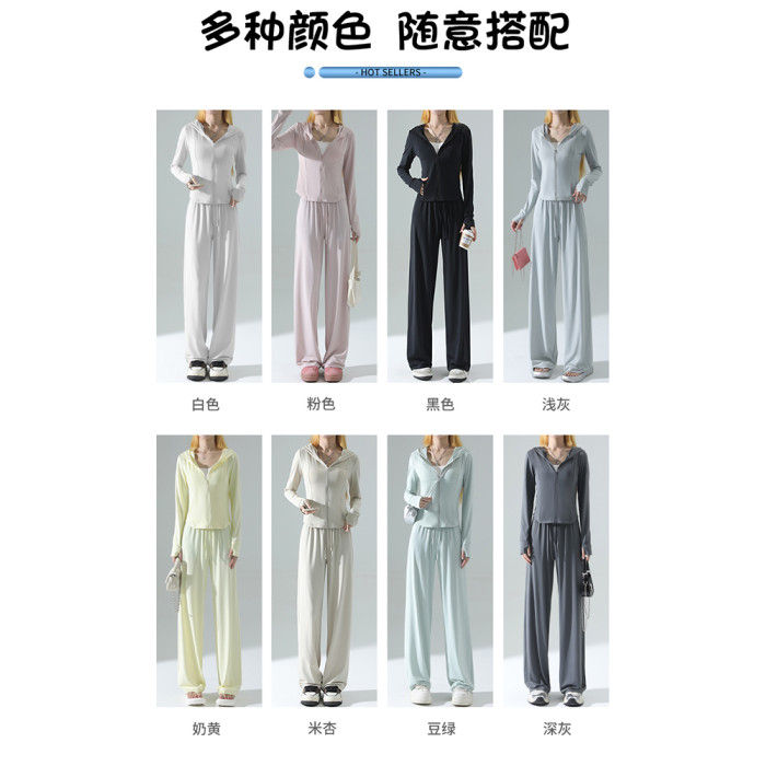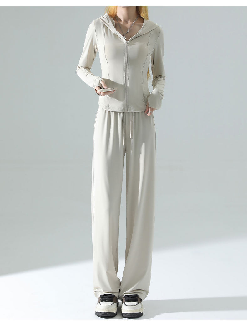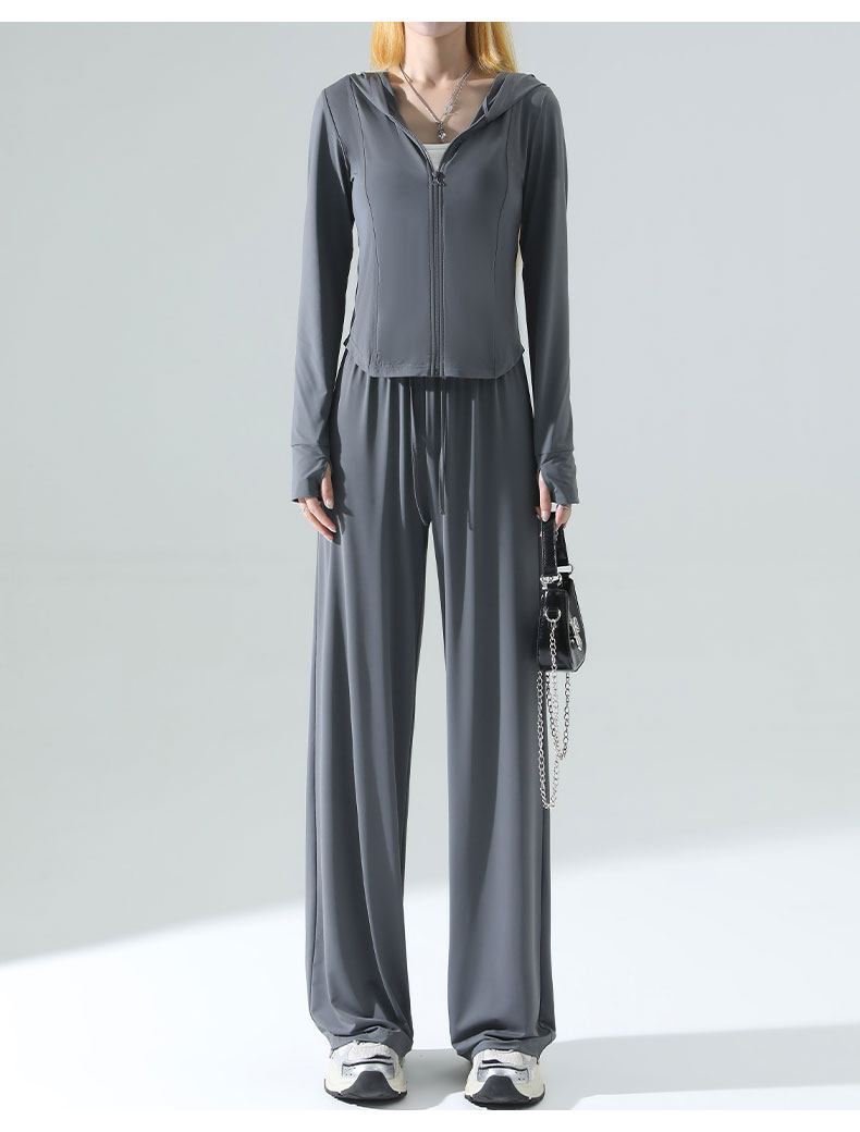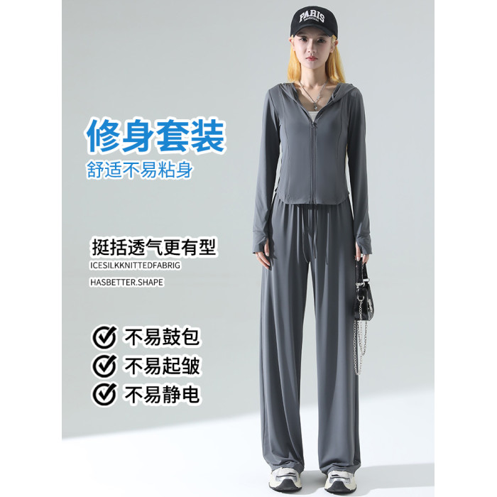 防曬衣女2026新款夏季薄款修身外套冰絲垂感濶腿褲子休閒運動套裝