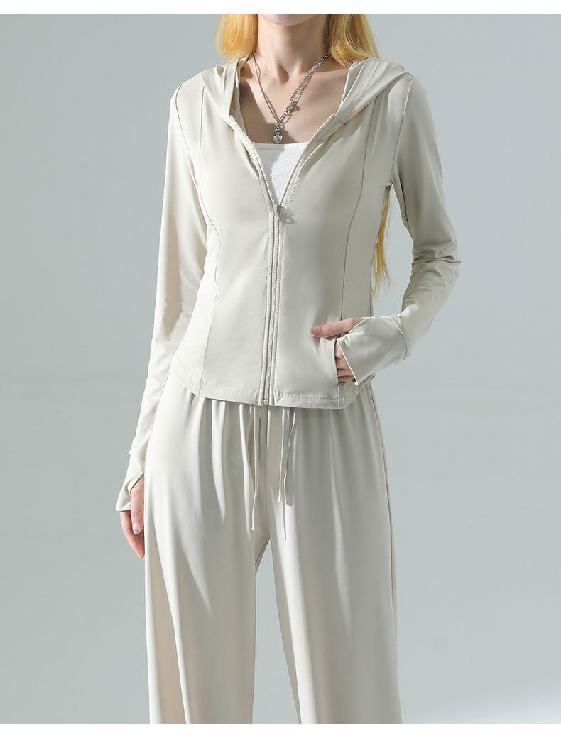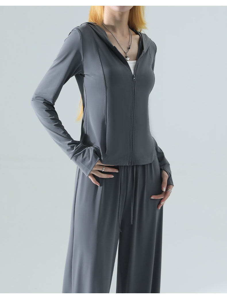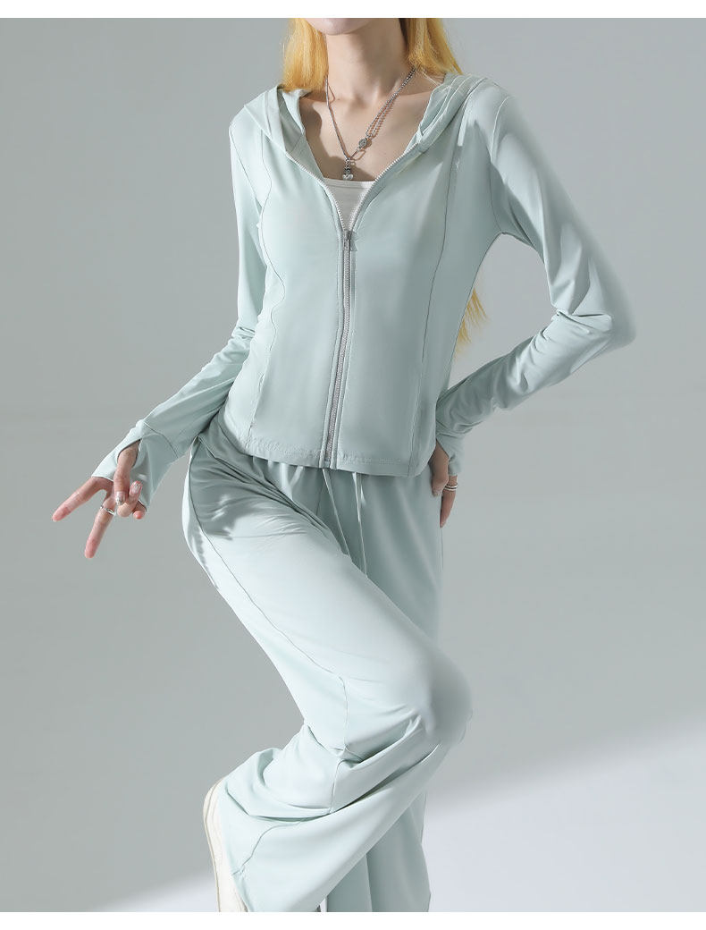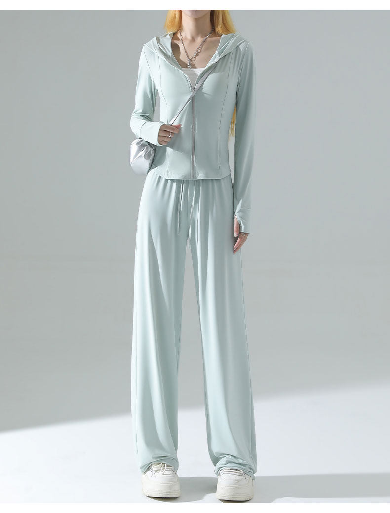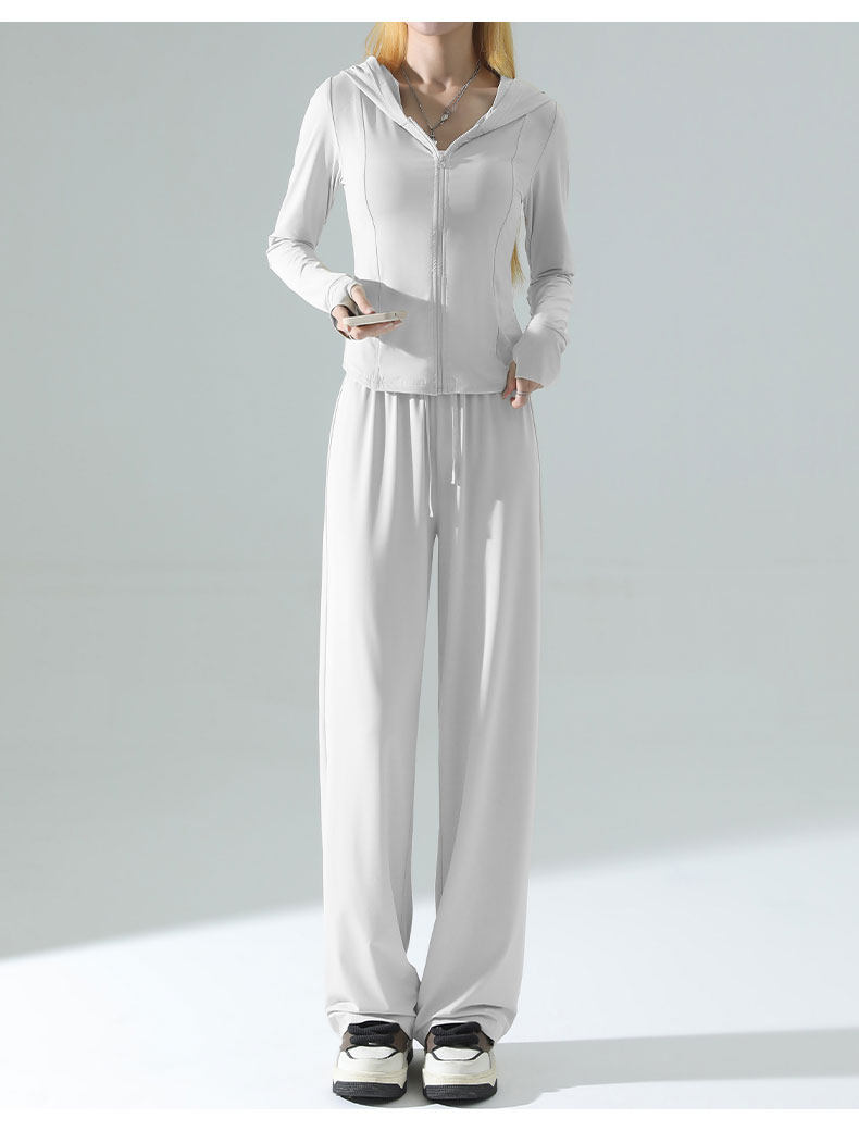 防曬衣女2026新款夏季薄款修身外套冰絲垂感濶腿褲子休閒運動套裝