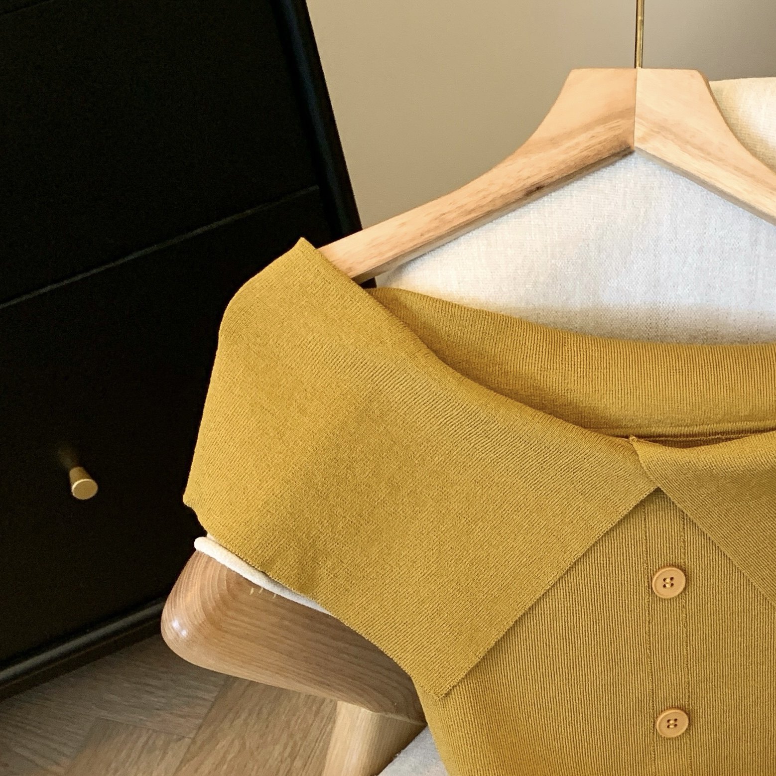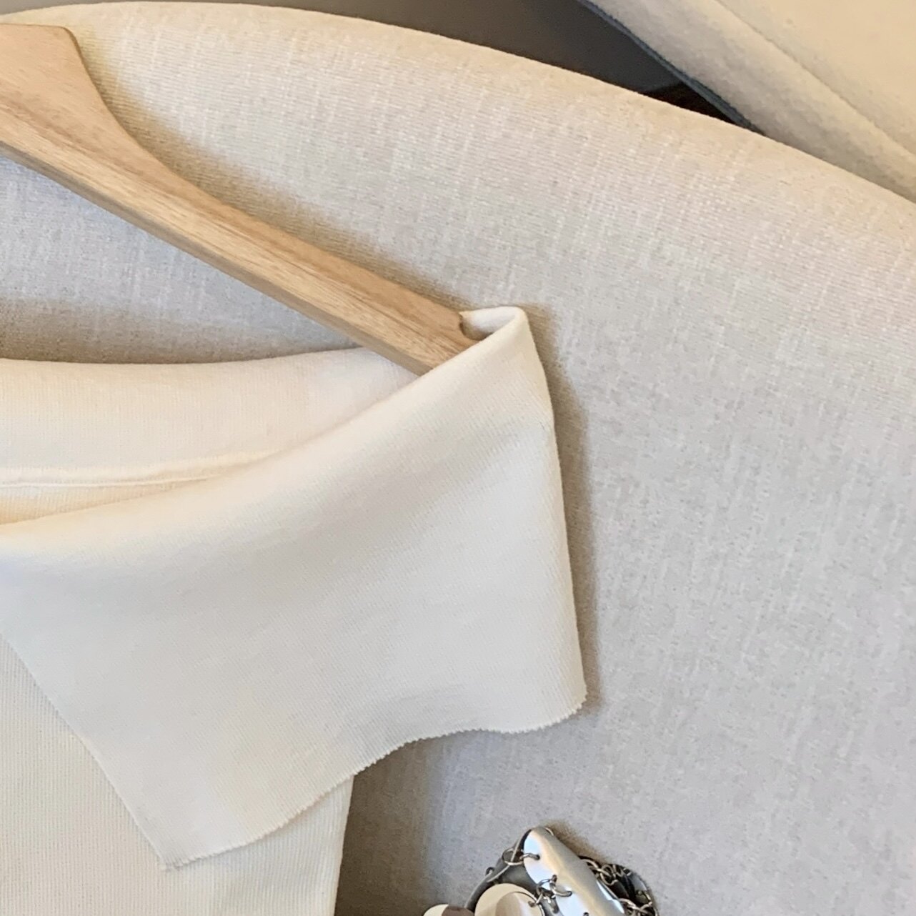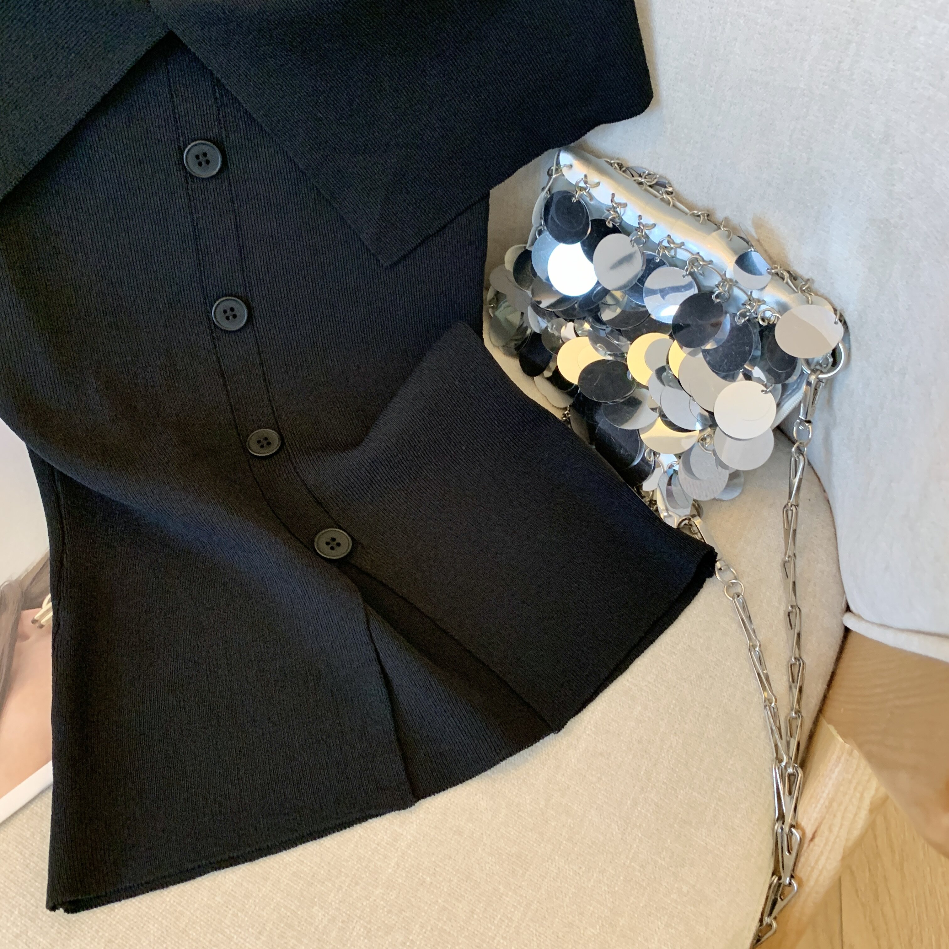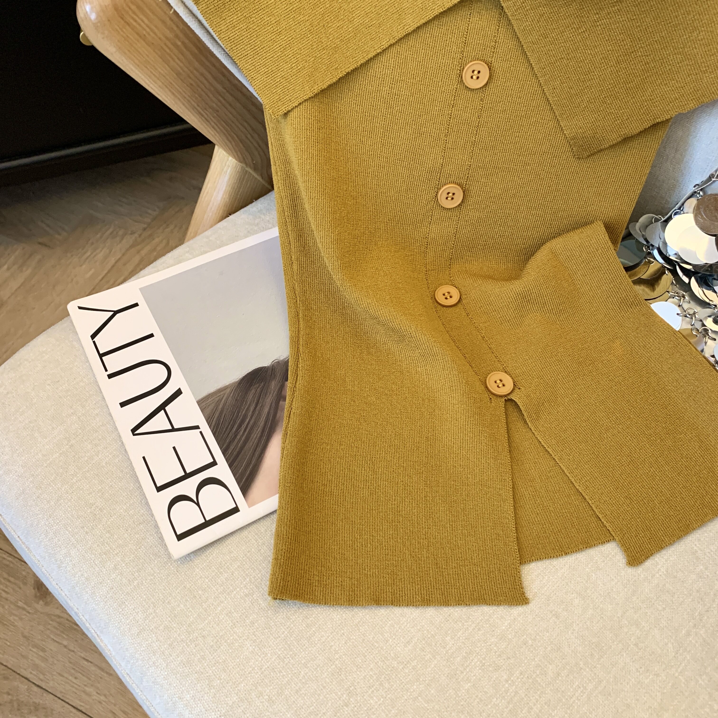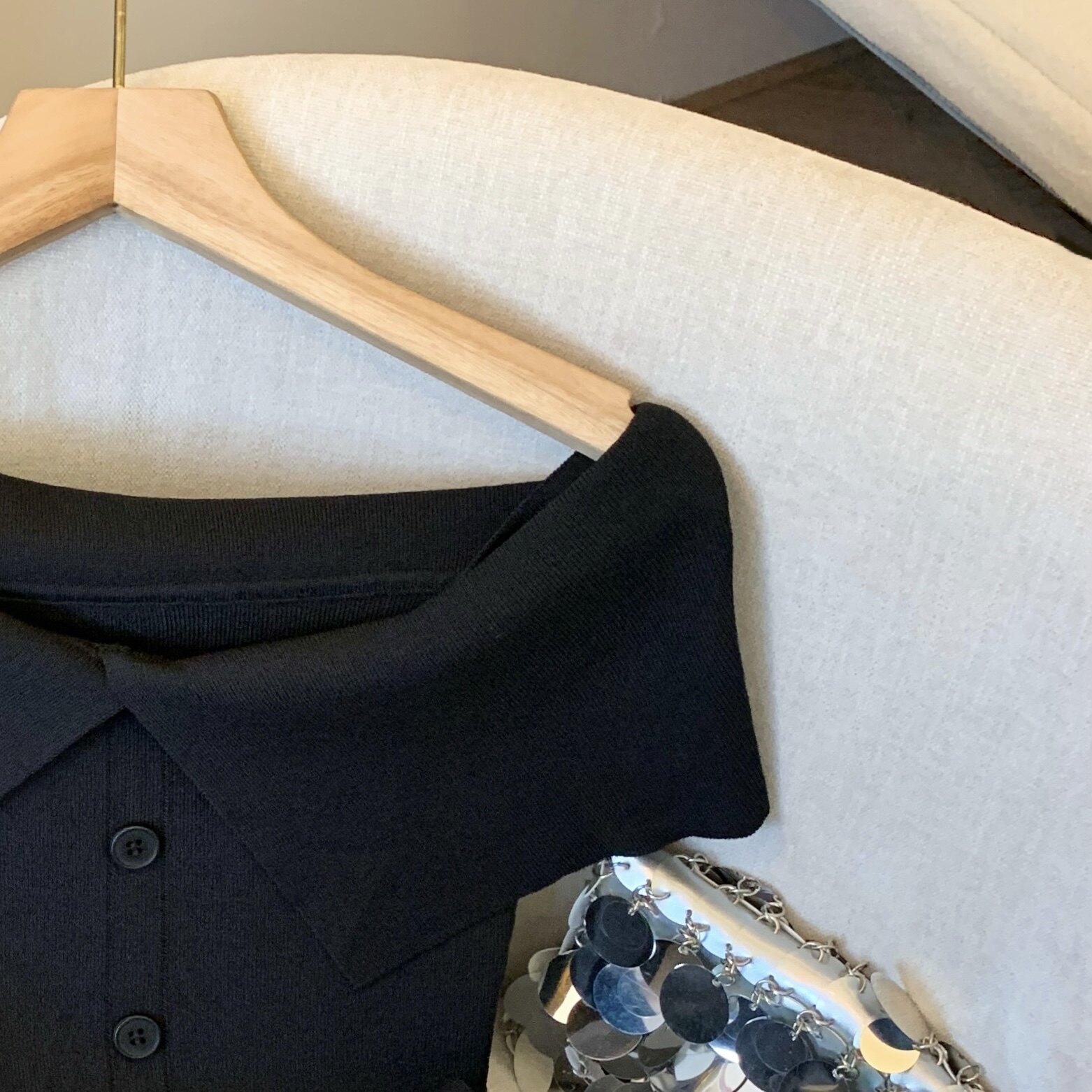 專櫃撤廻剪標法式氣質一字領露肩針織衫女夏季新款單排釦顯瘦上衣