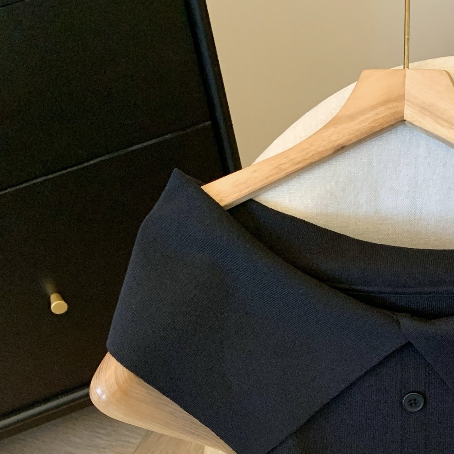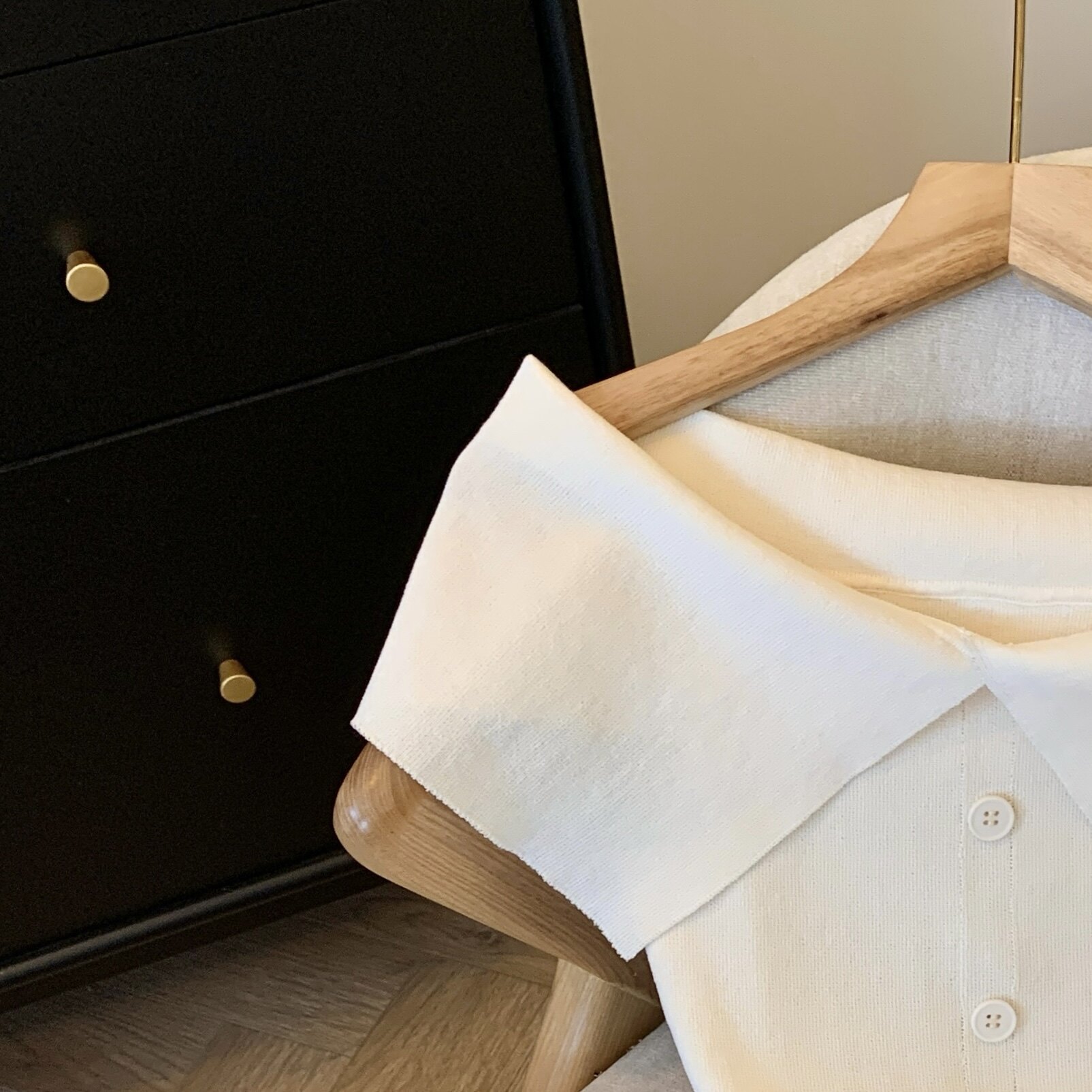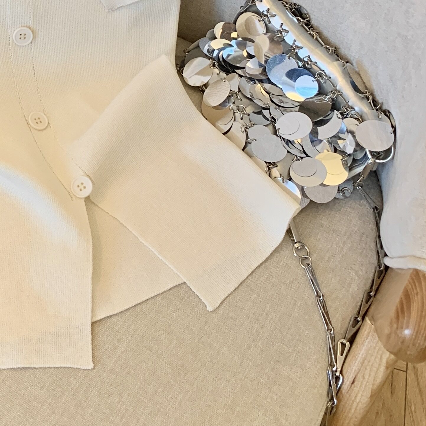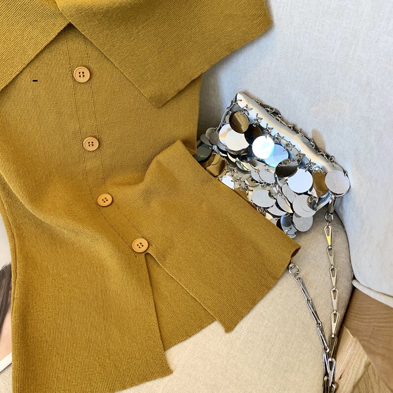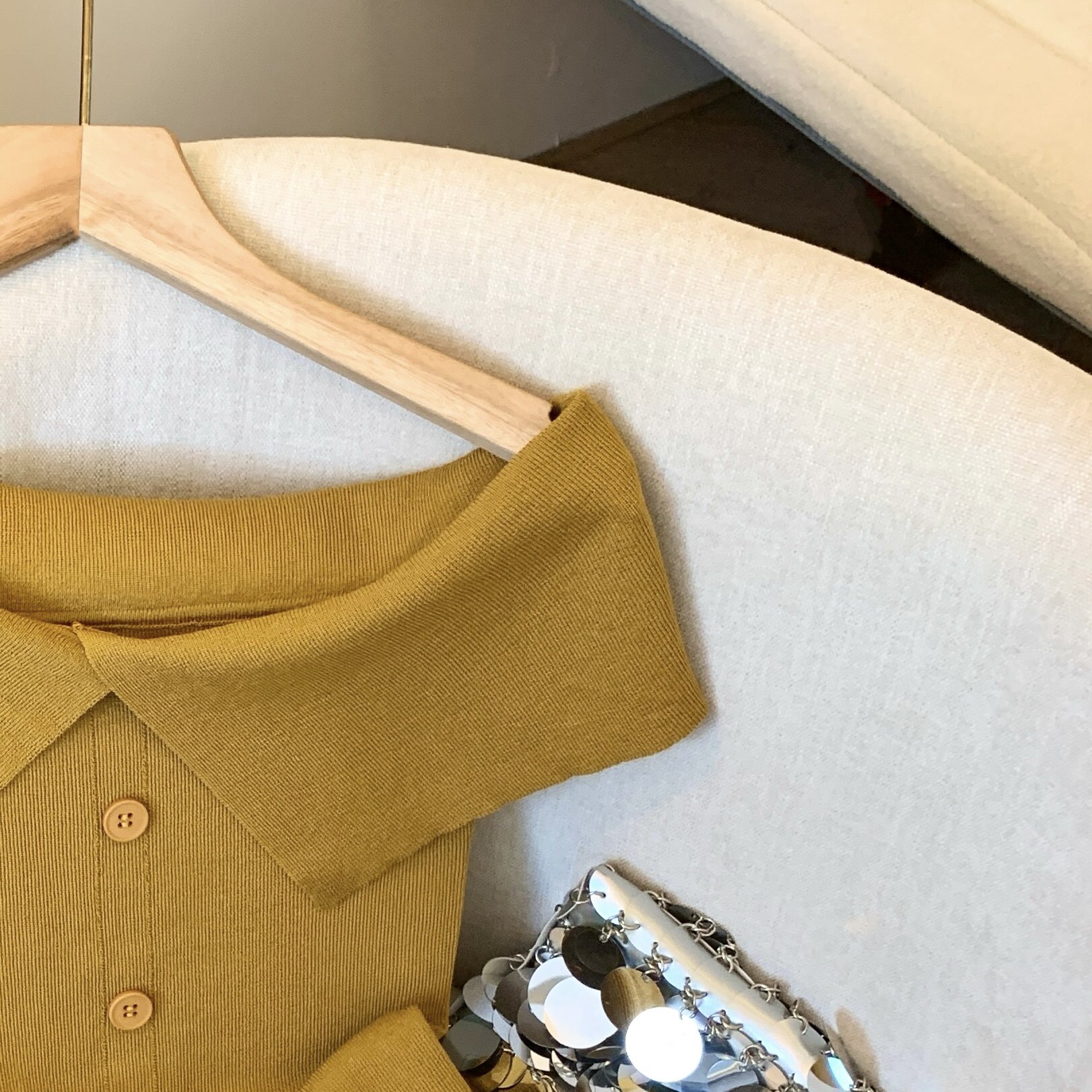 專櫃撤廻剪標法式氣質一字領露肩針織衫女夏季新款單排釦顯瘦上衣