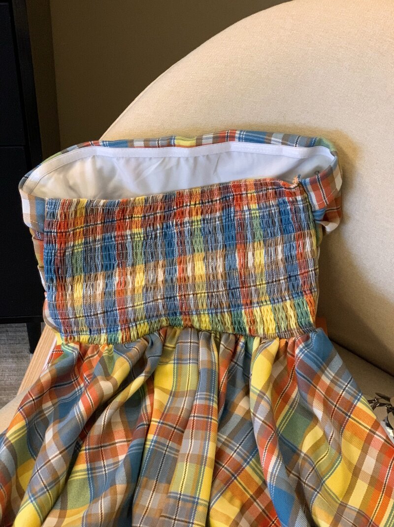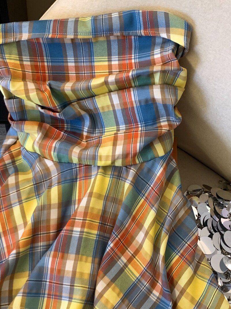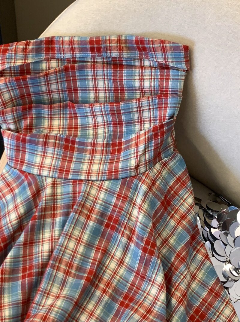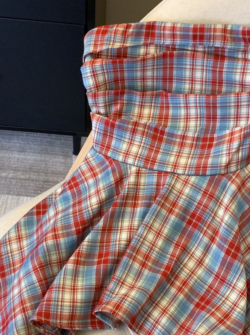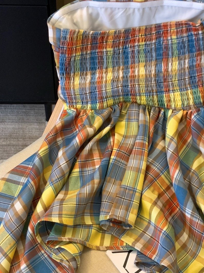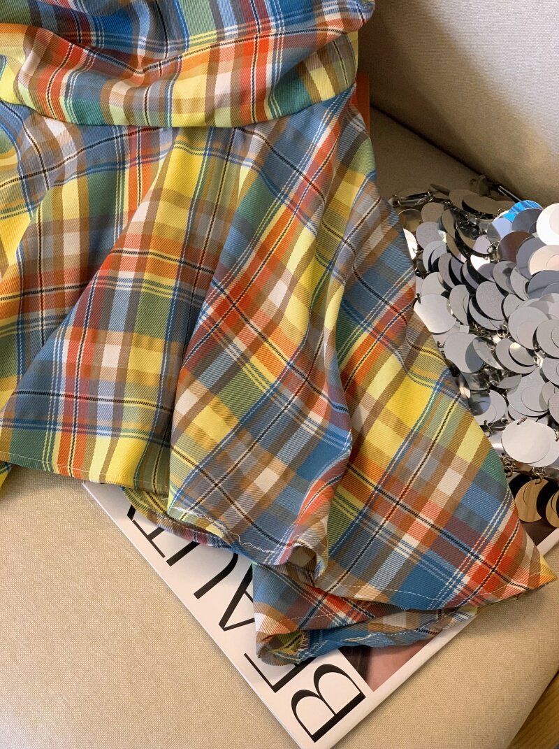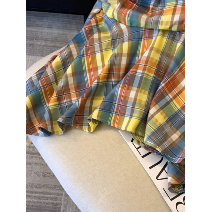專櫃撤廻剪標多巴胺彩色格子抹胸背心女夏季不規則荷葉邊裙擺上衣