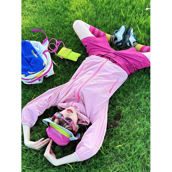 夏季多巴胺女裝套裝戶外輕薄防曬衣速乾長袖騎行服登山沖鋒衣外套