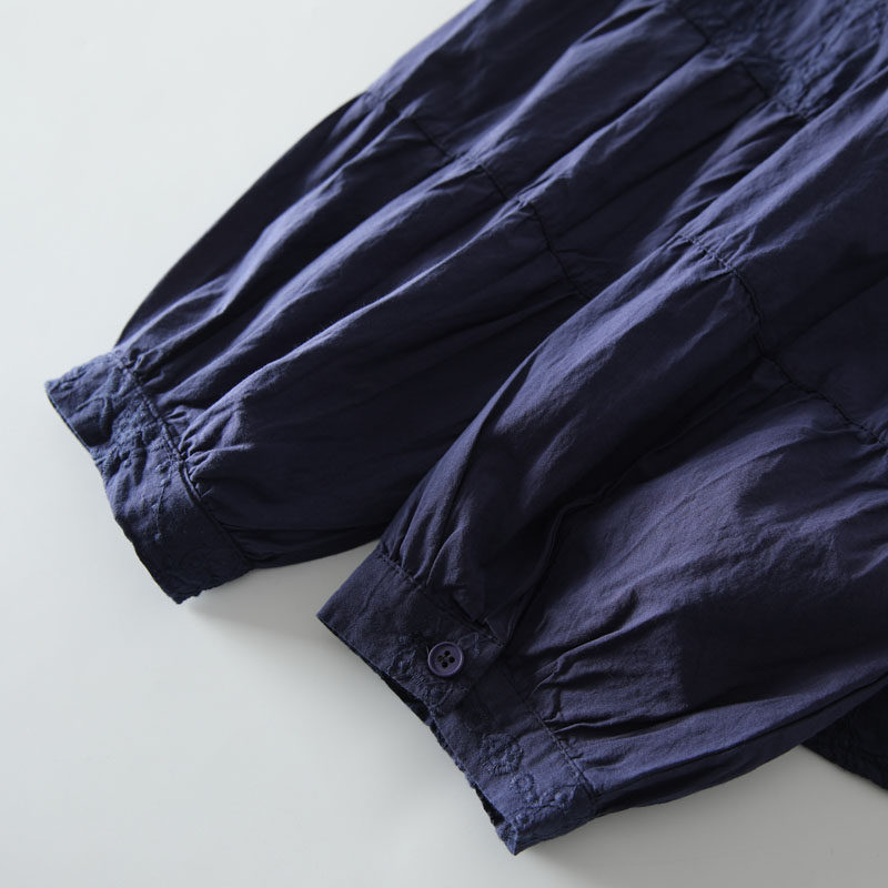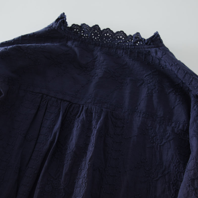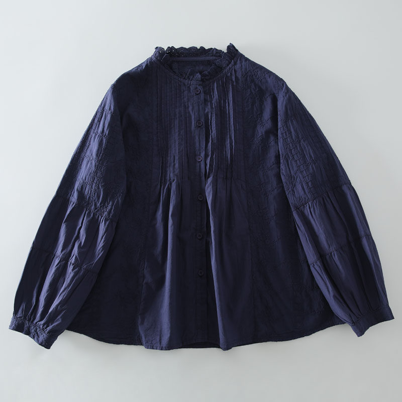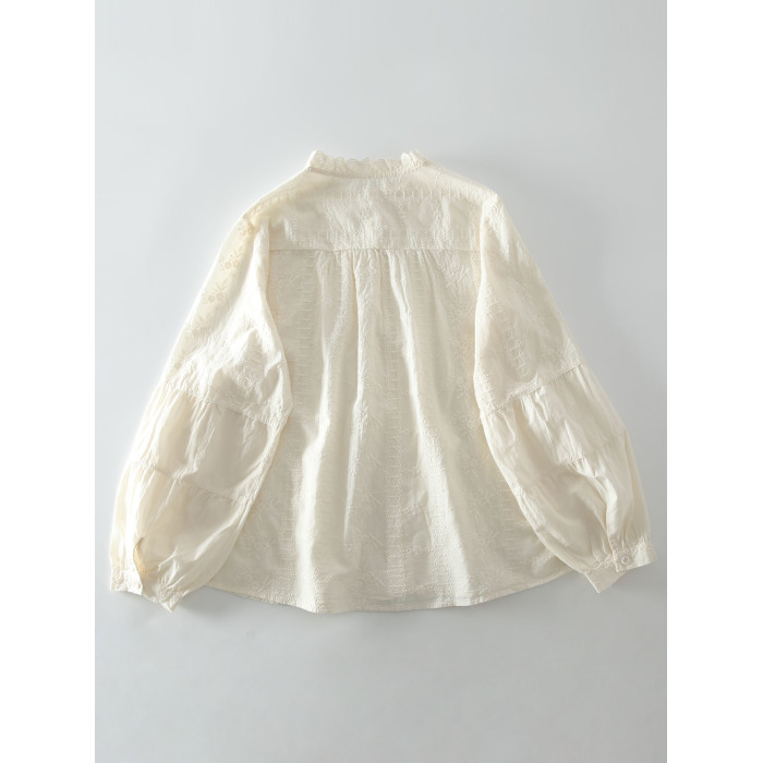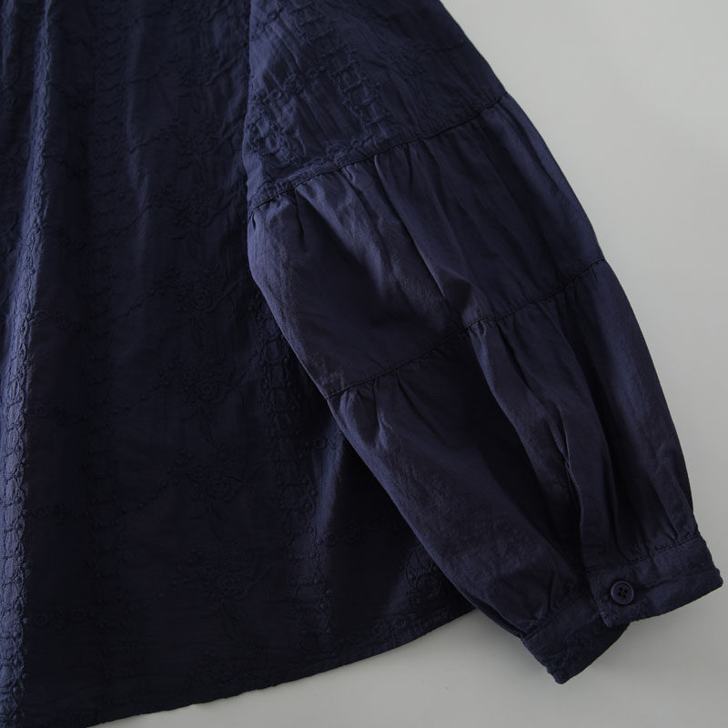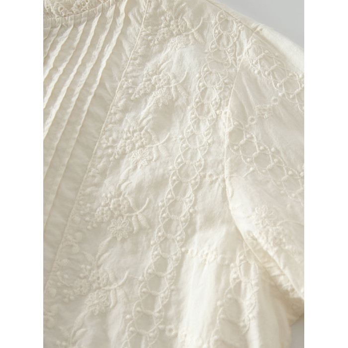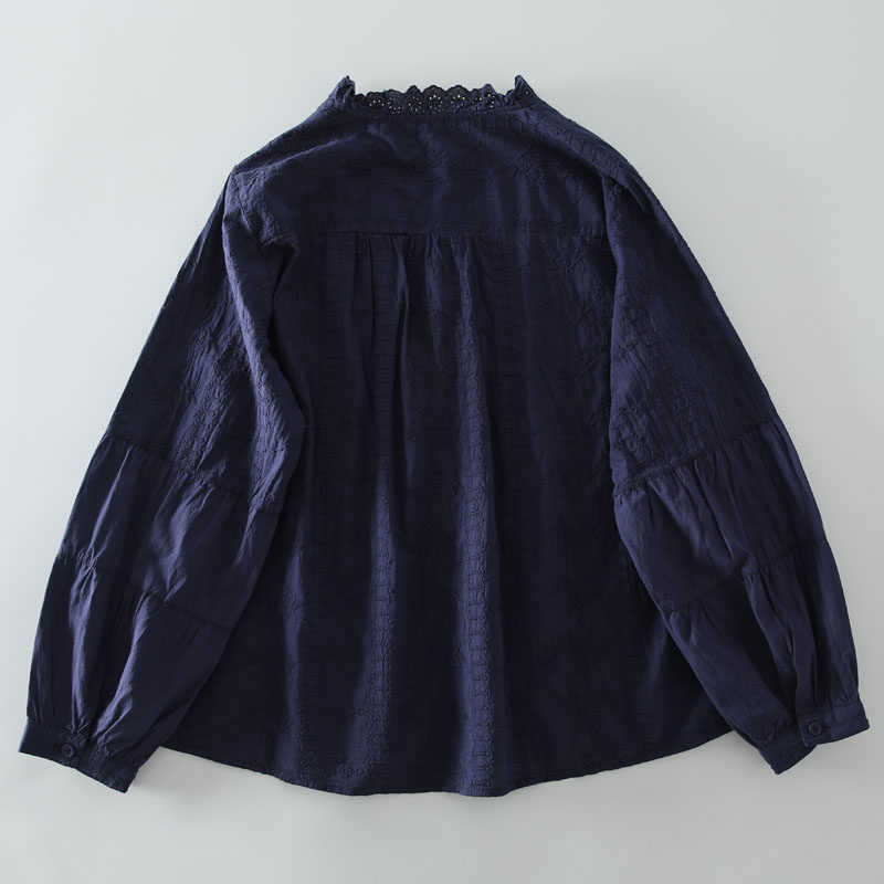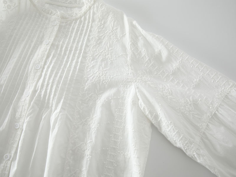 春季新款甜美風花邊領風琴褶拼接純棉刺綉長袖襯衫女百搭減齡襯衣