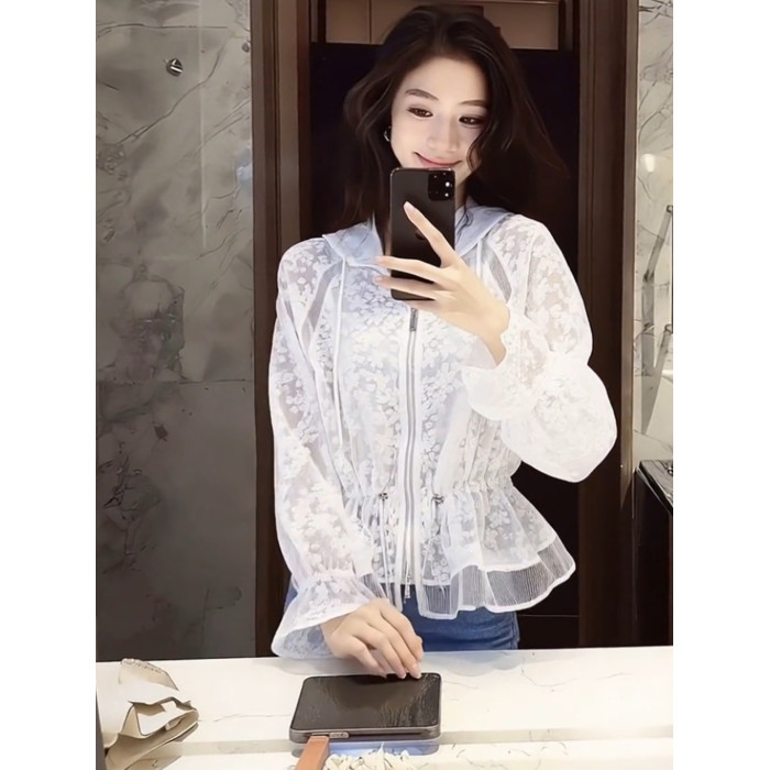 高級感提花拉鍊開衫連帽時尚長袖防曬罩衫通勤小衆上衣2026年早春