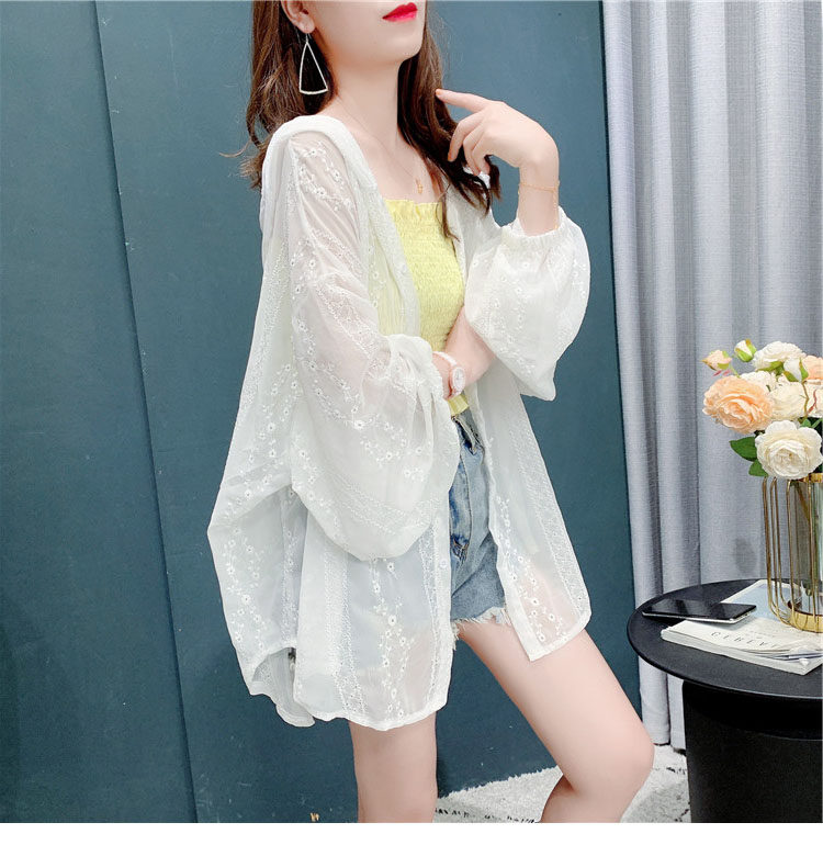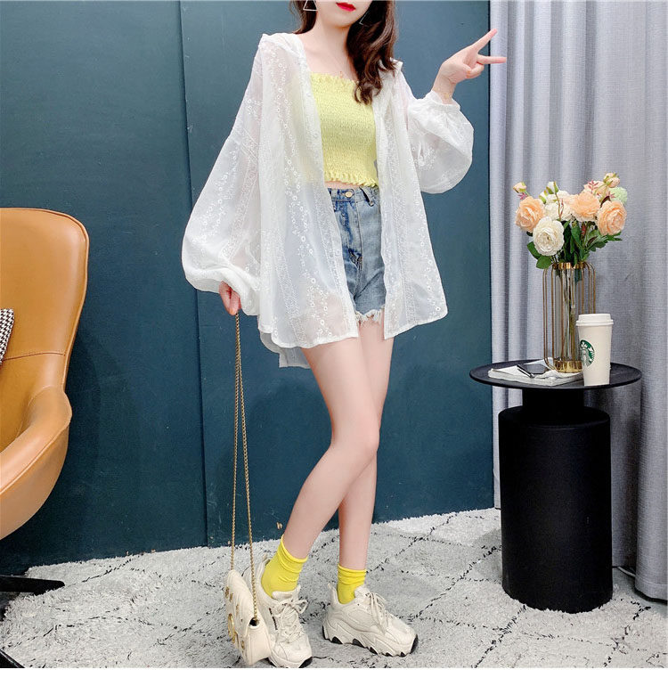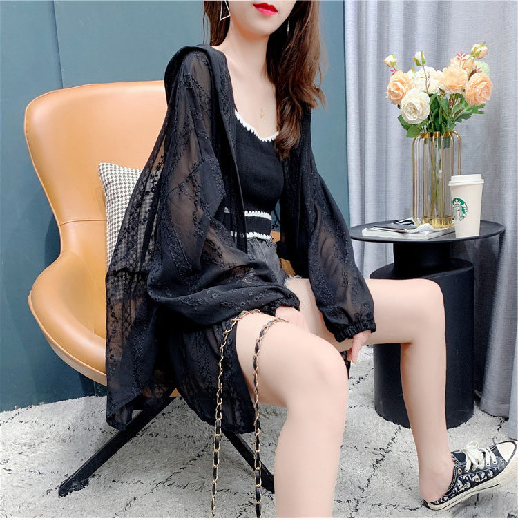 冰絲刺綉防曬衣女夏2025新款大碼寬鬆中長款雪紡薄款襯衫連帽外套